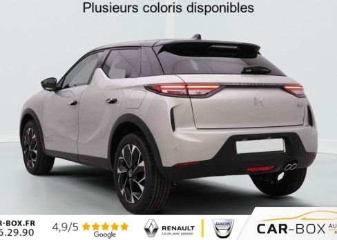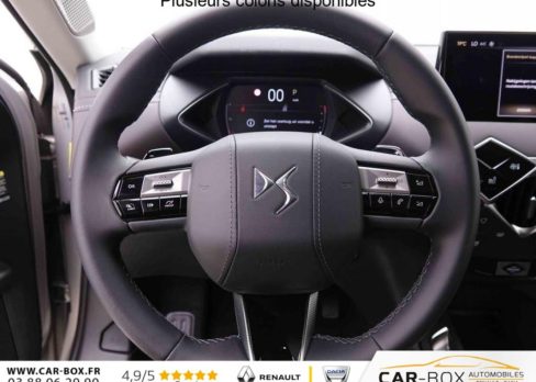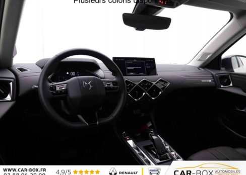 DS3 1.2 T 130 EAT8 Antoine De Saint Exupery, essence, gris, 29/11/2024, Aide au stationnement AR : option incluse (valeur : 200 Eur TTC), Centre de roue gris, Finition Saint Exupéry Badges intérieur extérieur Saint Exupéry Calandre noire Enjoliveurs de seuil de porte, Climatisation automatique, Accoudoir central AV, Sièges AV chauffants, ABS, AFU, ESP, REF, Régulateur/Limiteur de vitesse, Volant réglable en hauteur et profondeur, Double canule d’échappement chromée, Roue de secours galette, Vitres AR et lunette AR surteintées, Radio numérique terrestre (DAB), Prise USB Data à l’AV, Fixations ISOFIX à la place passager AV et aux places latérales AR, Alerte active de franchissement involontaire de ligne, Rétroviseur intérieur électrochrome sans cadre, Contrôle dynamique de stabilité (ESP) avec antipatinage des roues (ASR), Palettes au volant, Allumage automatique des phares, DS MATRIX LED VISION : option incluse (valeur : 800 Eur TTC), Combiné numérique, Détection de sous-gonflage, Essuie-vitre AV à déclenchement et cadencement automatiques, Prise USB dans l’accoudoir central, Sélecteur de mode de conduite, SOS & Assistance Service inclus pendant 10 ans, Commutation automatique des feux de route, Projecteurs à LED, Poignées de portes affleurantes, Frein de stationnement électrique automatique, Banquette AR 2/3 – 1/3, Grille de calandre noir brillant avec pampilles chromées, Monogrammes AR chromé, Eclairage de cave à pieds à LED, Mirror Screen sans fil via Wifi Compatible Apple CarPlay et Android Auto, Accès et démarrage mains libres Proximity, Airbags frontaux (passager déconnectable), latéraux AV et AR, rideaux AV et AR, Condamnation centralisée, Ecran tactile capacitif 10, 3" HD, Feux AR à LED, Lève-vitres AV et AR électriques et séquentiels Antipincement côté conducteur et sécurité enfant, Navigation 3D Connectée DS IRIS System intègre la Navigation Connectée, Lécheurs de vitres invisibles, Prises 12 V, Réhausse manuelle du siège passager, Rétroviseurs extérieurs électriques, dégivrants et rabattables électriquement, Rétroviseurs extérieurs avec embase et coque noir brillant, Teinte Caisse nacrée Cristal Pearl – Toit Noir Perla Nera : option incluse (valeur : 1 200 Eur TTC), Jantes alliage 18" NICE, Advanced Traction Control (Système de gestion de l’adhérence sur tout type de route), Alarme périmétrique, volumétrique et fonction anti-soulèvement, Intérieur Cuir Nappa Art Basalte confection bracelet Ciel de pavillon Gris Galet Décor Cuir Nappa Art Basalte Planche de bord en Cuir Nappa Noir Art Leather Siège Cuir Nappa Art Basalte confection bracelet Volant Cuir fleur