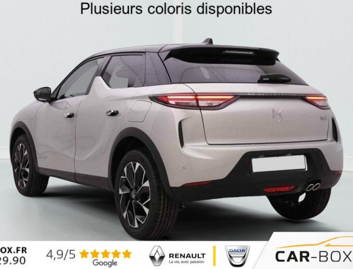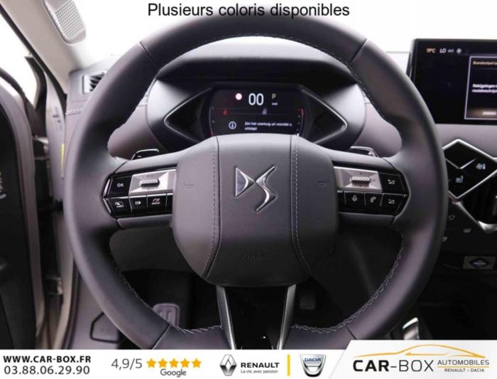 DS3 1.2 T 130 EAT8 Antoine De Saint Exupery, essence, gris, 29/11/2024, Aide au stationnement AR : option incluse (valeur : 200 Eur TTC), Centre de roue gris, Finition Saint Exupéry Badges intérieur extérieur Saint Exupéry Calandre noire Enjoliveurs de seuil de porte, Climatisation automatique, Accoudoir central AV, Sièges AV chauffants, ABS, AFU, ESP, REF, Régulateur/Limiteur de vitesse, Volant réglable en hauteur et profondeur, Double canule d’échappement chromée, Roue de secours galette, Vitres AR et lunette AR surteintées, Radio numérique terrestre (DAB), Prise USB Data à l’AV, Fixations ISOFIX à la place passager AV et aux places latérales AR, Alerte active de franchissement involontaire de ligne, Rétroviseur intérieur électrochrome sans cadre, Contrôle dynamique de stabilité (ESP) avec antipatinage des roues (ASR), Palettes au volant, Allumage automatique des phares, DS MATRIX LED VISION : option incluse (valeur : 800 Eur TTC), Combiné numérique, Détection de sous-gonflage, Essuie-vitre AV à déclenchement et cadencement automatiques, Prise USB dans l’accoudoir central, Sélecteur de mode de conduite, SOS & Assistance Service inclus pendant 10 ans, Commutation automatique des feux de route, Projecteurs à LED, Poignées de portes affleurantes, Frein de stationnement électrique automatique, Banquette AR 2/3 – 1/3, Grille de calandre noir brillant avec pampilles chromées, Monogrammes AR chromé, Eclairage de cave à pieds à LED, Mirror Screen sans fil via Wifi Compatible Apple CarPlay et Android Auto, Accès et démarrage mains libres Proximity, Airbags frontaux (passager déconnectable), latéraux AV et AR, rideaux AV et AR, Condamnation centralisée, Ecran tactile capacitif 10, 3" HD, Feux AR à LED, Lève-vitres AV et AR électriques et séquentiels Antipincement côté conducteur et sécurité enfant, Navigation 3D Connectée DS IRIS System intègre la Navigation Connectée, Lécheurs de vitres invisibles, Prises 12 V, Réhausse manuelle du siège passager, Rétroviseurs extérieurs électriques, dégivrants et rabattables électriquement, Rétroviseurs extérieurs avec embase et coque noir brillant, Teinte Caisse nacrée Cristal Pearl – Toit Noir Perla Nera : option incluse (valeur : 1 200 Eur TTC), Jantes alliage 18" NICE, Advanced Traction Control (Système de gestion de l’adhérence sur tout type de route), Alarme périmétrique, volumétrique et fonction anti-soulèvement, Intérieur Cuir Nappa Art Basalte confection bracelet Ciel de pavillon Gris Galet Décor Cuir Nappa Art Basalte Planche de bord en Cuir Nappa Noir Art Leather Siège Cuir Nappa Art Basalte confection bracelet Volant Cuir fleur