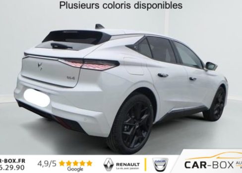 Hors frais de dossierDS4 BlueHDi 130 EAT8 Pallas, diesel, blanc, 22/12/2024, ABS avec repartiteur electronique de freinage (REF) et Aide au Freinage d’Urgence (AFU), Accoudoir central AR avec trappe a ski et 2 porte-gobelets, Accoudoir central AV, Adaptive Cruise Control Stop & Go, Aide au stationnement AV et AR et Camera de recul, Airbags frontaux (passager deconnectable), lateraux, rideaux, Alerte attention conducteur, Alerte de franchissement involontaire de ligne, Allumage automatique des feux, Antenne »aileron de requin », Avertisseur de risque de collision, Banquette AR 2/3 – 1/3 avec 3 appuie-tete, Clean Cabin avec Air Quality System, Climatisation automatique bi-zones, Combine numerique 7 », Commutation automatique des feux, Condamnation automatique des portes et du coffre en roulant, Console centrale avec rangement ferme, Controle dynamique de stabilite (ESP) avec antipatinage des roues (ASR), Coques de retroviseurs exterieurs noir brillant, Demarrage mains-libres, Detection de sous-gonflage, Diffuseur AR noir brillant, Drive mode, DS AIR (Aerateurs centraux invisibles avec sabre chrome), DS E-TOGGLE (Selecteur de vitesses), Eclairage d’ambiance a LED, Eclairage de boite a gants et de coffre a LED, Eclairage de cave a pieds a LED, Ecran tactile capacitif 10 » HD, Enjoliveurs de bas de porte noirs avec insert chrome, Enjoliveurs superieurs des vitres laterales chromes, Essuie-vitre AR, Essuie-vitre AV a declenchement et cadencement automatiques, Feux AR Full LED effet 3D avec traitement ecailles, Fixations ISOFIX aux places laterales AR, Frein de stationnement electrique automatique, Grille de calandre noir brillant avec pampilles chromees, Jantes alliage 19 » MINNEAPOLIS : option incluse (valeur : 400 Eur TTC), Kit de depannage provisoire de pneumatiques, Lecheurs de vitres laterales et enjoliveur de custode noir brillant, Leve-vitres AV et AR electriques, sequentiels et antipincement, Limiteur de vitesse/ Regulateur de vitesse adaptatif, Lunette AR chauffante, Mirror Screen sans fil, Monogramme DS chrome sur l’enjoliveur de custode lateral, Monogramme exterieur PALLAS sur le capot, Monogrammes AV/AR chromes, Pack Confort (Hayon motorise Fermeture motorisee par le coffre et ouverture par le coffre, la cle ou le bouton situe sur la planche de bord, Reglage lombaire pneumatique, Siege conducteur electrique a 10 voies avec memoire de position, nez de coussin reglable mecaniquement et fonction accueil, Sieges AV chauffants, Vitres AR et lunette AR surteintees, Vitres laterales AV et AR feuilletees acoustiques) : option incluse (valeur : 1 900 Eur TTC), Palettes au volant, Pares-soleil avec miroirs de courtoisie occultables eclaires a LED, Plafonnier I-Dome tactile, Poignees exterieures affleurantes chromees, Prises 12V avant et coffre, Projecteurs a LED, Radio numerique terrestre (DAB), Reconnaissance etendue des panneaux de circulation, Retroviseur interieur electrochrome sans cadre, Retroviseurs exterieurs electriques, degivrants, rabattables electriquement, Securite Enfants, SOS & ASSISTANCE, Systeme start and stop, Verins d’ouverture et de maintien du capot moteur, Vitres laterales AV feuilletees acoustiques, Volant reglable en hauteur et profondeur, 2 prises USB-C avant + 2 prises USB-C arriere