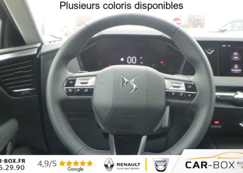 ABS avec repartiteur electronique de freinage (REF) et Aide au Freinage d'Urgence (AFU), Accoudoir central AR avec trappe a ski et 2 porte-gobelets, Accoudoir central AV, Adaptive Cruise Control Stop & Go, Aide au stationnement AV et AR et Camera de recul, Airbags frontaux (passager deconnectable), lateraux, rideaux , Alerte attention conducteur, Alerte de franchissement involontaire de ligne, Allumage automatique des feux, Antenne ''aileron de requin'', Avertisseur de risque de collision, Banquette AR 2/3 - 1/3 avec 3 appuie-tete, Clean Cabin avec Air Quality System, Climatisation automatique bi-zones , Combine numerique 7'', Commutation automatique des feux, Condamnation automatique des portes et du coffre en roulant, Console centrale avec rangement ferme, Controle dynamique de stabilite (ESP) avec antipatinage des roues (ASR), Coques de retroviseurs exterieurs noir brillant, Demarrage mains-libres, Detection de sous-gonflage, Diffuseur AR noir brillant, Drive mode , DS AIR (Aerateurs centraux invisibles avec sabre chrome), DS E-TOGGLE (Selecteur de vitesses), Eclairage d'ambiance a LED, Eclairage de boite a gants et de coffre a LED, Eclairage de cave a pieds a LED, Ecran tactile capacitif 10'' HD, Enjoliveurs de bas de porte noirs avec insert chrome, Enjoliveurs superieurs des vitres laterales chromes, Essuie-vitre AR, Essuie-vitre AV a declenchement et cadencement automatiques, Feux AR Full LED effet 3D avec traitement ecailles, Fixations ISOFIX aux places laterales AR, Frein de stationnement electrique automatique, Grille de calandre noir brillant avec pampilles chromees, Jantes alliage 19'' MINNEAPOLIS : option incluse (valeur : 400 Eur TTC), Kit de depannage provisoire de pneumatiques, Lecheurs de vitres laterales et enjoliveur de custode noir brillant, Leve-vitres AV et AR electriques, sequentiels et antipincement, Limiteur de vitesse/ Regulateur de vitesse adaptatif , Lunette AR chauffante, Mirror Screen sans fil , Monogramme DS chrome sur l'enjoliveur de custode lateral, Monogramme exterieur PALLAS sur le capot, Monogrammes AV/AR chromes, Pack Confort (Hayon motorise Fermeture motorisee par le coffre et ouverture par le coffre, la cle ou le bouton situe sur la planche de bord, Reglage lombaire pneumatique, Siege conducteur electrique a 10 voies avec memoire de position, nez de coussin reglable mecaniquement et fonction accueil, Sieges AV chauffants, Vitres AR et lunette AR surteintees, Vitres laterales AV et AR feuilletees acoustiques) : option incluse (valeur : 1 900 Eur TTC), Palettes au volant, Pares-soleil avec miroirs de courtoisie occultables eclaires a LED, Plafonnier I-Dome tactile, Poignees exterieures affleurantes chromees, Prises 12V avant et coffre , Projecteurs a LED, Radio numerique terrestre (DAB), Reconnaissance etendue des panneaux de circulation, Retroviseur interieur electrochrome sans cadre, Retroviseurs exterieurs electriques, degivrants, rabattables electriquement, Securite Enfants, SOS & ASSISTANCE, Systeme start and stop , Verins d'ouverture et de maintien du capot moteur, Vitres laterales AV feuilletees acoustiques, Volant reglable en hauteur et profondeur, 2 prises USB-C avant + 2 prises USB-C arriere