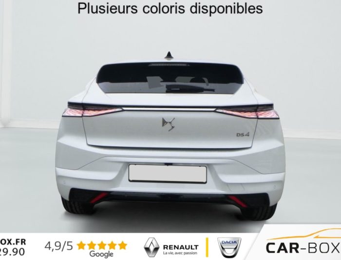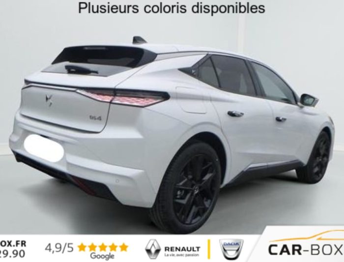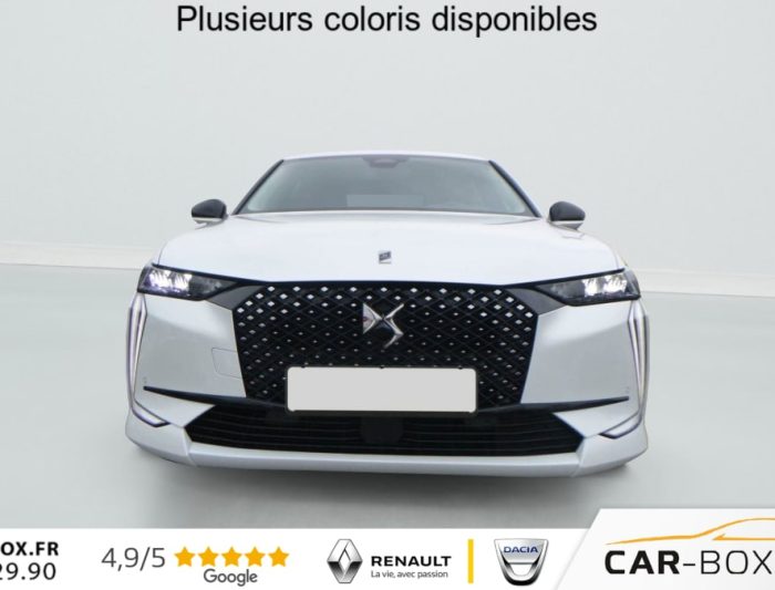 Hors frais de dossierDS4 BlueHDi 130 EAT8 Pallas, diesel, blanc, 22/12/2024, ABS avec repartiteur electronique de freinage (REF) et Aide au Freinage d’Urgence (AFU), Accoudoir central AR avec trappe a ski et 2 porte-gobelets, Accoudoir central AV, Adaptive Cruise Control Stop & Go, Aide au stationnement AV et AR et Camera de recul, Airbags frontaux (passager deconnectable), lateraux, rideaux, Alerte attention conducteur, Alerte de franchissement involontaire de ligne, Allumage automatique des feux, Antenne »aileron de requin », Avertisseur de risque de collision, Banquette AR 2/3 – 1/3 avec 3 appuie-tete, Clean Cabin avec Air Quality System, Climatisation automatique bi-zones, Combine numerique 7 », Commutation automatique des feux, Condamnation automatique des portes et du coffre en roulant, Console centrale avec rangement ferme, Controle dynamique de stabilite (ESP) avec antipatinage des roues (ASR), Coques de retroviseurs exterieurs noir brillant, Demarrage mains-libres, Detection de sous-gonflage, Diffuseur AR noir brillant, Drive mode, DS AIR (Aerateurs centraux invisibles avec sabre chrome), DS E-TOGGLE (Selecteur de vitesses), Eclairage d’ambiance a LED, Eclairage de boite a gants et de coffre a LED, Eclairage de cave a pieds a LED, Ecran tactile capacitif 10 » HD, Enjoliveurs de bas de porte noirs avec insert chrome, Enjoliveurs superieurs des vitres laterales chromes, Essuie-vitre AR, Essuie-vitre AV a declenchement et cadencement automatiques, Feux AR Full LED effet 3D avec traitement ecailles, Fixations ISOFIX aux places laterales AR, Frein de stationnement electrique automatique, Grille de calandre noir brillant avec pampilles chromees, Jantes alliage 19 » MINNEAPOLIS : option incluse (valeur : 400 Eur TTC), Kit de depannage provisoire de pneumatiques, Lecheurs de vitres laterales et enjoliveur de custode noir brillant, Leve-vitres AV et AR electriques, sequentiels et antipincement, Limiteur de vitesse/ Regulateur de vitesse adaptatif, Lunette AR chauffante, Mirror Screen sans fil, Monogramme DS chrome sur l’enjoliveur de custode lateral, Monogramme exterieur PALLAS sur le capot, Monogrammes AV/AR chromes, Pack Confort (Hayon motorise Fermeture motorisee par le coffre et ouverture par le coffre, la cle ou le bouton situe sur la planche de bord, Reglage lombaire pneumatique, Siege conducteur electrique a 10 voies avec memoire de position, nez de coussin reglable mecaniquement et fonction accueil, Sieges AV chauffants, Vitres AR et lunette AR surteintees, Vitres laterales AV et AR feuilletees acoustiques) : option incluse (valeur : 1 900 Eur TTC), Palettes au volant, Pares-soleil avec miroirs de courtoisie occultables eclaires a LED, Plafonnier I-Dome tactile, Poignees exterieures affleurantes chromees, Prises 12V avant et coffre, Projecteurs a LED, Radio numerique terrestre (DAB), Reconnaissance etendue des panneaux de circulation, Retroviseur interieur electrochrome sans cadre, Retroviseurs exterieurs electriques, degivrants, rabattables electriquement, Securite Enfants, SOS & ASSISTANCE, Systeme start and stop, Verins d’ouverture et de maintien du capot moteur, Vitres laterales AV feuilletees acoustiques, Volant reglable en hauteur et profondeur, 2 prises USB-C avant + 2 prises USB-C arriere