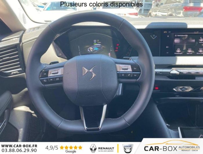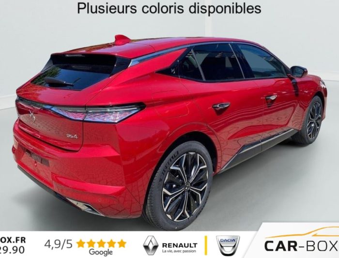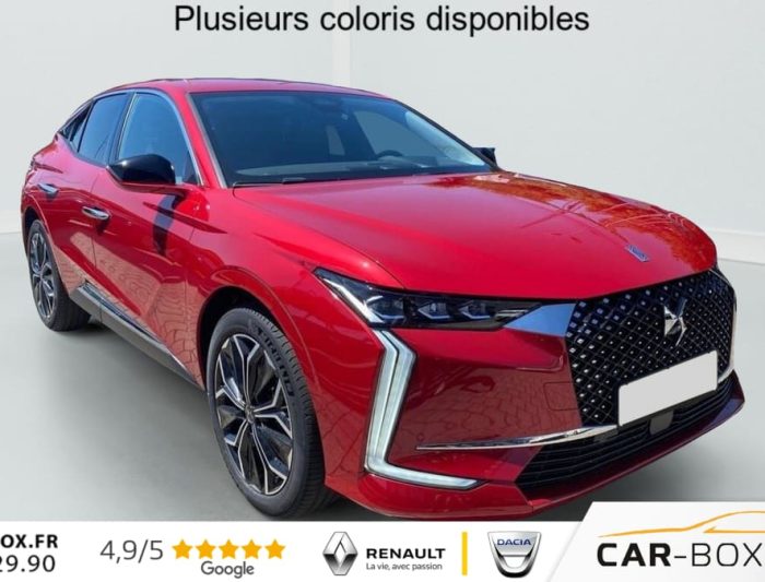 Hors frais de dossierDS4 E-TENSE 225 RIVOLI, hybride, rouge, 28/04/2025, ABS, Accoudoir central, Aide au stationnement, Aide au stationnement arrière, Aide au stationnement avant, Aide au stationnement caméra, Airbag conducteur, Airbag passager, Airbags fenêtre/tête arrière, Airbags fenêtre/tête avant, Airbags latéraux avant, Alarme antivol, Android Auto, Antipatinage, Appel d’urgence, Apple CarPlay, ASR Régulation antipatinage, Assistance au démarrage en côte, Assistant au freinage d’urgence, Assistant de signalisation routière, Assitance feux de route, Avertisseur d’angle mort, Avertisseur de distance, Bluetooth, Boîte de vitesses auto., Caméra de recul, Climatisation automatique, Compteur digital, Contrôle de pression pneumatique, Couleur métallisée, Cuir, Détecteur de pluie, Direction assistée (Servo-direction), Ecran tactile, ESP, Filtre à particules, Frein de stationnement électrique, Hauteur du siège conducteur réglable, Hayon électrique, Head-Up Display, Hybride essence, Hybride rechargeable, Jantes en Alu, Keyless-Go, Kit mains libres Bluetooth, lumière automatique, Montage de siège enfant ISOFIX, Ordinateur de bord, Pare-brise chauffant, Phares LED, Possibilité de chargement, Prise USB, Reconnaissance de la fatigue, Reconnaissance des panneaux, Reconnaissance des panneaux de signalisation, Régulateur de distance, Régulateur de vitesse, Régulateur de vitesse adaptatif, Rétroviseur intérieur à gradation, Rétroviseurs extérieurs chauffants, Rétroviseurs extérieurs électriques, Rétroviseurs extérieurs rabattables, Rétroviseurs rabattables électriquement, Siège conducteur réglage électrique, Sièges AV chauffants, Sièges avant réglables en hauteur, Sièges chauffants, Soutien lombaire, Système de navigation, Verrouillage centralisé (avec télécommande), Vitre électrique, vitre teintée à l’arrière, Volant chauffant, Volant cuir