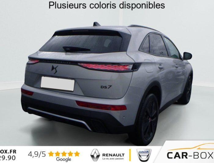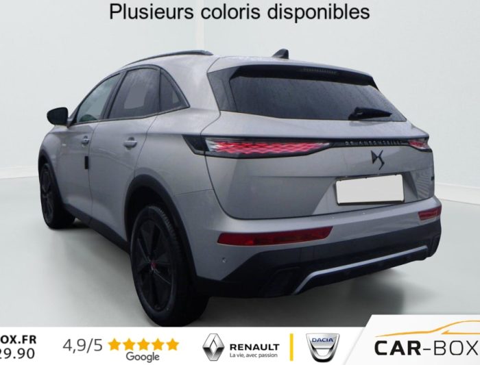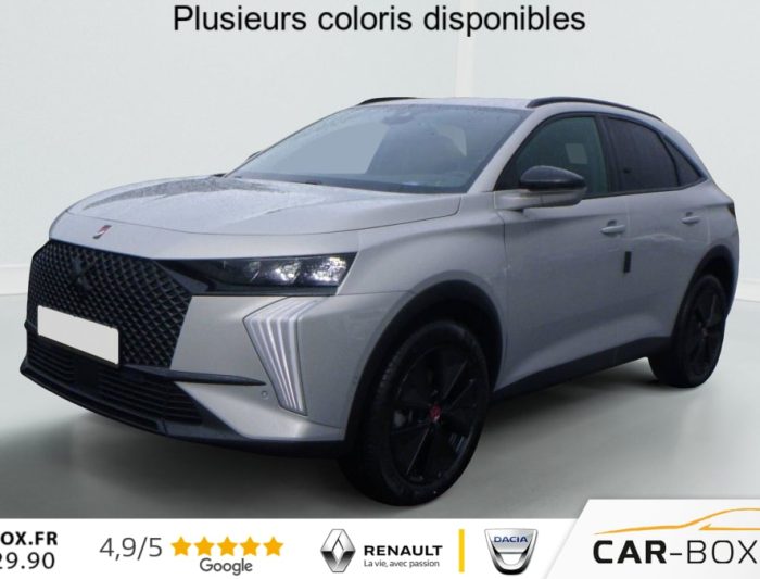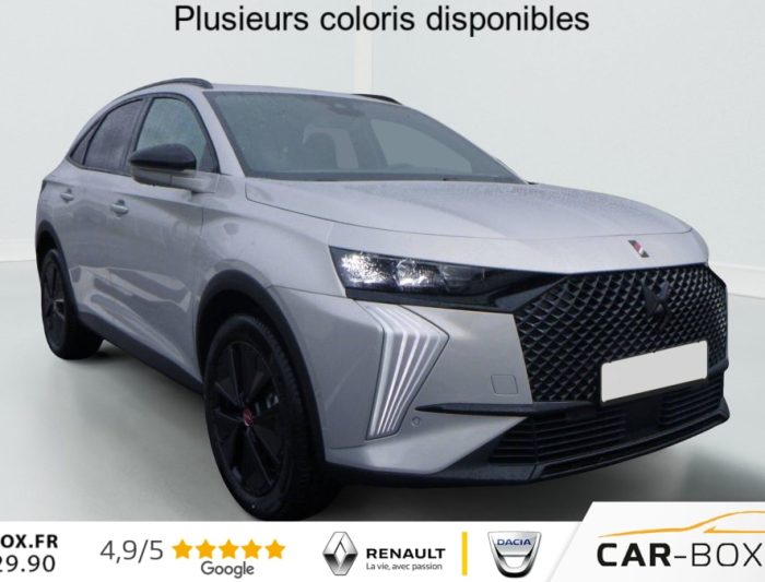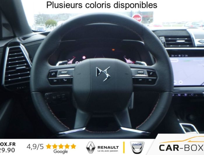 ABS avec repartiteur electronique de freinage (REF) et Aide au Freinage d'Urgence (AFU) + Aide au demarrage en pente, Acces et demarrage mains libres, Accoudoir central arriere avec double porte-gobelets et trappe a skis , Accoudoir central Toile DS avec rangement, Aide au stationnement avant et arriere, Airbags frontaux, lateraux avant et rideaux, Alarme avec supercondamnation des portes et securite enfant electrique Perimetrique, volumetrique, et fonction anti-soulevement. Inclut les ecrous antivol : option incluse (valeur : 500 Eur TTC), Alerte Attention Conducteur, Alerte de franchissement involontaire de ligne, Allumage automatique des feux avec Commutation automatique des feux de route, Appel d'urgence et d'assistance, Assistant vocal, Badge DS noir brillant sur le capot, Banquette arriere 2/3 - 1/3, Barres de toit noires brillantes : option incluse (valeur : 300 Eur TTC), Camera de recul : option incluse (valeur : 390 Eur TTC), Chargeur sans fils pour Smartphone : option incluse (valeur : 250 Eur TTC), Climatisation automatique bi-zones , Combine numerique 12.3'' HD, Controle dynamique de stabilite (ESP) avec antipatinage des roues (ASR), Detection de sous-gonflage, DS IRIS System, DS Wings noir brillant, Eclairage d'accueil et d'accompagnement, Eclairage de cave a pieds a LED, Ecran tactile capacitif 12,3'' HD, Entourage des vitres laterales Noir Brillant, Essuie-vitre avant a declenchement et cadencement automatiques + Buses de lavage, Feux antibrouillard arriere , Feux arriere 3D (traitement ecailles) avec indicateur de changement de direction defilant, Fixations Isofix aux places laterales AR et passager , Frein de stationnement electrique automatique, Freinage d'urgence automatique pilote par camera, Grille de calandre noir brillant, Hayon motorise avec acces bras charges : option incluse (valeur : 890 Eur TTC), Jantes alliage 19'' Silverstone, Kit de depannage, Leve-vitres avant et arriere electriques, sequentiels et avec fonction antipincement, Lunette arriere chauffante, Mirror Screen , Monogrammes arriere noir brillant, Navigation 3D Connectee , Pack Confort ( Sieges AV chauffants, Pare-brise chauffant, 2 prises USB Type C dans le rangement en AV de console ) : option incluse (valeur : 600 Eur TTC), Palettes au volant, Pares-soleil avec miroirs de courtoisie eclaires, Pedalier et le repose-pied aluminium, Poignees exterieures couleur caisse avec insert chrome, Predisposition Plancher modulable a 2 positions, Prises 12V avant et coffre, Projecteurs a LED Feux de croisement et de position a LED, Radio numerique terrestre (DAB), Reconnaissance etendue des panneaux de circulation, Reglage lombaire electrique uniquement cote conducteur, Regulateur/Limiteur de vitesse, Retroviseur interieur electrochrome sans cadre, Retroviseurs exterieurs electriques degivrants, rabattables electriquement , Selecteur de mode de conduite, Seuil de coffre chrome, Sieges avant confort, Reglage en hauteur et en longueur , Surveillance d'angles morts, Systeme start and stop, Vitres arriere surteintees, Volant reglable en hauteur et profondeur, 2 prises USB-A arriere, 2 prises USB-C avant
