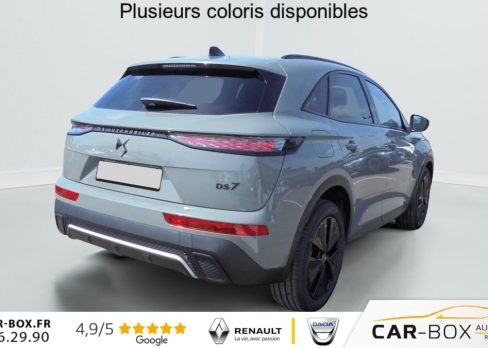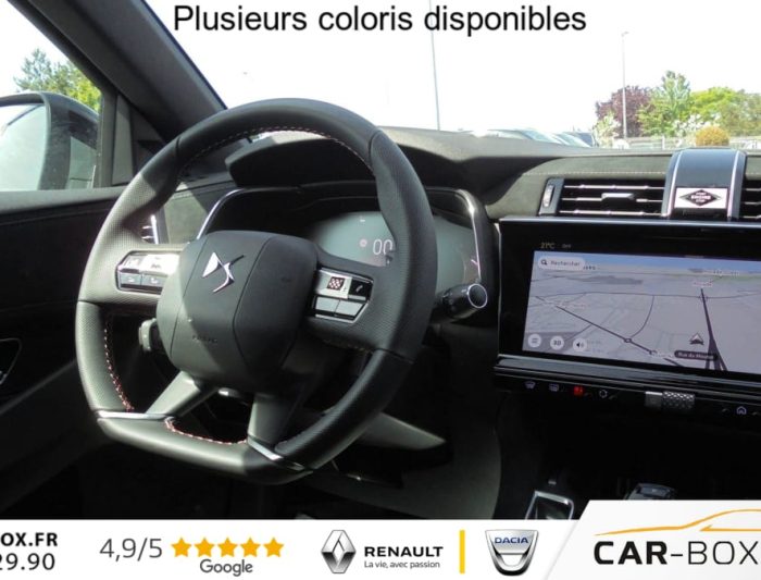 ABS avec repartiteur electronique de freinage (REF) et Aide au Freinage d'Urgence (AFU) + Aide au demarrage en pente, Acces et demarrage mains libres, Accoudoir central arriere avec double porte-gobelets et trappe a skis , Accoudoir central Toile DS avec rangement, Aide au stationnement avant et arriere, Airbags frontaux, lateraux avant et rideaux, Alarme avec supercondamnation des portes et securite enfant electrique Perimetrique, volumetrique, et fonction anti-soulevement. Inclut les ecrous antivol : option incluse (valeur : 500 Eur TTC), Alerte Attention Conducteur, Alerte de franchissement involontaire de ligne, Allumage automatique des feux avec Commutation automatique des feux de route, Appel d'urgence et d'assistance, Assistant vocal , Badge DS noir brillant sur le capot, Banquette arriere 2/3 - 1/3, Barres de toit noires brillantes : option incluse (valeur : 300 Eur TTC), Camera de recul : option incluse (valeur : 390 Eur TTC), Chargeur sans fils pour Smartphone : option incluse (valeur : 250 Eur TTC), Climatisation automatique bi-zones , Combine numerique 12.3'' HD, Controle dynamique de stabilite (ESP) avec antipatinage des roues (ASR), Detection de sous-gonflage, DS IRIS System, DS Wings noir brillant, Eclairage d'accueil et d'accompagnement, Eclairage de cave a pieds a LED, Ecran tactile capacitif 12,3'' HD, Entourage des vitres laterales Noir Brillant, Essuie-vitre avant a declenchement et cadencement automatiques + Buses de lavage, Feux antibrouillard arriere , Feux arriere 3D (traitement ecailles) avec indicateur de changement de direction defilant, Fixations Isofix aux places laterales AR et passager, Frein de stationnement electrique automatique, Freinage d'urgence automatique pilote par camera, Grille de calandre noir brillant, Hayon motorise avec acces bras charges : option incluse (valeur : 890 Eur TTC), Jantes alliage 19'' Silverstone, Kit de depannage, Leve-vitres avant et arriere electriques, sequentiels et avec fonction antipincement, Lunette arriere chauffante, Mirror Screen , Monogrammes arriere noir brillant, Navigation 3D Connectee , Pack Confort ( Sieges AV chauffants, Pare-brise chauffant, 2 prises USB Type C dans le rangement en AV de console ) : option incluse (valeur : 600 Eur TTC), Palettes au volant, Pares-soleil avec miroirs de courtoisie eclaires , Pedalier et le repose-pied aluminium, Poignees exterieures couleur caisse avec insert chrome, Predisposition Plancher modulable a 2 positions, Prises 12V avant et coffre , Projecteurs a LED Feux de croisement et de position a LED, Radio numerique terrestre (DAB), Reconnaissance etendue des panneaux de circulation, Reglage lombaire electrique uniquement cote conducteur, Regulateur/Limiteur de vitesse, Retroviseur interieur electrochrome sans cadre, Retroviseurs exterieurs electriques degivrants, rabattables electriquement , Securite enfants electrique des vitres AR , Selecteur de mode de conduite, Seuil de coffre chrome, Sieges avant confort, Reglage en hauteur et en longueur , Surveillance d'angles morts, Systeme start and stop , Vitres arriere surteintees, Volant reglable en hauteur et profondeur, 2 prises USB-A arriere , 2 prises USB-C avant