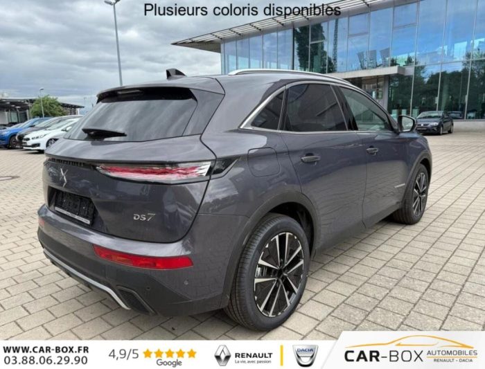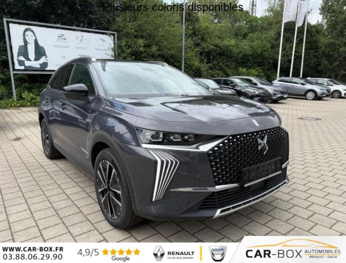 Hors frais de dossierDS7 1.5 BHDi 130 AT8 AdS Exupery, diesel, gris, 24/02/2025, ABS, Accoudoir central, Aide au stationnement, Aide au stationnement, Aide au stationnement arrière, Aide au stationnement avant, Aide au stationnement caméra, Airbag conducteur, Airbag passager, Airbags fenêtre/tête avant, Alarme antivol, Alerte au franchissement de ligne, Android Auto, Antipatinage, Appel d’urgence, Apple CarPlay, ASR Régulation antipatinage, Assistance au démarrage en côte, Assistant au freinage d’urgence, Assistant de signalisation routière, Assitance feux de route, Avertisseur d’angle mort, Avertisseur de distance, Boîte de vitesses auto., Caméra de recul, Caméra 360 degrés, Climatisation automatique, Compteur digital, Contrôle de pression pneumatique, Couleur métallisée, Cuir, Détecteur de pluie, Direction assistée (Servo-direction), Ecran tactile, ESP, Feux de jour, Feux de jour à LED, Filtre à particules, Filtre dŽhabitacle, Frein de stationnement électrique, Hayon électrique, Jantes en Alu, lumière automatique, Marche-arrêt automatique, Ordinateur de bord, Pare-brise chauffant, Phares LED, Prise USB, Rampe de toit, Reconnaissance de la fatigue, Reconnaissance des panneaux, Reconnaissance des panneaux de signalisation, Régulateur de distance, Régulateur de vitesse, Rétroviseur intérieur à gradation, Rétroviseurs extérieurs chauffants, Rétroviseurs extérieurs électriques, Rétroviseurs extérieurs rabattables, Rétroviseurs rabattables électriquement, Sièges AV chauffants, Sièges AV électrique, Sièges avant ventilés, Sièges chauffants, Sièges massants, Sièges ventilés, Soutien lombaire, Système de navigation, Verrouillage centralisé, vitre teintée à l’arrière, Volant cuir, Volant multifonctions