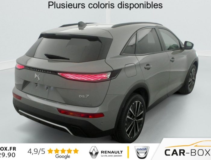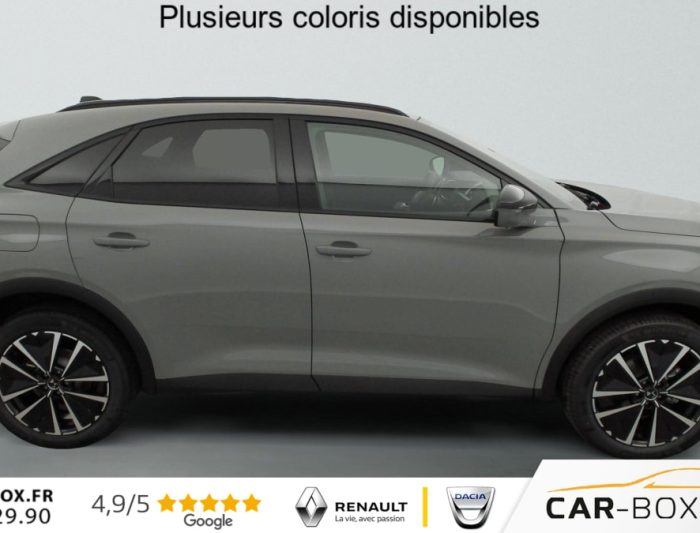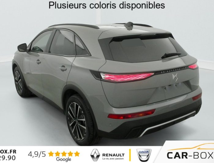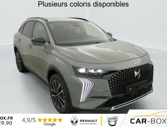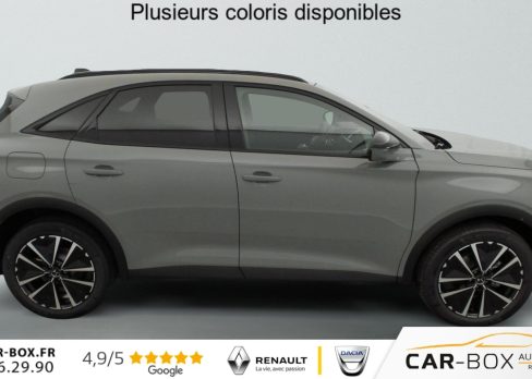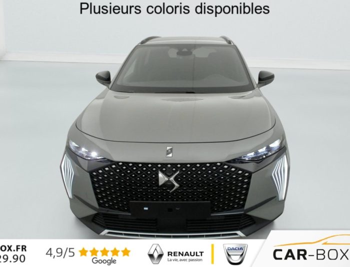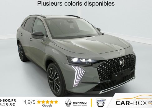 Hors frais de dossierDS7 BlueHDi 130 EAT8 Pallas, diesel, gris, 28/03/2025, Allumage automatique des feux Avec commutation automatique des feux de route, Pédalier et le repose-pied aluminium, Sièges AV chauffants, Détection de sous-gonflage, Régulateur/Limiteur de vitesse, Frein de stationnement électrique automatique, Volant réglable en hauteur et profondeur, Vitres AR et lunette AR surteintées, Seuil de coffre chromé, Radio numérique terrestre (DAB), Lunette AR chauffante, Pare-brise chauffant, DS PIXEL LED VISION 3.0, Alerte Attention Conducteur, Alerte de franchissement involontaire de ligne, Lève-vitres AV/AR électriques, séquentiels et avec fonction antipincement, Rétroviseur intérieur électrochrome sans cadre, Contrôle dynamique de stabilité (ESP) avec antipatinage des roues (ASR), Palettes au volant, Vérins d’ouverture et de maintien du capot moteur, Surveillance d’angles morts, Sélecteur de mode de conduite, DS Wings noir brillant, Entourage des vitres latérales Noir Brillant, Feux AR 3D (traitement écailles) Avec indicateur de changement de direction défilant, Jonc supérieur de volet Noir brillant avec lettrage ‘DS AUTOMOBILES’ chromé, Freinage d’urgence automatique piloté par caméra et radar, ABS avec répartiteur électronique de freinage (REF) et Aide au Freinage d’Urgence (AFU) + Aide au démarrage en pente, Airbags frontaux (passager déconnectable), latéraux AV, rideaux AV/AR, DS LIGHT VEIL Feux de jour à LED, Kit de dépannage, Pare-brise teinté acoustique, Rétroviseurs extérieurs électriques dégivrants, rabattables électriquement Fonction électrochrome côté conducteur, Projection au sol du logo DS, Indexé à la marche AR côté passager, Accoudoir central AR, Banquette AR 2/3 – 1/3, Climatisation automatique bi-zone, Eclairage d’accueil et d’accompagnement, Grille de calandre noir brillant avec pampilles chromées, Jonc sur jupe AR chromé, Monogrammes AR chromé, Rétroviseurs extérieurs avec embase couleur caisse et coque noir brillant, Sabot AV chromé, Accoudoir central en Toile DS avec rangement, Eclairage d’ambiance à LED, Combiné numérique 12.3" HD, Double antennes, DS IRIS SYSTEM Système d’infotainment personnalisable de dernière génération, Mirror Screen sans fil via Wifi Compatible Apple CarPlay et Android Auto, Prises USB 1 prise USB type C dans le rangement de la console centrale et 2 prises USB type A pour les passagers AR, Prises 12 V 1 prise dans le rangement AV de la console centrale et 1 prise dans le coffre, Intérieur Alcantara Noir profond : Console centrale en Alcantara Noir Profond Panneaux de portes en Alcantara Noir Profond et surpiqûres Carmin et Or Planche de bord Alcantara Noir Profond et surpiqûres Carmin et Or Volant Cuir fleur perforé et coutures Carmin et Or Sièges Alcantara Noir Profond avec Toile DS, Essuie-vitre AV à déclenchement et cadencement automatiques + Buses de lavage, Centre de roue Noir brillant, Aide au stationnement AV et AR et Caméra de recul, Navigation 3D Connectée, Reconnaissance étendue des panneaux de signalisation, Barres de toit noir brillant, Prédisposition Plancher modulable à 2 positions, Black Pack, Teinte Caisse métallisée : option incluse (valeur : 900 Eur TTC), Jantes alliage 19 » EDINBURGH, pneus 235/50 R19 V, Ciel de pavillon Sombre, Boîte à gants ventilée, Contrôle électronique de stabilité de l’attelage, Ecran tactile capacitif 12 » HD, Logo DS de calandre Chromé, Pack Tech – L’Alarme – Le 360 Vision – Le Chargeur sans fil pour Smartphone – Le DS DRIVE ASSIST – Une seconde prise USB Type C dans le rangement en AV de console : DS Drive Assist Aide au stationnement AV/AR et 360 Vision Chargeur sans fil pour smartphone Alarme avec supercondamnation des portes et sécurité enfant électrique Périmétrique, volumétrique, et fonction anti-soulèvement. Inclut les écrous antivol. Seconde prise USB Type C dans le rangement en AV de console centrale : option incluse (valeur : 1 200 Eur TTC), Badge DS PALLAS spécifique sur le capot, Poignées extérieures couleur caisse, Sièges AV électriques avec mémorisation du siège conducteur, Accès et démarrage mains libres, Ceintures conducteur et passager à enrouleur pyrotechnique, réglage en hauteur avec limitation d’effort et prétension, Seuil de portes AV, Direction assistée, Verrouillage centralisée, Fixations ISOFIX aux places latérales AR Inclut TOP TEATHER, Boîte de vitesse automatique 8 vitesses