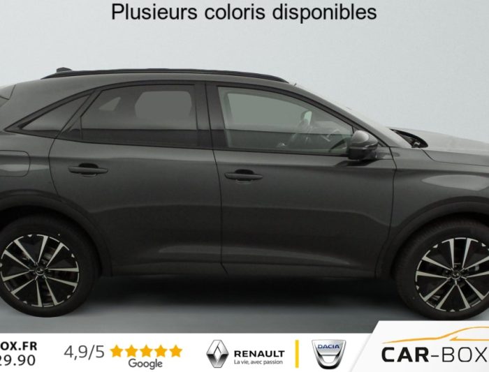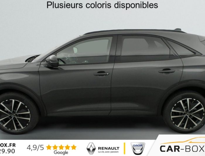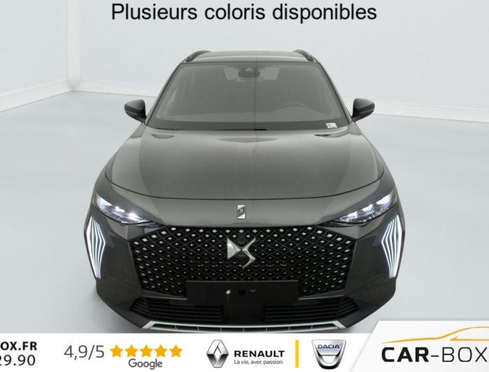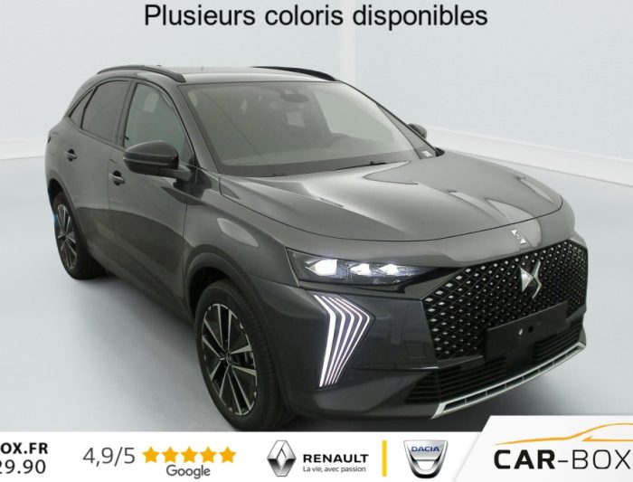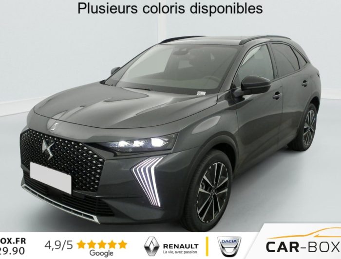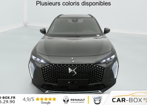 Hors frais de dossierDS7 BlueHDi 130 EAT8 Pallas, diesel, gris, 16/06/2025, Allumage automatique des feux Avec commutation automatique des feux de route, Pédalier et le repose-pied aluminium, Sièges AV chauffants, Détection de sous-gonflage, Régulateur/Limiteur de vitesse, Frein de stationnement électrique automatique, Volant réglable en hauteur et profondeur, Vitres AR et lunette AR surteintées, Seuil de coffre chromé, Radio numérique terrestre (DAB), Lunette AR chauffante, Pare-brise chauffant, DS PIXEL LED VISION 3.0, Alerte Attention Conducteur, Alerte de franchissement involontaire de ligne, Lève-vitres AV/AR électriques, séquentiels et avec fonction antipincement, Rétroviseur intérieur électrochrome sans cadre, Contrôle dynamique de stabilité (ESP) avec antipatinage des roues (ASR), Palettes au volant, Vérins d’ouverture et de maintien du capot moteur, Surveillance d’angles morts, Sélecteur de mode de conduite, DS Wings noir brillant, Entourage des vitres latérales Noir Brillant, Feux AR 3D (traitement écailles) Avec indicateur de changement de direction défilant, Jonc supérieur de volet Noir brillant avec lettrage ‘DS AUTOMOBILES’ chromé, Freinage d’urgence automatique piloté par caméra et radar, ABS avec répartiteur électronique de freinage (REF) et Aide au Freinage d’Urgence (AFU) + Aide au démarrage en pente, Airbags frontaux (passager déconnectable), latéraux AV, rideaux AV/AR, DS LIGHT VEIL Feux de jour à LED, Kit de dépannage, Pare-brise teinté acoustique, Rétroviseurs extérieurs électriques dégivrants, rabattables électriquement Fonction électrochrome côté conducteur, Projection au sol du logo DS, Indexé à la marche AR côté passager, Accoudoir central AR, Banquette AR 2/3 – 1/3, Climatisation automatique bi-zone, Eclairage d’accueil et d’accompagnement, Grille de calandre noir brillant avec pampilles chromées, Jonc sur jupe AR chromé, Monogrammes AR chromé, Rétroviseurs extérieurs avec embase couleur caisse et coque noir brillant, Sabot AV chromé, Accoudoir central en Toile DS avec rangement, Eclairage d’ambiance à LED, Combiné numérique 12.3" HD, Double antennes, DS IRIS SYSTEM Système d’infotainment personnalisable de dernière génération, Mirror Screen sans fil via Wifi Compatible Apple CarPlay et Android Auto, Prises USB 1 prise USB type C dans le rangement de la console centrale et 2 prises USB type A pour les passagers AR, Prises 12 V 1 prise dans le rangement AV de la console centrale et 1 prise dans le coffre, Intérieur Alcantara Noir profond : Console centrale en Alcantara Noir Profond Panneaux de portes en Alcantara Noir Profond et surpiqûres Carmin et Or Planche de bord Alcantara Noir Profond et surpiqûres Carmin et Or Volant Cuir fleur perforé et coutures Carmin et Or Sièges Alcantara Noir Profond avec Toile DS, Essuie-vitre AV à déclenchement et cadencement automatiques + Buses de lavage, Centre de roue Noir brillant, Aide au stationnement AV et AR et Caméra de recul, Navigation 3D Connectée, Reconnaissance étendue des panneaux de signalisation, Barres de toit noir brillant, Prédisposition Plancher modulable à 2 positions, Black Pack, Teinte Caisse métallisée : option incluse (valeur : 900 Eur TTC), Jantes alliage 19 » EDINBURGH, pneus 235/50 R19 V, Ciel de pavillon Sombre, Boîte à gants ventilée, Contrôle électronique de stabilité de l’attelage, Ecran tactile capacitif 12 » HD, Logo DS de calandre Chromé, Pack Tech – L’Alarme – Le 360 Vision – Le Chargeur sans fil pour Smartphone – Le DS DRIVE ASSIST – Une seconde prise USB Type C dans le rangement en AV de console : DS Drive Assist Aide au stationnement AV/AR et 360 Vision Chargeur sans fil pour smartphone Alarme avec supercondamnation des portes et sécurité enfant électrique Périmétrique, volumétrique, et fonction anti-soulèvement. Inclut les écrous antivol. Seconde prise USB Type C dans le rangement en AV de console centrale : option incluse (valeur : 1 200 Eur TTC), Badge DS PALLAS spécifique sur le capot, Poignées extérieures couleur caisse, Sièges AV électriques avec mémorisation du siège conducteur, Accès et démarrage mains libres, Ceintures conducteur et passager à enrouleur pyrotechnique, réglage en hauteur avec limitation d’effort et prétension, Seuil de portes AV, Direction assistée, Verrouillage centralisée, Fixations ISOFIX aux places latérales AR Inclut TOP TEATHER, Boîte de vitesse automatique 8 vitesses