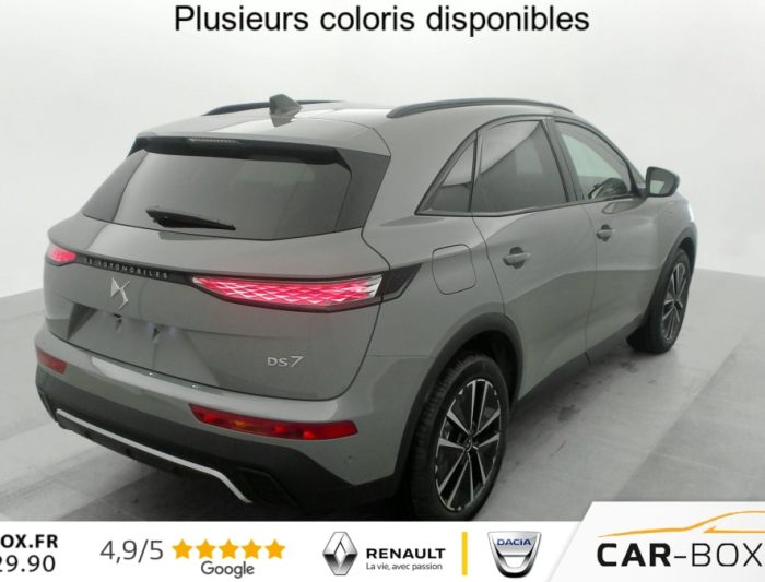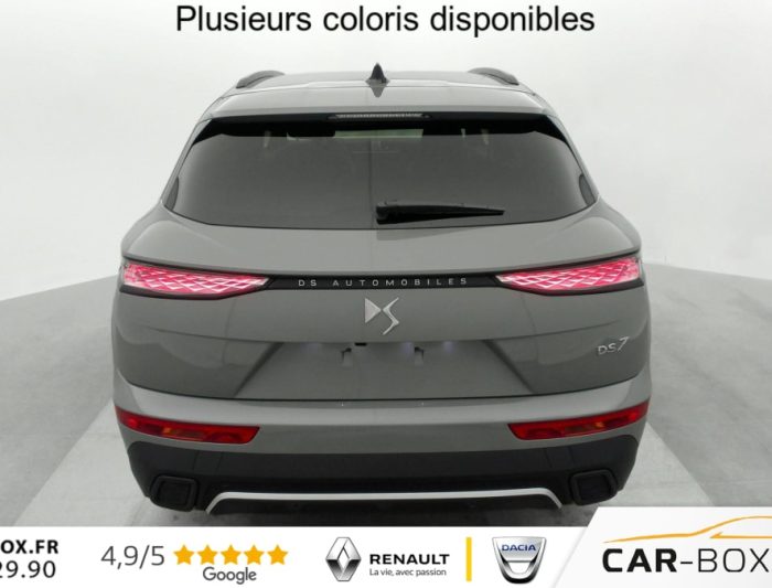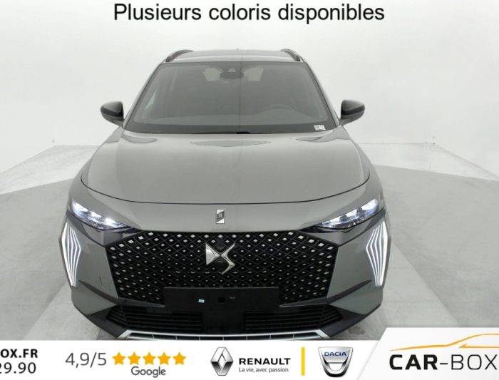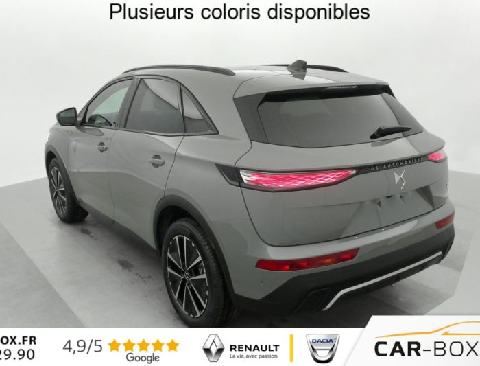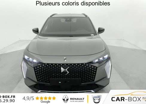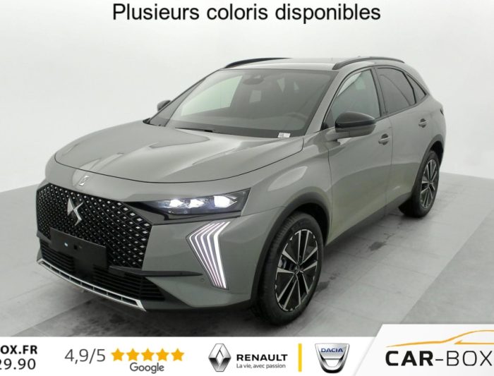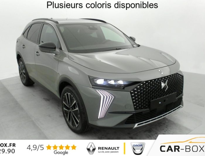 Hors frais de dossierDS7 BlueHDi 130 EAT8 Pallas, diesel, gris, 26/02/2025, Allumage automatique des feux Avec commutation automatique des feux de route, Pédalier et le repose-pied aluminium, Sièges AV chauffants, Détection de sous-gonflage, Régulateur/Limiteur de vitesse, Frein de stationnement électrique automatique, Volant réglable en hauteur et profondeur, Vitres AR et lunette AR surteintées, Seuil de coffre chromé, Radio numérique terrestre (DAB), Lunette AR chauffante, Pare-brise chauffant, DS PIXEL LED VISION 3.0, Alerte Attention Conducteur, Alerte de franchissement involontaire de ligne, Lève-vitres AV/AR électriques, séquentiels et avec fonction antipincement, Rétroviseur intérieur électrochrome sans cadre, Contrôle dynamique de stabilité (ESP) avec antipatinage des roues (ASR), Palettes au volant, Vérins d’ouverture et de maintien du capot moteur, Surveillance d’angles morts, Sélecteur de mode de conduite, DS Wings noir brillant, Entourage des vitres latérales Noir Brillant, Feux AR 3D (traitement écailles) Avec indicateur de changement de direction défilant, Jonc supérieur de volet Noir brillant avec lettrage ‘DS AUTOMOBILES’ chromé, Freinage d’urgence automatique piloté par caméra et radar, ABS avec répartiteur électronique de freinage (REF) et Aide au Freinage d’Urgence (AFU) + Aide au démarrage en pente, Airbags frontaux (passager déconnectable), latéraux AV, rideaux AV/AR, DS LIGHT VEIL Feux de jour à LED, Fixations ISOFIX à la place passager AV et aux places latérales AR Inclut TOP TEATHER, Kit de dépannage, Pare-brise teinté acoustique, Rétroviseurs extérieurs électriques dégivrants, rabattables électriquement Fonction électrochrome côté conducteur, Projection au sol du logo DS, Indexé à la marche AR côté passager, Accoudoir central AR, Banquette AR 2/3 – 1/3, Climatisation automatique bi-zone, Eclairage d’accueil et d’accompagnement, Grille de calandre noir brillant avec pampilles chromées, Jonc sur jupe AR chromé, Monogrammes AR chromé, Rétroviseurs extérieurs avec embase couleur caisse et coque noir brillant, Sabot AV chromé, Accoudoir central en Toile DS avec rangement, Eclairage d’ambiance à LED, Combiné numérique 12.3" HD, Double antennes, DS IRIS SYSTEM Système d’infotainment personnalisable de dernière génération, Mirror Screen sans fil via Wifi Compatible Apple CarPlay et Android Auto, Navigation 3D Connectée, Prises USB 1 prise USB type C dans le rangement de la console centrale et 2 prises USB type A pour les passagers AR, Prises 12 V 1 prise dans le rangement AV de la console centrale et 1 prise dans le coffre, Intérieur Alcantara Noir profond : Console centrale en Alcantara Noir Profond Panneaux de portes en Alcantara Noir Profond et surpiqûres Carmin et Or Planche de bord Alcantara Noir Profond et surpiqûres Carmin et Or Volant Cuir fleur perforé et coutures Carmin et Or Sièges Alcantara Noir Profond avec Toile DS, Essuie-vitre AV à déclenchement et cadencement automatiques + Buses de lavage, Centre de roue Noir brillant, Aide au stationnement AV et AR et Caméra de recul, Reconnaissance étendue des panneaux de signalisation, Barres de toit noir brillant, Black Pack, Teinte Caisse métallisée : option incluse (valeur : 900 Eur TTC), Jantes alliage 19 » EDINBURGH, pneus 235/50 R19 V, Ciel de pavillon Sombre, SOS & Assistance, Boîte à gants ventilée, Contrôle électronique de stabilité de l’attelage, Ecran tactile capacitif 12 » HD, Logo DS de calandre Chromé, Badge DS PALLAS spécifique sur le capot, Poignées extérieures couleur caisse, Sièges AV électriques avec mémorisation du siège conducteur, Accès et démarrage mains libres, Ceintures conducteur et passager à enrouleur pyrotechnique, réglage en hauteur avec limitation d’effort et prétension, Seuil de portes AV