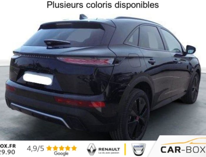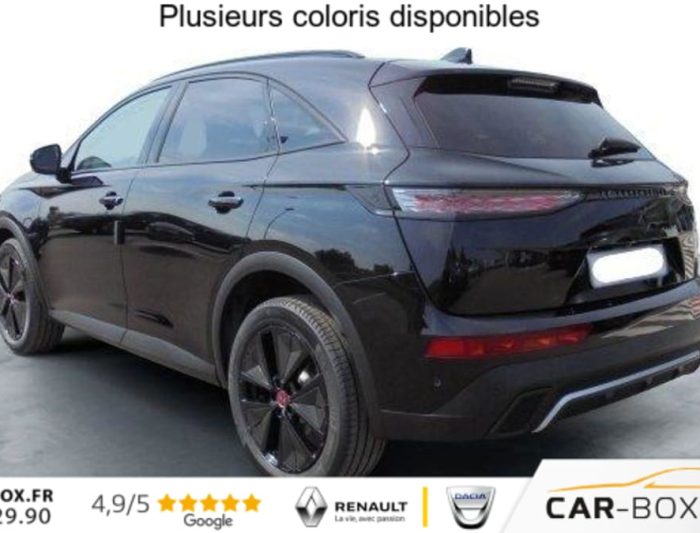 Hors frais de dossierDS7 BlueHDi 130 EAT8 Performance Line, diesel, noir, 28/08/2024, ABS avec repartiteur electronique de freinage (REF) et Aide au Freinage d’Urgence (AFU) + Aide au demarrage en pente, Acces et demarrage mains libres, Accoudoir central arriere avec double porte-gobelets et trappe a skis, Accoudoir central Toile DS avec rangement, Aide au stationnement avant et arriere, Airbags frontaux, lateraux avant et rideaux, Alarme avec supercondamnation des portes et securite enfant electrique Perimetrique, volumetrique, et fonction anti-soulevement. Inclut les ecrous antivol : option incluse (valeur : 500 Eur TTC), Alerte Attention Conducteur, Alerte de franchissement involontaire de ligne, Allumage automatique des feux avec Commutation automatique des feux de route, Appel d’urgence et d’assistance, Assistant vocal, Badge DS noir brillant sur le capot, Banquette arriere 2/3 – 1/3, Barres de toit noires brillantes : option incluse (valeur : 300 Eur TTC), Camera de recul : option incluse (valeur : 390 Eur TTC), Chargeur sans fils pour Smartphone : option incluse (valeur : 250 Eur TTC), Climatisation automatique bi-zones, Combine numerique 12.3 » HD, Controle dynamique de stabilite (ESP) avec antipatinage des roues (ASR), Detection de sous-gonflage, DS IRIS System, DS Wings noir brillant, Eclairage d’accueil et d’accompagnement, Eclairage de cave a pieds a LED, Ecran tactile capacitif 12, 3 » HD, Entourage des vitres laterales Noir Brillant, Essuie-vitre avant a declenchement et cadencement automatiques + Buses de lavage, Feux antibrouillard arriere, Feux arriere 3D (traitement ecailles) avec indicateur de changement de direction defilant, Fixations Isofix aux places laterales AR et passager, Frein de stationnement electrique automatique, Freinage d’urgence automatique pilote par camera, Grille de calandre noir brillant, Hayon motorise avec acces bras charges : option incluse (valeur : 890 Eur TTC), Jantes alliage 19 » Silverstone, Kit de depannage, Leve-vitres avant et arriere electriques, sequentiels et avec fonction antipincement, Lunette arriere chauffante, Mirror Screen, Monogrammes arriere noir brillant, Navigation 3D Connectee, Pack Confort ( Sieges AV chauffants, Pare-brise chauffant, 2 prises USB Type C dans le rangement en AV de console ) : option incluse (valeur : 600 Eur TTC), Palettes au volant, Pares-soleil avec miroirs de courtoisie eclaires, Pedalier et le repose-pied aluminium, Poignees exterieures couleur caisse avec insert chrome, Predisposition Plancher modulable a 2 positions, Prises 12V avant et coffre, Projecteurs a LED Feux de croisement et de position a LED, Radio numerique terrestre (DAB), Reconnaissance etendue des panneaux de circulation, Reglage lombaire electrique uniquement cote conducteur, Regulateur/Limiteur de vitesse, Retroviseur interieur electrochrome sans cadre, Retroviseurs exterieurs electriques degivrants, rabattables electriquement, Selecteur de mode de conduite, Seuil de coffre chrome, Sieges avant confort, Reglage en hauteur et en longueur, Surveillance d’angles morts, Systeme start and stop, Vitres arriere surteintees, Volant reglable en hauteur et profondeur, 2 prises USB-A arriere, 2 prises USB-C avant