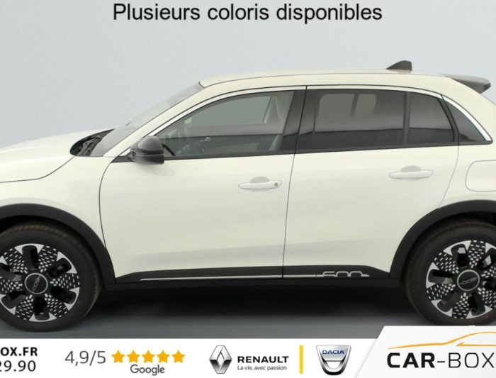 Hors frais de dossierT-Gen 3 1.2 Hybrid 145ch eDCT6 La Prima, hybride, blanc, 28/11/2025, Prolongation de la garantie constructeur de 24 à 36 Mois : option incluse (valeur : 550 Eur TTC), 2 appuis-tête AR, ABS, Accoudoir central AV, Poignées de porte intérieures chromées, Prise 12V AV, Rétroviseurs extérieurs à réglage électrique, Ouverture sans clé, Climatisation automatique, Rétroviseur intérieur photochromatique, 3ème appuie-tête AR, ESP, Vitres AR électriques, Vitres AR surteintées, Direction assistée, Peinture pastel Blanc : option incluse (valeur : 850 Eur TTC), Freinage autonome d’urgence avec détection de piéton et de cycliste, Frein à main électrique, Démarrage sans clé, Vitres AV électriques, Alerte franchissement de ligne, Banquette AR rabattable 60/40, Régulateur de vitesse adaptatif intelligent, Détecteurs de pluie et luminosité, Régulateur-limiteur de vitesse, Poches aumonières au dos des sièges AV, Radar de stationnement AR, Jantes alliage 18" diamantées, Réglage lombaire du siège conducteur et fonction massage, Siège conducteur à réglage électrique à 6 positions, Siège passager à réglage manuel 6 positions, Hayon à ouverture électrique mains libres, Système audio à 6 HP, Commutation feux de route/croisement, Radars de stationnement 360° (AV, AR et latéraux), Chargeur USB de type A et USB de type C, Combiné d’instrumentation numérique 7 », Connectivité Smartphone Apple CarPlay et Android Auto sans fil, Services connectés UConnect Services, Bouton d’appel d’urgence, Projecteurs antibrouillard à LED avec fonction de virage, Rappel du port de la ceinture de sécurité (1ère et 2ème rangées), Système ISOFIX siège AV passager et banquette AR, Système Uconnect 10, 25", Logo "HYBRID" sur le hayon de coffre, Tunnel central en position basse, Chargeur smartphone a induction, Conduite autonome de niveau 2, Kit anti-crevaison Fix&Go, Avertisseur d’angle mort, Plancher de coffre modulable, Rétroviseurs extérieurs rabattables et chauffants, Coques de rétroviseurs extérieurs noires brillant, Canule d’échappement côté droit (double), Chromothérapie (Lumière d’ambiance intérieure), Contrôle de la traction (TCS), Boîte de vitesse automatique 6 rapports, Contrôle de la pression des pneus, Clignotants à LED, Caméra de recul 180° avec lignes directrices dynamiques, Pack Hiver Sièges AV chauffants, Pare-brise AV chauffant (uniquement essuie-glace) : Sièges AV chauffants Pare-brise AV chauffant, Système de navigation embarqué, Pare-soleil avec miroir de courtoisie sans éclairage, Planche de bord couleur Ivoire avec contour noir brillant, Projecteurs full LED ‘Infinity’ (AV et AR), Chargeur USB de type C à l’AR, Sellerie premium soft touch couleur ivoire avec insert logo 600, Volant soft touch multifonctions avec détail chromé, Liseuses AV et AR à LED, Intervalle de maintenance 25 000 km ou 1 an, Console centrale avec pré-disposition couvercle magnétique, Verrouillage centralisé, 6 airbags