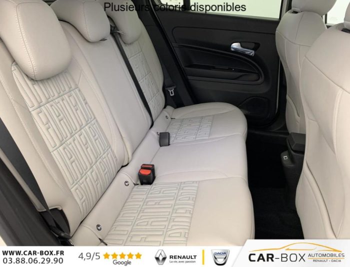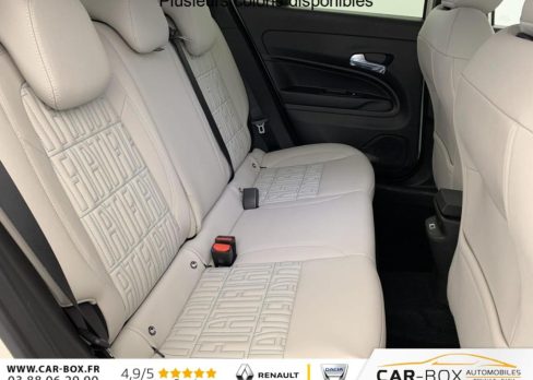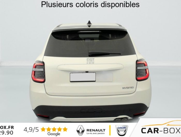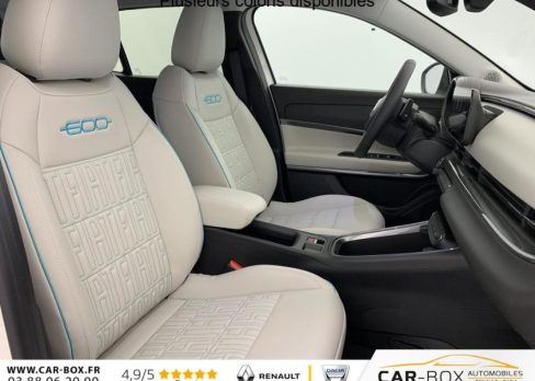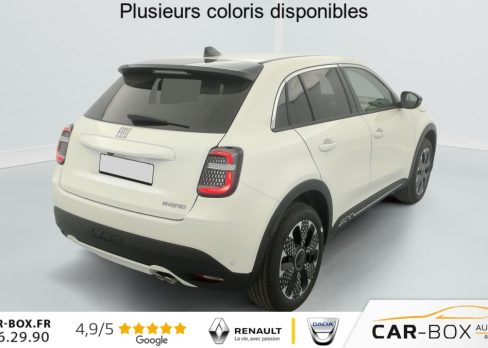 Prolongation de la garantie constructeur de 24 à 36 Mois : option incluse (valeur : 550 Eur TTC), 2 appuis-tête AR, ABS, Accoudoir central AV, Poignées de porte intérieures chromées, Prise 12V AV, Rétroviseurs extérieurs à réglage électrique, Ouverture sans clé, Climatisation automatique, Rétroviseur intérieur photochromatique, 3ème appuie-tête AR, ESP, Vitres AR électriques, Vitres AR surteintées, Direction assistée, Peinture pastel Blanc : option incluse (valeur : 850 Eur TTC), Freinage autonome d'urgence avec détection de piéton et de cycliste, Frein à main électrique, Démarrage sans clé, Vitres AV électriques, Alerte franchissement de ligne, Banquette AR rabattable 60/40, Régulateur de vitesse adaptatif intelligent, Détecteurs de pluie et luminosité, Régulateur-limiteur de vitesse, Poches aumonières au dos des sièges AV, Radar de stationnement AR, Jantes alliage 18" diamantées, Réglage lombaire du siège conducteur et fonction massage, Siège conducteur à réglage électrique à 6 positions, Siège passager à réglage manuel 6 positions, Hayon à ouverture électrique mains libres, Système audio à 6 HP, Commutation feux de route/croisement, Radars de stationnement 360° (AV, AR et latéraux), Chargeur USB de type A et USB de type C, Combiné d'instrumentation numérique 7'', Connectivité Smartphone Apple CarPlay et Android Auto sans fil, Services connectés UConnect Services, Bouton d'appel d'urgence, Projecteurs antibrouillard à LED avec fonction de virage, Rappel du port de la ceinture de sécurité (1ère et 2ème rangées), Système ISOFIX siège AV passager et banquette AR, Système Uconnect 10,25", Logo "HYBRID" sur le hayon de coffre, Tunnel central en position basse, Chargeur smartphone a induction, Conduite autonome de niveau 2, Kit anti-crevaison Fix&Go, Avertisseur d'angle mort, Plancher de coffre modulable, Rétroviseurs extérieurs rabattables et chauffants, Coques de rétroviseurs extérieurs noires brillant, Canule d'échappement côté droit (double), Chromothérapie (Lumière d'ambiance intérieure), Contrôle de la traction (TCS), Boîte de vitesse automatique 6 rapports, Contrôle de la pression des pneus, Clignotants à LED, Caméra de recul 180° avec lignes directrices dynamiques, Pack Hiver Sièges AV chauffants, Pare-brise AV chauffant (uniquement essuie-glace) : Sièges AV chauffants Pare-brise AV chauffant, Système de navigation embarqué, Pare-soleil avec miroir de courtoisie sans éclairage, Planche de bord couleur Ivoire avec contour noir brillant, Projecteurs full LED 'Infinity' (AV et AR), Chargeur USB de type C à l'AR, Sellerie premium soft touch couleur ivoire avec insert logo 600, Volant soft touch multifonctions avec détail chromé, Liseuses AV et AR à LED, Intervalle de maintenance 25 000 km ou 1 an, Console centrale avec pré-disposition couvercle magnétique, Verrouillage centralisé, 6 airbags
