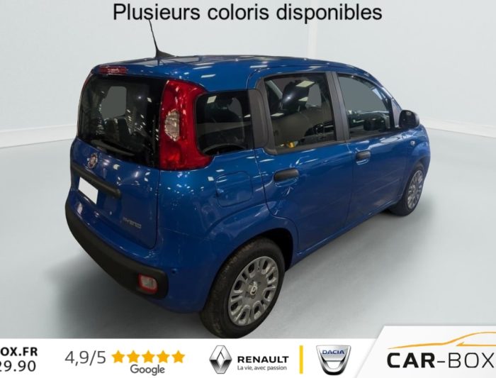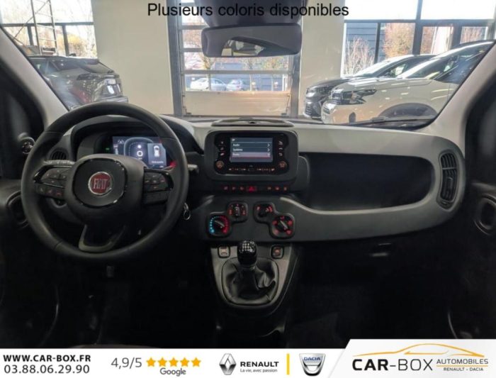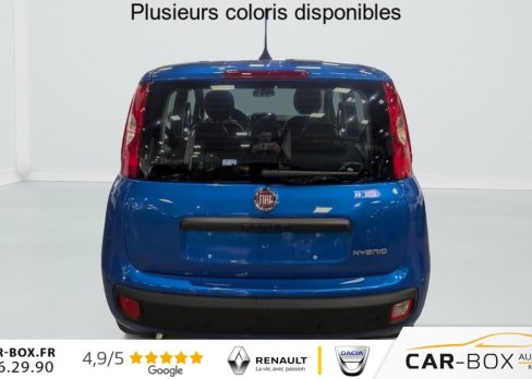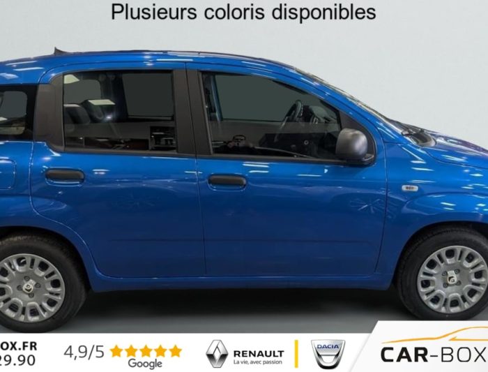 Hors frais de dossier1.0 70 ch Hybrid BSG S City, hybride, bleu, 30/06/2025, Boucliers couleur carrosserie, Start&Stop : Système automatique d’allumage/extinction du moteur lors de courts arrêts, Airbag conducteur, Climatisation manuelle, Capteur de pression des pneumatiques, Volant réglable en hauteur, Vitres AV électriques, Pare-chocs peints couleur carrosserie, Capteur de température exterieure, ESP, Direction assistée électrique, Pare-brise AR dégivrant, Essuie-glace AR, Freinage autonome d’urgence, Rétroviseurs extérieurs à réglage électrique et dégivrants, Alerte franchissement de ligne, Alerte attention conducteur, Peinture métallisée Bleu Italia : option incluse (valeur : 550 Eur TTC), Volant avec commandes, Siège conducteur réglable en hauteur, Radar de stationnement AR, Poignées de portes extérieures noires grainées, Radio 5", DAB avec Bluetooth, Sellerie tissu avec monogramme FIAT, Planche de bord grise anthracite, 5 Places, Arches de roues avec protection, Banquette AR rabattable monobloc, Clé avec ouverture/fermeture à distance, Jantes acier 14" avec enjoliveurs, Prise 12V, Combiné d’instrumentation numérique, Airbag passager, Alerte de non bouclage de ceinture, Compteur de vitesse, Lecture des panneaux de signalisation, Régulateur de vitesse, Coques de rétroviseurs noir grainé, Rétroviseurs extérieurs à réglage manuel, Airbags rideaux, Airbags latéraux