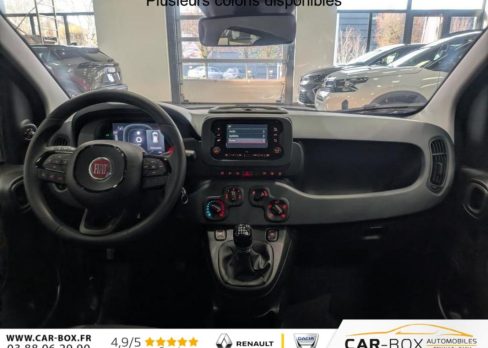 Boucliers couleur carrosserie, Start&Stop : Système automatique d'allumage/extinction du moteur lors de courts arrêts, Airbag conducteur, Climatisation manuelle, Capteur de pression des pneumatiques, Volant réglable en hauteur, Vitres AV électriques, Pare-chocs peints couleur carrosserie, Capteur de température exterieure, ESP, Direction assistée électrique, Pare-brise AR dégivrant, Essuie-glace AR, Freinage autonome d'urgence, Rétroviseurs extérieurs à réglage électrique et dégivrants, Alerte franchissement de ligne, Alerte attention conducteur, Peinture métallisée Bleu Italia : option incluse (valeur : 550 Eur TTC), Volant avec commandes, Siège conducteur réglable en hauteur, Radar de stationnement AR, Poignées de portes extérieures noires grainées, Radio 5", DAB avec Bluetooth, Sellerie tissu avec monogramme FIAT, Planche de bord grise anthracite, 5 Places, Arches de roues avec protection, Banquette AR rabattable monobloc, Clé avec ouverture/fermeture à distance, Jantes acier 14" avec enjoliveurs, Prise 12V, Combiné d'instrumentation numérique, Airbag passager, Alerte de non bouclage de ceinture, Compteur de vitesse, Lecture des panneaux de signalisation, Régulateur de vitesse, Coques de rétroviseurs noir grainé, Rétroviseurs extérieurs à réglage manuel, Airbags rideaux, Airbags latéraux