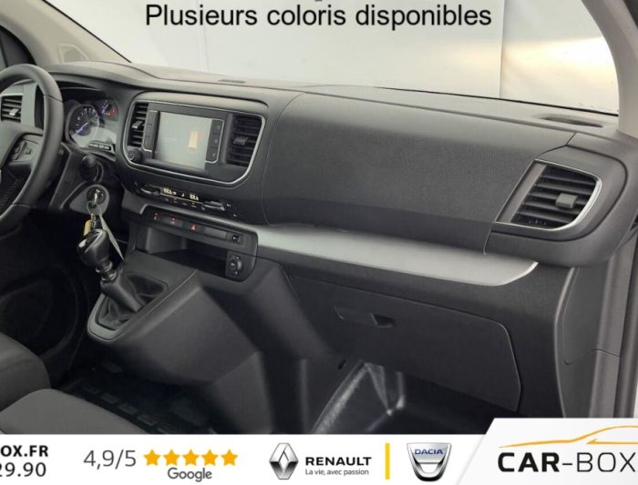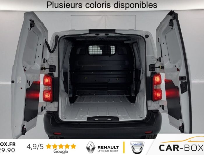 Airbags frontaux, Anneaux d'arrimage, Climatisation automatique : : option incluse (valeur : 360 Eur TTC), Cloison pleine tôlée, Jantes tôle 16'' avec enjoliveurs : : option incluse (valeur : 240 Eur TTC), Lève vitres avant électriques impulsionnels, Moduwork sur banquette passager 2 places : : option incluse (valeur : 480 Eur TTC), Navigation 3D avec reconnaissance vocale, écran tactile capacitif 7'' + Mirror Screen : : option incluse (valeur : 1 308 Eur TTC), Pack Visibilité : : option incluse (valeur : 348 Eur TTC), Porte latérale coulissante droite, Portes arrière battantes 50/50 tôlées à ouverture à 180°, Régulateur - limiteur de vitesse, Rétroviseurs extérieur électrique et chauffants, Revêtement de sol TPO dans l'habitacle, Roue de secours homogène : : option incluse (valeur : 216 Eur TTC), Siège conducteur avec accoudoir et réglage lombaire, Système audio Numérique (DAB) avec Bluetooth, Volant réglable en hauteur et profondeur