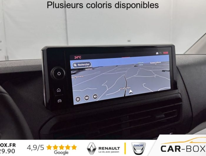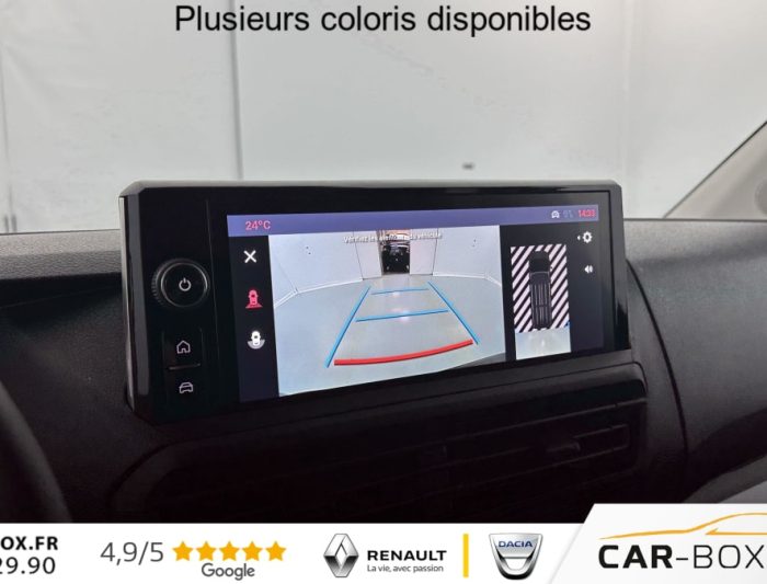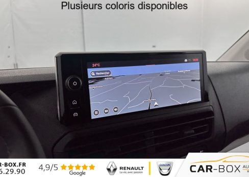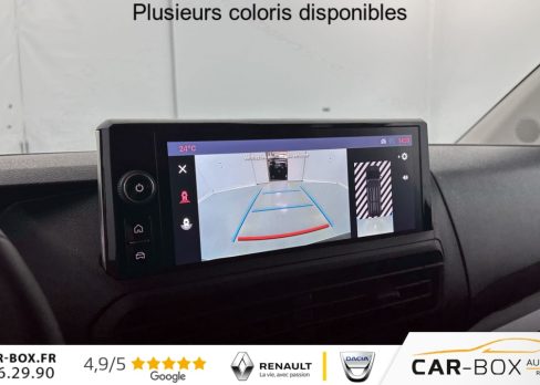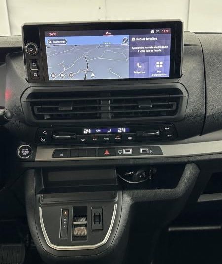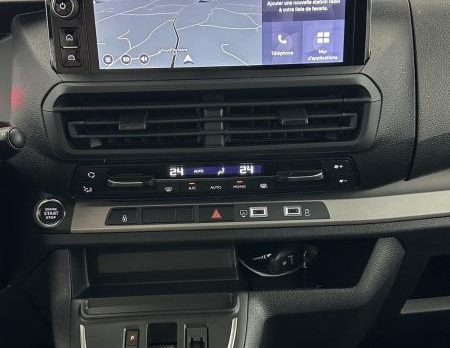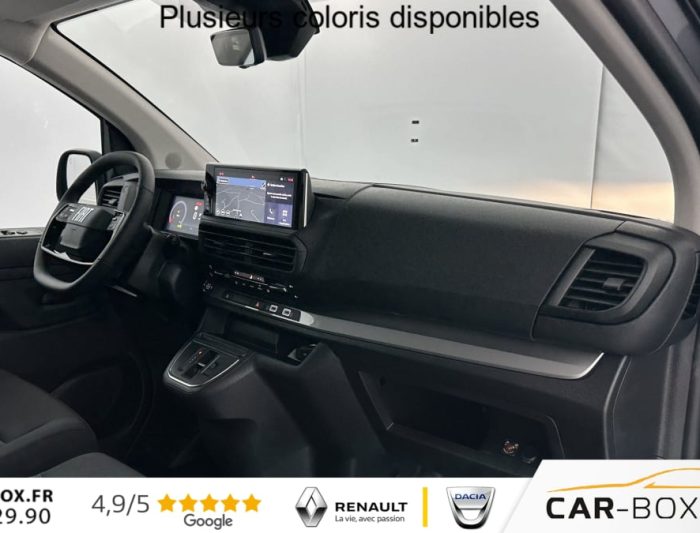 Accès et démarrage mains libres, Aide au stationnement AR, Aide au stationnement avant, arrière et latéral + Système de surveillance d'angle mort, Allumage automatique des feux de croisement et des essuie-vitres AV, Banquette fixe 3 places en rang 2 avec coffre de rangement amovible sous assises gauche et centrale et avec zone pour charge longue sous assise droite, Caméra de recul 180° avec affichage sur écran tactile 10'' HD couleur, Charge utile majorée, Climatisation automatique bi-zone, Cloison pleine PVC avec vitre plexiglass, Combiné numérique 10'' HD couleur, Connectivité via BTA (appel d'urgence et d'assistance localisées + offres services connectés), Ecran tactile 10'' HD couleur avec Navigation 3D connectée et Apple CarPlay® et Android auto™ sans fil, Frein de stationnement électrique, Jantes tôle noires 17'' avec enjoliveur, Lève-vitres AV électriques séquentiels, Pack Look Extérieur, Pack Sécurité, Peinture métallisée Gris Acier : : option incluse (valeur : 648 Eur TTC), Planche de bord avec décor Liquid Palladium et boîte à gants inférieure et rangement central supérieur fermés, Porte latérale coulissante droite, Porte latérale coulissante gauche : : option incluse (valeur : 480 Eur TTC), Portes AR battantes 50/50 tôlées à ouverture à 180°, Prise 12V (120W max) dans la zone de chargement, Projecteurs antibrouillard, Recharge sans fil pour smartphone, Régulateur-limiteur de vitesse, Rétroviseurs extérieurs rabattables électriquement, Revêtement de sol TPO en rangs 1 et 2, Roue de secours homogène (jante tôle noire) : : option incluse (valeur : 216 Eur TTC), Siège conducteur individuel avec accoudoir, Siège passager individuel avec accoudoir (configuration 2 places AV) Réglages: longueur, inclinaison. : : option incluse (valeur : 0 Eur TTC), Système de rétrovision arrière et latérale droite par 2 caméras avec affichage sur rétroviseur intérieur numérique, VEHICULE EN ARRIVAGE : DELAIS / PHOTOS / ÉQUIPEMENTS / CO2, NON CONTRACTUELS, Vitres latérales fixes surteintées acoustiques en rang 2, Volant cuir, Volant cuir chauffant avec airbags latéraux AV : : option incluse (valeur : 240 Eur TTC), 4 anneaux d'arrimage répartis uniformément sur la zone de chargement