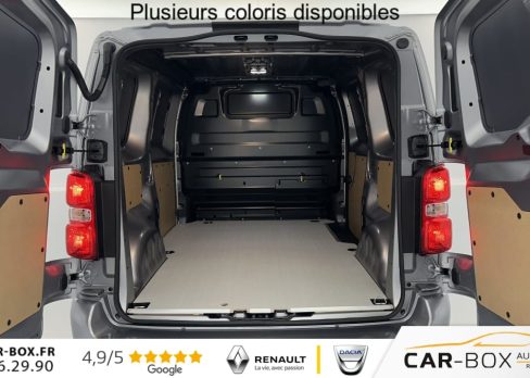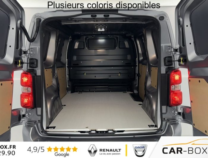 Aide au stationnement avant, arrière et latéral + Système de surveillance d'angle mort, Allumage automatique des feux de croisement et des essuie-vitres, Banquette passager 2 places avec rangement sous assise, Boitier télématique (appel d'urgence et d'assistance géolocalisés), Caméra de recul 180° avec affichage sur écran tactile 10'' HD couleur, Climatisation manuelle, Cloison pleine tôlée, Combiné numérique 10'' HD couleur, Détection de sous-gonflage, Éclairage renforcé à LED dans la zone de chargement, Ecran tactile 10''HD couleur avec Apple CarPlay® et Android auto™ sans fil, Pack Look Extérieur : : option incluse (valeur : 600 Eur TTC), Pack Moduwork (Banquette passager 2 places modulable) : : option incluse (valeur : 1 200 Eur TTC), Pack Sécurité, Planche de bord avec décor Liquid Palladium, Plancher bois anti-dérapant 9 mm avec baguette aluminium, Porte latérale coulissante droite, Portes arrière battantes 50/50 tôlées à ouverture à 180°, Prise 12V (120W max) dans la zone de chargement, Projecteurs antibrouillard, Régulateur-limiteur de vitesse, Rétroviseurs extérieurs rabattables électriquement, Revêtement de sol TPO dans la cabine, Roue de secours homogène (jante tôle noire), Siège conducteur avec appui-tête réglable en hauteur et accoudoir, Système de rétrovision arrière et latérale droite avec affichage sur rétroviseur intérieur numérique, Teinte métallisée : : option incluse (valeur : 648 Eur TTC), Volant réglable en hauteur et profondeur