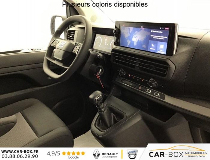 ABS, Accoudoir conducteur, Aide au démarrage en cote, Aide au freinage d'urgence, Aide au stationnement arrière, Airbags frontaux, Anneaux d'arrimage, Apple CarPlay + AndroidAuto, Assistant de maintien de voie, Avertissement de fatigue, Banquette 2 places, Banquette 2 places modulable avec fonction bureau, Bluetooth, Caméra de recul, Climatisation, Cloison complète, Cloison de séparation avec trappe de chargement sans fenêtre, Connexion MP3, Contrôle avancé de motricité (Advanced Grip Control), Contrôle de la pression des pneus, Doubles portes arrière (non vitrées) avec butoirs à 180°, Éclairage à LED du compartiment de chargement, Écran central multimédia 10'', Freinage actif d'urgence, Hill descent control, Jantes en tôle 16'', Jantes en tôle 17'', kit de réparation, Phares antibrouillard, PNEUS M&S, Porte coulissante à droite, Prise 12 V, Programme de stabilité électronique (ESP), Protection sous moteur, Radio DAB, Reconnaissance des panneaux de signalisation avec alerte de survitesse, Régulateur et limiteur de vitesse, Rétroviseurs extérieurs électriques et chauffants, Rétroviseurs extérieurs rabattables électriquement, Roue de secours, Sélecteur de mode de conduite (Drive Mode), Siège conducteur réglable en hauteur, Système d'avertissement de sortie de voie, Système de contrôle de traction ASR, Système de navigation, Tableau de bord numerique avec écran couleur 10'' personnalisable, Tissu, Vitres électriques avant, Volant réglable en hauteur et en profondeur