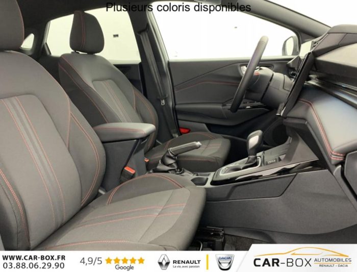 1.0 EcoBoost 125 ch mHEV S Powershift ST-Line, hybride, gris, 21/10/2025, Aide au stationnement AR, Caméra de recul, Peinture métallisée : option incluse (valeur : 600 Eur TTC), Prolongation garantie constructeur de 24 à 36 mois : option incluse (valeur : 560 Eur TTC), Console centrale avec accoudoir coulissant, Vitres électriques AV et AR, Airbags frontaux et latéraux conducteur et passager AV, Air conditionné automatique, Siège Sport, Système de surveillance de la pression des pneus, Feux AR à LED, Lecture des panneaux de signalisation, Airbags rideaux, Pare-brise acoustique, Suspension Sport, Kit de réparation des pneumatiques, Rétroviseur intérieur électrochrome, Régulateur/limiteur de vitesse, Badge ST-Line, Pommeau de levier de vitesse gainé cuir avec surpiqures rouges, Alerte de véhicule en approche, Pédalier Aluminium, Pack Confort : Hayon mains libres Accès et démarrage mains libres Recharge smartphone sans fil Rétroviseurs extérieurs électriques, chauffants, et rabattables électriquement avec éclairage d’approche et répétieurs de clignotant intégré Sièges AV avec support lombaire et siège passager réglable en hauteur : option incluse (valeur : 750 Eur TTC), Rétroviseurs extérieurs électriques, chauffants avec répétiteur de clignotant et coque couleur carrosserie, Projecteurs LED avec feux de jour et commutateur de feux de route automatique, Freins à disques AV, Tambour AR, Planche de bord en vinyle Premium, Megabox (compartiment de rangement sous le plancher du coffre), Assistant de pré collision avec freinage post collision, Assistant de maintien dans la voie, Système d’infodivertissement SYNC4 avec écran tactile 12" et commandes vocales, 2 ports USB, navigation, Apple CarPlay et Android auto, 6 haut-parleurs, Combiné d’instrumentalisation numérique 12.8", Sélecteur de mode de conduite, Avertisseur de conduite à contre-sens, Assistance à la conduite économique, Système de contrôle de la trajectoire et de la stabilité avec assistant au freinage d’urgence et aide au démarrage en côte, Pneus eco 215/55 R17, Kit carrosserie ST-Line (bouclier AV sport et diffuseur AR), Arches de roue couleur carrosserie, Jupes latérales couleur carrosserie avec enjoliveur de porte argenté, Pommeau de levier de vitesse en Sensico, Plaques de seuil de portes en aluminium avec logo, Sièges AV en tissu avec surpiqûres rouges, Jantes alliage 17" ST-Line, Pack Hiver : Sièges AV chauffants Volant chauffant Pare-brise dégivrant QuickClear : option incluse (valeur : 500 Eur TTC), Siège conducteur à réglage lombaire, Vitres AR surteintées, Allumage automatique des phares, Siège conducteur à réglage manuel 4 positions, Siège conducteur à réglage manuel 2 positions