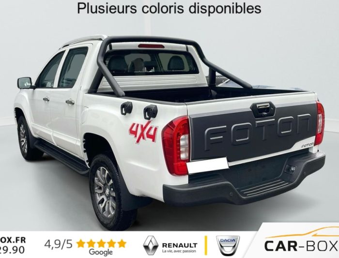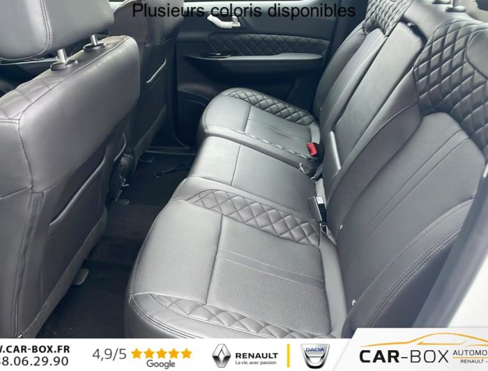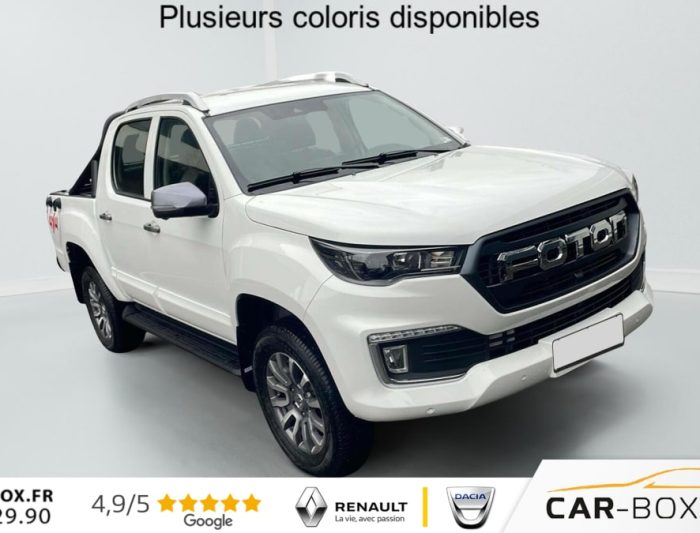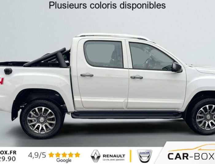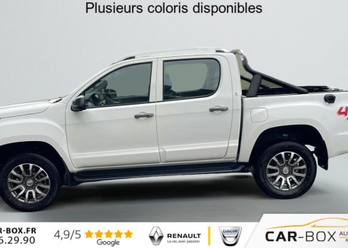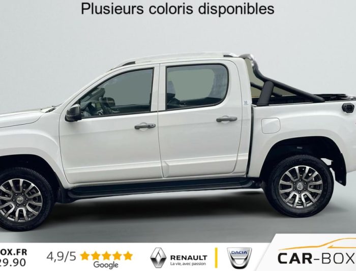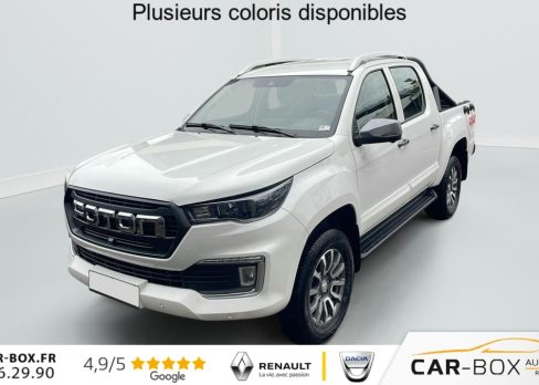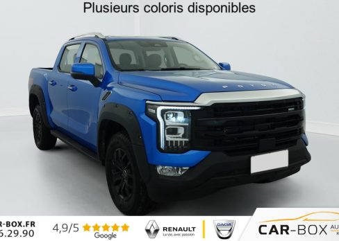 Hors frais de dossier2.0L 163 CH, diesel, noir, Alerte de fatigue du conducteur, Arceau : tube en acier peint noir mat, pour soutenir des objets longs sans endommager la carrosserie : option incluse (valeur : 420 Eur TTC), Assistance au changement de voie, Ceintures de sécurité arrière trois points, Eclairage de bienvenue au sol, Freins avants et arrières à disques, Lève-vitres électriques AV et AR, Volant multifonctions avec boutons rétroéclairés, ABS + EBD + ESP (Incluant ABS, EBD, assistance au freinage d’urgence, aide au démarrage en côte), Calandre gis mat, Feux de jour LED, Projecteurs antibrouillards avant, Rétroviseurs extérieurs chauffants, rabattables électriquement, Rétroviseurs extérieurs avec clignotant à LED, Jantes aluminium 18 », 265/60R18, Marchepieds latéraux, Garde-boue pour roues arrières, Lunette arrière chauffante, Pare-soleil conducteur et passager avec miroirs de courtoisie, Rétroviseur intérieur manuel, Écran couleur 7 » sur le tableau de bord, Sellerie tissu double maille / PVC motif cuir, Siège conducteur réglable életriquement (6 voies), Siège passager réglable inclinaison et profondeur, Sièges AV chauffants, Accoudoir central arrière, Ancrages ISOFIX pour sièges enfants, Accoudoir AV avec rangement, Boîte à gants, Éclairage d’ambiance Intérieur, Alerte de collision frontale (FCW), Alerte de franchissement de ligne (LDW), Surveillance des angles morts, Caméra 360°, Régulateur de vitesse, 3 modes de conduite, Verrouillage automatique, Ecran multimédia 10, 25 pouces, Bluetooth mains-libres, Climatisation automatique, Purification de l’air avec système PM2.5, Phares automatiques, Clé Intelligente et démarrage sans clé, Bouton de démarrage, Frein de parking électrique, Essuie-glaces à vitesse variable, Prises USB à l’avant et à l’arrière, 6 HP, Airbags latéraux et rideaux gonflables, Blocage différentiel manuel, Freinage automatique d’urgence (AEB), Surveillance de la pression des pneus, Capteurs de stationnement arrière et avant, Protection des piétons, Ceintures de sécurité avant avec prétenslonneurs, Détection de ceinture de sécurité non attachée, Airbags conducteur et passager