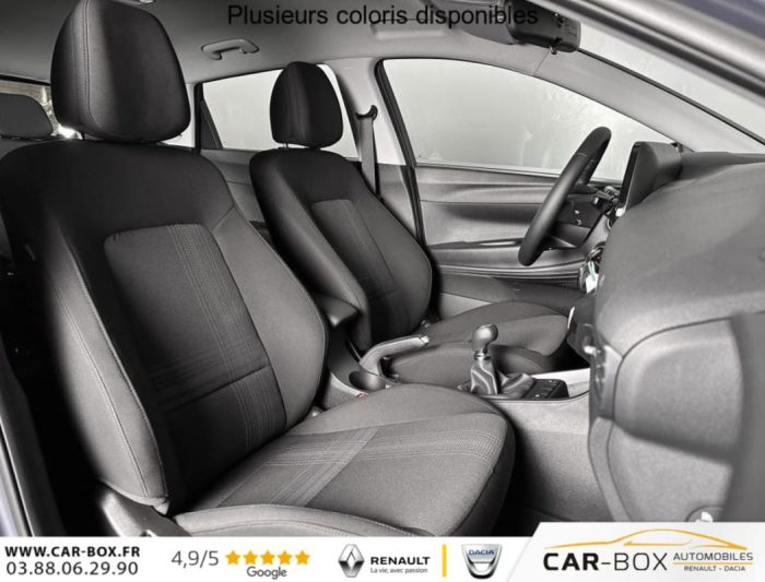 Verrouillage centralisé à distance avec clé rétractable, Aide au démarrage en côte, Caméra de recul, Climatisation manuelle, Vitres électriques AV/AR, Allumage automatique des feux de croisement, Contrôle de trajectoire électronique (ESP & VSM), Verrouillage automatique des portes en roulant, Contrôle de la pression des pneumatiques TPMS, Système ISOFIX aux places latérales AR, Rétroviseurs extérieurs électriques et chauffants, Système anti-patinage (TCS), Volant et levier de vitesse gainés cuir, Commandes au volant, Antidémarrage, Aide au stationnement AR, Poignées de portes grain métal, Connexion Bluetooth, Feux de route intelligents, Banquette AR rabattable 60/40, Console de rangement sous accoudoir AV, Vitre électrique séquentielle côté conducteur, Alerte de présence de passager AR, Feux de jour et feux de position à LED, Ecran couleur tactile 10.25", Volant réglable en hauteur et en profondeur, Compteurs numériques 10,25", Compatibilité Apple CarPlay et Android Auto, Peinture métallisée : option incluse (valeur : 550 Eur TTC), Jantes alliage 16" 195/55 R16 87H, 6 Airbags: frontaux conducteur et passager (déconnectable côté passager), latéraux AV, rideaux AV et AR, Port USB-C de recharge à l'AR, Port USB-C de recharge à l'AV, Porte-gobelet AV, Régulateur de vitesse, ABS avec EBD et ESP, Boîte de vitesses manuelle à 5 rapports, Siège conducteur réglable en hauteur, Sécurité enfants sur portes AR, Direction assistée électrique, Contrôle de la pression des pneumatiques