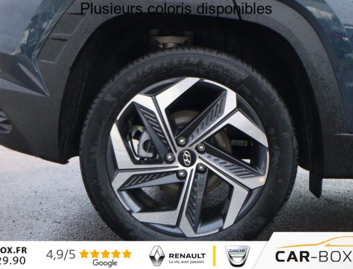 Hors frais de dossier1.6 T-GDI 230 Hybrid BVA6 Executive, hybride, bleu, 03/04/2024, Garantie legale constructeur 2 ans a partir de la date de premiere mise en circulation : option incluse (valeur : 0 Eur TTC), Securite enfants electrique des vitres AR, Volant gaine cuir, Vitres AV/AR sequentielles, Capteur de pluie, Jantes alliage 19 », Aide au demarrage en cote, Eclairage additionnel en virage, Systeme d’acces mains-libres et demarrage sans cle, Commandes audio au volant, Direction assistee electrique asservie a la vitesse, Vide-poches dans portes AV/AR, Assistance active au maintien de voie, Camera de recul avec lignes de guidage dynamiques, Verrouillage automatique des portes en roulant, Retroviseurs interieur jour/nuit automatique, Porte-gobelets AV/AR, Retroviseurs exterieurs ton carrosserie, Palettes au volant, Cache-bagages a enrouleur, Accoudoir central AR avec porte-gobelets, Accoudoir AV, Airbags frontaux conducteur et passager, Airbags lateraux, Alarme perimetrique, Allumage automatique des feux, Appuie-tetes AR reglables en hauteur, Aide au stationnement AR, Volant chauffant, Connexion Bluetooth, Camera 360, Aide au stationnement AV, Siege conducteur avec support lombaire electrique, Sieges AV reglables en hauteur, Poignees de portes interieures grain metal, Feux de route intelligents, Rails de toit, Reconnaissance des panneaux de limitation de vitesse, Hayon mains-libres intelligent, Poignees de portes exterieures ton carroserie, Detection de fatigue du conducteur, Compatibilite Apple CarPlay et Android Auto, Clignotants AV a LED, Feux AV bi-LED, Frein de parking electrique avec fonction auto-hold, Drive Mode, Systeme d’arret et redemarrage automatiques, Controle de vitesse en descente, Chargeur sans fil pour telephone compatible, Reception radio numerique terrestre (DAB), Appuie-tetes AV reglables en hauteur, Antenne de toit type requin en effet verre, Assistance active au suivi de voie, Double sortie d’echappement, Console centrale avec bac de rangement sous l’accoudoir AV, Regulateur de vitesse adaptatif intelligent (jusqu’a l’arret), Alerte de circulation transversale a l’AR avec fonction freinage, Controle de trajectoire electronique ESP avec gestion de stabilite pour remorque, Pares-soleil integres dans les portes AR, Systeme audio premium Krell avec subwoofer et amplificateur, Retroviseurs electriques degivrants, rabattables electriquement avec clignotants integres, eCall : appel d’urgence automatique aux services de secours avec geolocalisation du vehicule, Sieges AR inclinables, Services connectes BlueLink avec carte SIM incluse, Affichage camera des angles morts, Assistance a la sortie du vehicule, Systeme de navigation Europe avec programme de mise a jour de la cartographie et services Hyundai live, Airbag central AV, Freinage d’urgence autonome avec reconnaissance pietons et cyclistes, Compteurs numeriques 10.25 », Limiteur de vitesse intelligent, Dossier AR rabattable 40/20/40, Prises 12V (AV et coffre) et USB AV/AR, Calandre chromee »Parametric Dynamics », Feux AR a LED avec bandeau lumineux, Feux de jour et de position AV a LED a effet miroir, Freinage d’urgence autonome avec fonction intersections, Surveillance des angles morts avec assistance active au changement de voie, Systeme multimedia avec ecran couleur tactile 10.25 » et reconnaissance vocale en ligne, Eclairage d’ambiance interieur a LED, Freinage anti multi-collisions, Climatisation automatique tri-zones et desembuage automatique (avec mode Multi-air AV), Haut de jonc de vitres chrome, Pares-soleil avec miroirs de courtoisie eclaires, Pare-brise athermique, Poches aumonieres au dos des sieges AV, Sieges AV chauffants, Verrouillage centralise a distance, Vitres AR surteintees, Volant reglable en hauteur et en profondeur, Airbag passager deconnectable, Airbags rideaux, Fixations Isofix aux places laterales AR, Controle de la pression des pneumatiques