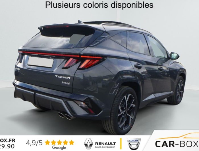 Hors frais de dossier1.6 T-GDI 239 Hybrid BVA6 N Line Executive, hybride, gris, 14/12/2025, ABS et EBD, Accoudoirs avant et central arriere avec porte-gobelets, Affichage camera des angles morts, Affichage tete haute 12 », Aide au demarrage en cote, Aide au stationnement arriere, Aide au stationnement avant, Airbag passager deconnectable, Alarme perimetrique, Alerte de circulation transversale arriere avec fonction freinage, Alerte de presence de passager arriere avec systeme de radar, Allumage automatique des feux, Antenne de toit type requin, Appuie-tetes avant/arriere reglables en hauteur, Assistance a la sortie du vehicule, Assistance active a la conduite sur autoroute, Assistance active au maintien et au suivi de voie, Boite automatique 6 rapports, Boucliers avant/arriere »N Line », Calandre finition chromee et noire »Parametric Dynamics N Line », Camera de recul avec lignes de guidage dynamiques, Camera 360 avec vue 3D, Capteur de desembuage automatique du pare-brise, Chargeur sans fil pour telephone compatible, Ciel de toit noir, Clignotants AV a LED, Climatisation automatique tri-zone, Compatibilite Apple CarPlay et Android Auto – connexion sans fil, Compteurs numeriques 12, 3 », Connexion Bluetooth, Console centrale avec bac de rangement sous l’accoudoir avant, Controle de la pression des pneumatiques, Controle de trajectoire electronique ESP avec gestion de stabilite pour remorque, Controle de vitesse en descente, Detection de fatigue du conducteur, Direction assistee electrique, Dossier arriere rabattable 40/20/40 a distance avec commande depuis le coffre, Double sortie d’echappement, Drive Mode, eCall : appel d’urgence automatique aux services de secours avec geolocalisation du vehicule, Eclairage d’ambiance interieur a LED personnalisable, Feux arriere a LED avec bandeau lumineux, Feux avant bi-LED, Feux de jour et de position avant a LED, Feux de route intelligents, Filet de coffre, Frein de parking electrique avec fonction auto-hold, Freinage anti multi-collisions, Freinage d’urgence autonome avec reconnaissance pietons et cyclistes, Hayon mains-libres intelligent, Jantes alliage 19 » »N Line », Jonc de vitres noir, Limiteur de vitesse intelligent, Mises a jour sans fil a distance OTA, Pare-soleils integres dans les portes AR, Pedalier facon aluminium, Planche de bord avec insert rouge »N Line », Poches aumonieres au dos des sieges avant, Poignees de portes exterieures ton carroserie, Poignees de portes interieures grain metal, Prise USB type C avant, Prises 12V (avant et coffre) et USB avant/arriere, Rails de toit, Reception radio numerique terrestre (DAB), Reconnaissance des panneaux de limitation de vitesse, Regulateur de vitesse adaptatif intelligent (jusqu’a l’arret), Retroviseurs electriques degivrants, rabattables electriquement avec clignotants integres, Retroviseurs exterieurs noirs brillants, Retroviseurs interieur jour/nuit automatique, Sellerie »N Line » cuir / alcantara avec surpiqures rouges, Services connectes BlueLink, Siege conducteur et passager avec support lombaire electrique, Siege conducteur reglable en hauteur, Siege passager avant reglable en hauteur, Sieges arriere chauffants, Sieges arriere inclinables, Sieges avant chauffants, Sieges avant reglables electriquement (a memoire cote conducteur), Sieges avant ventiles, Surveillance des angles morts avec assistance active au changement de voie, Systeme audio premium Krell avec subwoofer et amplificateur, Systeme d’acces mains-libres et demarrage sans cle, Systeme de navigation Europe avec programme de mise a jour de la cartographie, Systeme ISOFIX pour siege enfant aux places laterales arriere, Systeme multimedia avec ecran couleur tactile 12, 3 » avec reconnaissance vocale en ligne, TCS (Traction Control System), Transmission a commande electrique, Verrouillage automatique des portes en roulant, Verrouillage centralise, Vide-poches dans portes avant/arriere, Vitres arriere surteintees, Vitres avant/arriere electriques sequentielles, Volant chauffant, Volant reglable en hauteur et en profondeur, Volant sport »N Line » gaine cuir avec surpiqures rouges, 7 Airbags : central avant, frontaux avant, lateraux avant, rideaux avant/arriere