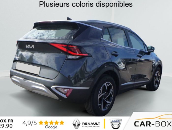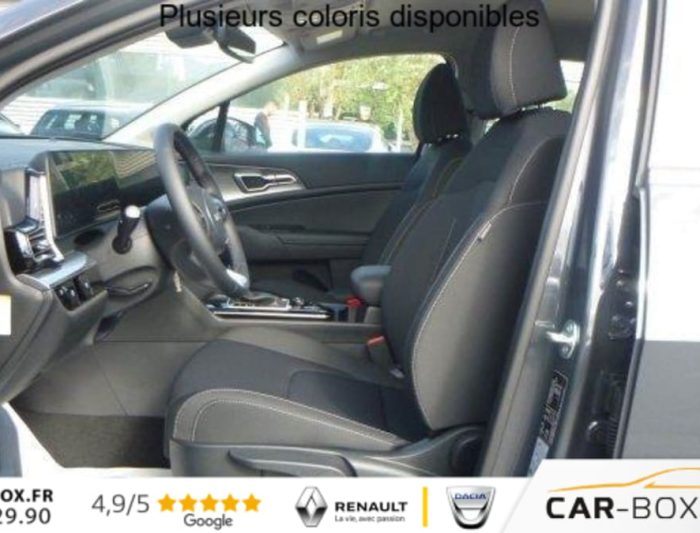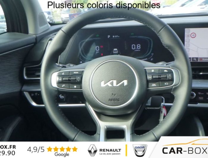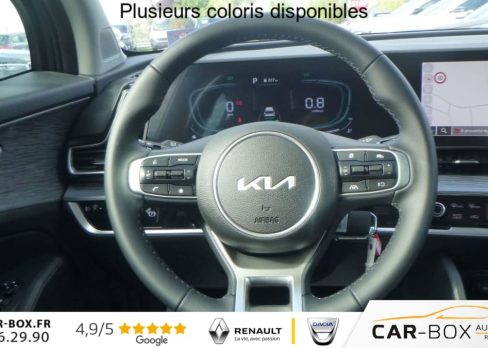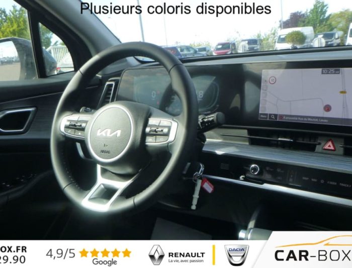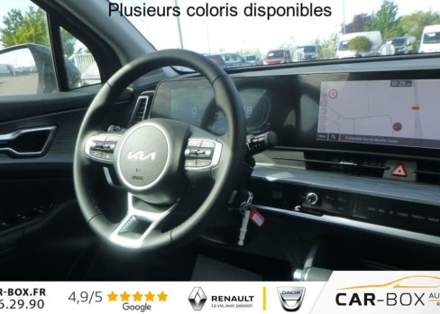 ABS avec repartiteur electronique de freinage (EBD), Accoudoir central AR avec porte-gobelets integres, Accoudoir central avant avec compartiment de rangement, Aide au maintien dans la file (LKA), Airbags frontaux, lateraux avant, et rideaux, Alerte de vigilance du conducteur (DAW), Allumage automatique des projecteurs en fonction de la luminosite, Appel d'urgence , Assistance au demarrage en cote (HAC), Banquette arriere rabattables 40/20/40 avec systeme de pliage a distance dans le coffre, Bouclier avant couleur carrosserie et protection du bouclier noir, Camera de recul avec lignes de guidage dynamiques, Capteur de pluie, Climatisation automatique bi-zones , Combine d'instrumentation avec ecran ''Supervision'' 4.2'', Compartiments de rangement sous le plancher de coffre, Connectique USB a l'AV, Console AV avec porte-gobelets integres, Controle de la pression des pneumatiques (TPMS) , Controle de vitesse en descente (DBC), Controle electronique de la trajectoire (ESC), Coques de retroviseurs couleur carrosserie, Dossier de sieges arriere inclinable avec poignee de reglage integree a l'assise, Ecran tactile 12.3'' avec compatibilite via cable USB Android Auto et Apple CarPlay, Feux arriere a LED, Feux de jour avant a LED en forme de boomerang, Frein de parking electrique avec fonction Autohold, Grille de calandre noir laque, Jantes en alliage 17'', Kit de depannage en cas de crevaison, Leve-vitres avant et arriere electriques (sequentiel et anti-pincement cote conducteur), Moulures de bas de porte noir laque et chrome satine, Pares-soleil avec miroirs de courtoisie illumines (conducteur et passager), Poches aumonieres au dos des sieges AV, Poignees de portes exterieures couleur carrosserie, Prise 12 V dans le coffre, Prise 12 V sur la partie inferieure de la planche de bord, Projecteurs AV a LED, Radars de parking avant et arriere, Radio numerique DAB, Rails de toit, Reconnaissance des panneaux de limitation avec regulation de vitesse (ISLA), Regulateur / limiteur de vitesse, Retroviseur interieur electrochrome, Retroviseurs exterieurs electriques et degivrants, Retroviseurs exterieurs rabattables electriquement avec repetiteur de clignotant LED, Selecteur de conduite Drive Mode, Siege conducteur reglable en hauteur, Surlignage des passages de roue en finition noir laque, Systeme audio 6 HP (dont 2 tweeters), Systeme de fixation Isofix sur sieges arriere lateraux, Systeme de freinage d'urgence avec detection voitures, pietons et cyclistes (FCA), Systeme de navigation avec cartographie Europe et services connectes Kia Connect, Systeme de telephonie mains-libres Bluetooth avec reconnaissance vocale, Systeme Stop & Go de coupure du moteur a l'arret (ISG), Temoin de non-bouclage des ceintures de securite , Verrouillage automatique des portieres asservi a la vitesse, Volant gaine cuir, Volant reglable en hauteur et en profondeur
