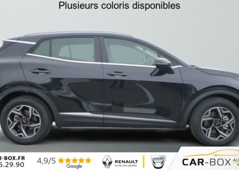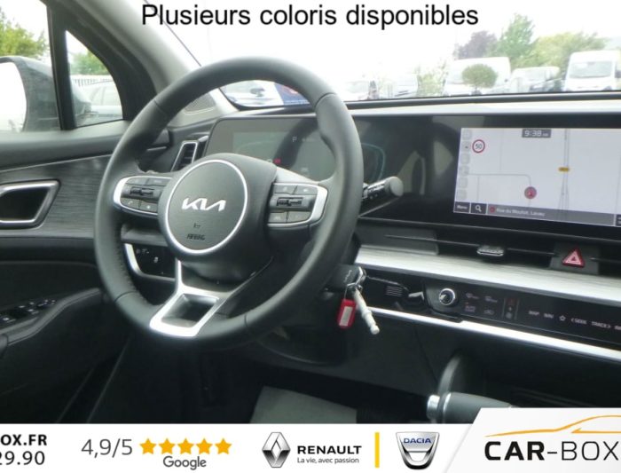 ABS avec repartiteur electronique de freinage (EBD), Accoudoir central AR avec porte-gobelets integres, Accoudoir central avant avec compartiment de rangement, Aide au maintien dans la file (LKA), Airbags frontaux, lateraux avant, et rideaux, Alerte de vigilance du conducteur (DAW), Allumage automatique des projecteurs en fonction de la luminosite, Appel d'urgence , Assistance au demarrage en cote (HAC), Banquette arriere rabattables 40/20/40 avec systeme de pliage a distance dans le coffre, Bouclier avant couleur carrosserie et protection du bouclier noir, Camera de recul avec lignes de guidage dynamiques, Capteur de pluie, Climatisation automatique bi-zones , Combine d'instrumentation avec ecran ''Supervision'' 4.2'', Compartiments de rangement sous le plancher de coffre, Connectique USB a l'AV, Console AV avec porte-gobelets integres, Controle de la pression des pneumatiques (TPMS) , Controle de vitesse en descente (DBC), Controle electronique de la trajectoire (ESC), Coques de retroviseurs couleur carrosserie, Dossier de sieges arriere inclinable avec poignee de reglage integree a l'assise, Ecran tactile 12.3'' avec compatibilite via cable USB Android Auto et Apple CarPlay, Feux arriere a LED, Feux de jour avant a LED en forme de boomerang, Frein de parking electrique avec fonction Autohold, Grille de calandre noir laque, Jantes en alliage 17'', Kit de depannage en cas de crevaison, Leve-vitres avant et arriere electriques (sequentiel et anti-pincement cote conducteur), Moulures de bas de porte noir laque et chrome satine, Pares-soleil avec miroirs de courtoisie illumines (conducteur et passager), Poches aumonieres au dos des sieges AV, Poignees de portes exterieures couleur carrosserie, Prise 12 V dans le coffre, Prise 12 V sur la partie inferieure de la planche de bord, Projecteurs AV a LED, Radars de parking avant et arriere, Radio numerique DAB, Rails de toit, Reconnaissance des panneaux de limitation avec regulation de vitesse (ISLA), Regulateur / limiteur de vitesse, Retroviseur interieur electrochrome, Retroviseurs exterieurs electriques et degivrants, Retroviseurs exterieurs rabattables electriquement avec repetiteur de clignotant LED, Selecteur de conduite Drive Mode, Siege conducteur reglable en hauteur, Surlignage des passages de roue en finition noir laque, Systeme audio 6 HP (dont 2 tweeters), Systeme de fixation Isofix sur sieges arriere lateraux, Systeme de freinage d'urgence avec detection voitures, pietons et cyclistes (FCA), Systeme de navigation avec cartographie Europe et services connectes Kia Connect, Systeme de telephonie mains-libres Bluetooth avec reconnaissance vocale, Systeme Stop & Go de coupure du moteur a l'arret (ISG), Temoin de non-bouclage des ceintures de securite , Verrouillage automatique des portieres asservi a la vitesse, Volant gaine cuir, Volant reglable en hauteur et en profondeur