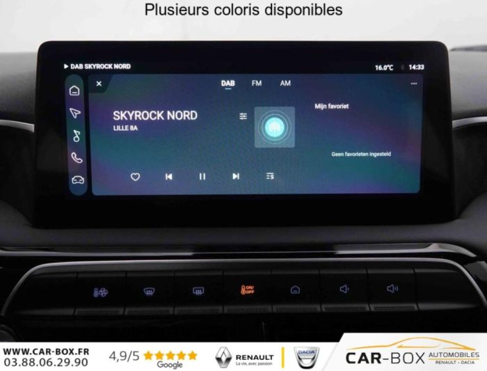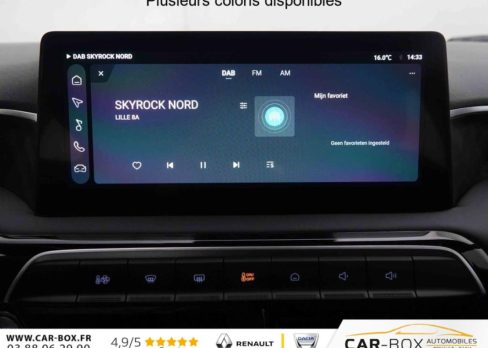 ABS, Airbag(s), Anti-Démarrage, Anti-Patinage, Bluetooth, Caméra de recul, Carplay, Climatisation, Ecran tactile, Essuie-glace à detecteur de pluie, Feux du jour LED, Feux LED, GPS via Carplay, Isofix, Jantes Alu, Lane change assist, Lane change warning, Ordinateur de bord, Peinture metal, Projecteurs à allumage automatique, Radar de recul arriere, Radio, Radio avec commande au volant, Radio DAB, Rétroviseurs extérieur électriques (rabattables et dégivrants), Systeme de navigation, USB ou AUX, Verrouillage centralisé à commande àdistance, Vitres électriques arrière, Vitres électriques avant