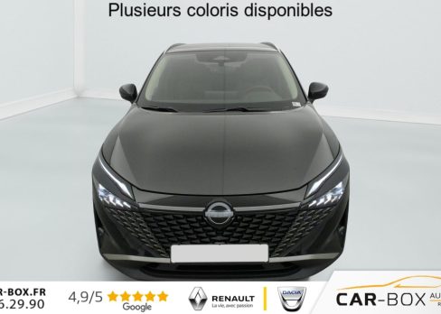 Pack Hiver - Sièges AV chauffants - Volant chauffant - Pare-brise chauffant : Sièges AV chauffants Volant chauffant Pare-brise chauffant : option incluse (valeur : 750 Eur TTC), Contrôle de traction électronique, Points d'ancrage pour sièges enfants ISOFIX à l'AR (x2), Accoudoir central AR avec porte-gobelets (2), Ciel de toit Noir, Accoudoir central AV, Pare-soleil côté conducteur et passager avec miroir de courtoisie éclairé, Banquette AR rabattable 60/40, Siège passager réglable en hauteur, Vitres AR teintées, Reconnaissance des panneaux de signalisation, Avertisseur de ceintures de sécurité, Détecteur de pluie avec essuie-glaces à déclenchement automatique, Commandes au volant: contrôle de l'ordinateur de bord, audio, téléphone, régulateur et limiteur de vitesse, Feux de route adaptatifs, Condamnation centralisée des portes, ProPILOT Park : technologie de stationnement automatique, Système d'alerte anticollision AR intelligent, Direction assistée, Système de détection de fatigue intelligent, Kit de réparation pneumatique, ESP (Contrôle électronique de trajectoire), Frein à main électrique avec aide au stationnement/démarrage et fonction Autohold, Radars de stationnement AR, Appel d'urgence, Sélection du mode de conduite (ECO, STANDARD et SPORT), Porte-gobelets (x2), Radio numérique DAB, Allumage intelligent des feux, Poignées de maintien pour passager AV et AR, Plancher de coffre modulable, Freinage d'urgence anticollision AR, Antenne aileron de requin, Toit panoramique en verre, Système d'alerte prédictif anticollision frontale, Freinage d'urgence intelligent avec détection piétons, cyclistes et intersections, Feux de route intelligents avec 12 fasceaux indépendants, Feux AV et AR LED, Feu stop central LED, Trappe de carburant sans bouchon, Eclairage du coffre (x2), Boîte à gants éclairée, Chargeur à induction pour Smartphone 15W, Double port USB AR (USB-A et USB-C), Ceintures de sécurité avec prétensionneurs, Feux de détresse à déclenchement automatique, Radars de stationnement AV, Jantes alliage 20" avec suspension AR multibras, Rétroviseurs extérieurs réglables électriquement, rabattables et dégivrants, Système de démarrage sans clé avec bouton START/STOP, Buses de ventilation AR, Ouverture des portières AR à 85°, Clignotants AV et AR LED, Technologie e-Pedal Step, Mode EV, Siège conducteur avec réglage lombaire électrique 2 voies, ABS (système antiblocage des freins), Système de surveillance des angles morts intelligent, Feux diurnes LED, Lève-vitres électriques avec mode impulsionnel à l'AV et à l'AR, Apple Car Play et Android Auto sans fil, EBD (répartiteur électronique de freinage), Airbags frontaux, latéraux AV, rideaux et central, Clignotants AV et AR à défilement, Combiné d'instrumentation digital 12,3'', 6 crochets de fixation dans le coffre (4 au plancher, 2 sur les côtés), Double port USB AV et AR (USB-C), Eclairage d'ambiance personnalisable (11 points lumineux), Inserts de pare-chocs AV et AR Noir brillant, Liseuses LED à l'AV et à l'AR, NissanConnect Services - Services télématiques avec accès à distance depuis un smartphone Service de commandes à distance, Géolocalisation du véhicule, Historique de conduite et de navigation, Rapports sur l'état de santé du véhicule et alertes de dysfonctionnement, Rappel des pas d'entretien, Aide et assistance Nissan, Point d'accès Wi-Fi, Alertes intelligentes, Compatibilité Amazon Alexa, Prise 12V à l'AV (x1) et dans le coffre (x1), ProPILOT avec Navi-link : technologie de conduite assistée Aide au maintien dans la voie, Freinage anticipé dans les courbes via la navigation, Assistant de conduite en embouteillage, Ajustement aux limitations de vitesse (automatique ou sur commande), Alerte et prévention de sortie de voie, Rétroviseur intérieur électrochromatique sans contour, Sellerie mixte Alcantara / Cuir Noir, Repose-genoux en Alcantara, Système audio radio avec écran tactile 12,3" et 6 HP, Régulateur de vitesse intelligent avec ajustement aux limitations de vitesse sur commande, Système d'ouverture et de démarrage sans clé "Intelligent key" avec fonction de verrouillage/ déverrouillage à l'approche du véhicule, Système de navigation NissanConnect avec services Google intégrés Google Maps, Google Assistant, Google Play Store, Live Traffic et cartes 3D, Navigation porte-à-porte, Recherche par Points d'Intérêt, Google Street View, Vue Satellite et Météo, Mise à jour des cartes et logiciels, Prix des carburants, Nissan AVM 3D - Vision Intelligente à 360° : système d'aide au stationnement qui facilite les manoeuvres de stationnement en vous offrant une vision à 360° : Caméra AR avec repères de gabarit, Caméra AV, Caméras latérales situées dans les rétroviseurs extérieurs, Radars 360°, Fonction ''capot transparent'', Mémorisation stationnement régulier et intersections, Contre-portes et console centrale en Alcantara, Peinture bi-ton : option incluse (valeur : 1 300 Eur TTC), Siège conducteur réglable en hauteur, Volant gainé cuir, Volant réglable en hauteur et en profondeur, Système de contrôle de la pression des pneus, Rétroviseurs extérieurs rabattables électriquement, NBAS (amplificateur de freinage d'urgence), Limiteur de vitesse, Climatisation automatique bi-zone, Cache-bagages amovible, Système mains libres Bluetooth