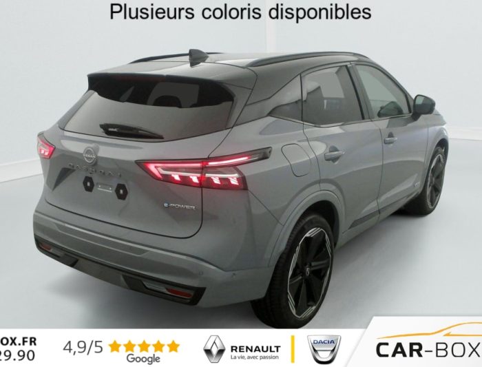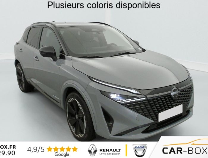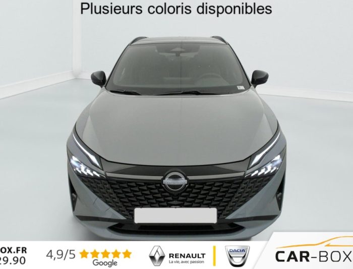 Hors frais de dossiere-Power 190 ch N-Design, hybride, blanc, 07/10/2025, Pack Hiver – Sièges AV chauffants – Volant chauffant – Pare-brise chauffant : Sièges AV chauffants Volant chauffant Pare-brise chauffant : option incluse (valeur : 750 Eur TTC), Contrôle de traction électronique, Points d’ancrage pour sièges enfants ISOFIX à l’AR (x2), Accoudoir central AR avec porte-gobelets (2), Ciel de toit Noir, Accoudoir central AV, Pare-soleil côté conducteur et passager avec miroir de courtoisie éclairé, Banquette AR rabattable 60/40, Siège passager réglable en hauteur, Vitres AR teintées, Reconnaissance des panneaux de signalisation, Avertisseur de ceintures de sécurité, Détecteur de pluie avec essuie-glaces à déclenchement automatique, Commandes au volant: contrôle de l’ordinateur de bord, audio, téléphone, régulateur et limiteur de vitesse, Feux de route adaptatifs, Condamnation centralisée des portes, ProPILOT Park : technologie de stationnement automatique, Système d’alerte anticollision AR intelligent, Direction assistée, Système de détection de fatigue intelligent, Kit de réparation pneumatique, ESP (Contrôle électronique de trajectoire), Frein à main électrique avec aide au stationnement/démarrage et fonction Autohold, Radars de stationnement AR, Appel d’urgence, Sélection du mode de conduite (ECO, STANDARD et SPORT), Porte-gobelets (x2), Radio numérique DAB, Allumage intelligent des feux, Poignées de maintien pour passager AV et AR, Plancher de coffre modulable, Freinage d’urgence anticollision AR, Antenne aileron de requin, Toit panoramique en verre, Système d’alerte prédictif anticollision frontale, Freinage d’urgence intelligent avec détection piétons, cyclistes et intersections, Feux de route intelligents avec 12 fasceaux indépendants, Feux AV et AR LED, Feu stop central LED, Trappe de carburant sans bouchon, Eclairage du coffre (x2), Boîte à gants éclairée, Chargeur à induction pour Smartphone 15W, Double port USB AR (USB-A et USB-C), Ceintures de sécurité avec prétensionneurs, Feux de détresse à déclenchement automatique, Radars de stationnement AV, Jantes alliage 20" avec suspension AR multibras, Rétroviseurs extérieurs réglables électriquement, rabattables et dégivrants, Système de démarrage sans clé avec bouton START/STOP, Buses de ventilation AR, Ouverture des portières AR à 85°, Clignotants AV et AR LED, Technologie e-Pedal Step, Mode EV, Siège conducteur avec réglage lombaire électrique 2 voies, ABS (système antiblocage des freins), Système de surveillance des angles morts intelligent, Feux diurnes LED, Lève-vitres électriques avec mode impulsionnel à l’AV et à l’AR, Apple Car Play et Android Auto sans fil, EBD (répartiteur électronique de freinage), Airbags frontaux, latéraux AV, rideaux et central, Clignotants AV et AR à défilement, Combiné d’instrumentation digital 12, 3 », 6 crochets de fixation dans le coffre (4 au plancher, 2 sur les côtés), Double port USB AV et AR (USB-C), Eclairage d’ambiance personnalisable (11 points lumineux), Inserts de pare-chocs AV et AR Noir brillant, Liseuses LED à l’AV et à l’AR, NissanConnect Services – Services télématiques avec accès à distance depuis un smartphone Service de commandes à distance, Géolocalisation du véhicule, Historique de conduite et de navigation, Rapports sur l’état de santé du véhicule et alertes de dysfonctionnement, Rappel des pas d’entretien, Aide et assistance Nissan, Point d’accès Wi-Fi, Alertes intelligentes, Compatibilité Amazon Alexa, Prise 12V à l’AV (x1) et dans le coffre (x1), ProPILOT avec Navi-link : technologie de conduite assistée Aide au maintien dans la voie, Freinage anticipé dans les courbes via la navigation, Assistant de conduite en embouteillage, Ajustement aux limitations de vitesse (automatique ou sur commande), Alerte et prévention de sortie de voie, Rétroviseur intérieur électrochromatique sans contour, Sellerie mixte Alcantara / Cuir Noir, Repose-genoux en Alcantara, Système audio radio avec écran tactile 12, 3" et 6 HP, Régulateur de vitesse intelligent avec ajustement aux limitations de vitesse sur commande, Système d’ouverture et de démarrage sans clé "Intelligent key" avec fonction de verrouillage/ déverrouillage à l’approche du véhicule, Système de navigation NissanConnect avec services Google intégrés Google Maps, Google Assistant, Google Play Store, Live Traffic et cartes 3D, Navigation porte-à-porte, Recherche par Points d’Intérêt, Google Street View, Vue Satellite et Météo, Mise à jour des cartes et logiciels, Prix des carburants, Nissan AVM 3D – Vision Intelligente à 360° : système d’aide au stationnement qui facilite les manoeuvres de stationnement en vous offrant une vision à 360° : Caméra AR avec repères de gabarit, Caméra AV, Caméras latérales situées dans les rétroviseurs extérieurs, Radars 360°, Fonction »capot transparent », Mémorisation stationnement régulier et intersections, Contre-portes et console centrale en Alcantara, Peinture bi-ton : option incluse (valeur : 1 300 Eur TTC), Siège conducteur réglable en hauteur, Volant gainé cuir, Volant réglable en hauteur et en profondeur, Système de contrôle de la pression des pneus, Rétroviseurs extérieurs rabattables électriquement, NBAS (amplificateur de freinage d’urgence), Limiteur de vitesse, Climatisation automatique bi-zone, Cache-bagages amovible, Système mains libres Bluetooth