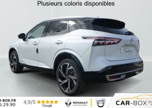 Hors frais de dossiere-Power 190 ch Tekna+, hybride, blanc, 01/08/2025, ABS (systeme antiblocage des freins), Accoudoir central AR avec porte-gobelets (2), Accoudoir central AV, Affichage tete haute avec projection sur le pare-brise 10, 8 », Aide au demarrage en cote, Airbags frontaux, lateraux AV, rideaux et central, Alarme perimetrique, Alerte et prevention de sortie de voie, Allumage intelligent des feux, Antenne aileron de requin, Appel d’urgence, Apple Car Play et Android Auto sans fil, Assistance au maintien de trajectoire, Avertisseur de ceintures de securite, Badges e-POWER, Banquette AR rabattable 60/40, Cache-bagages amovible, Chargeur a induction pour Smartphone 15W, Climatisation automatique bi-zones, Combine d’instrumentation digital 12, 3 », Commandes au volant: controle de l’ordinateur de bord, audio, telephone, Condamnation centralisee des portes, Detecteur de pluie avec essuie-glaces a declenchement automatique, Direction assistee, Double ports USB AV et AR (USB-C), EBD (repartiteur electronique de freinage), Eclairage d’ambiance personnalisable (11 points lumineux), Eclairage du coffre (x2), ESP (Controle electronique de trajectoire), Feux AV et AR LED, Feux de route adaptatifs, Feux diurnes LED, Frein a main electrique avec fonction autohold, Freinage d’urgence anticollision AR, Freinage d’urgence intelligent avec detection pietons, cyclistes et intersections, Hayon electrique avec ouverture mains libres, Jantes alliage 20 », Kit de reparation pneumatique, Leve-vitres electriques avec mode impulsionnel a l’AV et a l’AR, Limiteur de vitesse, Liseuses LED a l’AV et a l’AR, Mode de direction assistee, Mode EV, Nissan AVM 3D – Vision Intelligente a 360, Pack Hiver (Pare-brise chauffant, Sieges AV chauffants, Volant chauffant), Pares-soleil cote conducteur et passager avec miroirs de courtoisie eclaires, Park assist, Poignees de maintien AV et AR, Points d’ancrage pour sieges enfants ISOFIX a l’AR (x2), Porte-gobelets (x2), Prise 12V a l’AV (x1) et dans le coffre (x1), Radars de stationnement AR, Radars de stationnement AV, Radio numerique DAB, Rails de toit longitudinaux chromes, Reconnaissance des panneaux de signalisation, Regulateur de vitesse intelligent, Retroviseur interieur electrochromatique sans contour, Retroviseurs exterieurs reglables electriquement, rabattables et degivrants, Selection du mode de conduite (ECO, STANDARD et SPORT), Siege conducteur avec fonction memoire, Sieges AV avec fonction massage (3 modes), Sieges AV avec reglages electriques, Support lombaire reglable electriquement, Systeme audio Bose Premium avec 10 HP et un caisson de basses Acoustimass, Systeme de controle de la pression des pneus, Systeme de demarrage sans cle avec bouton START/STOP, Systeme de detection de fatigue intelligent, Systeme de navigation NissanConnect avec services Google integres, Systeme de surveillance des angles morts intelligent, Systeme d’ouverture et de demarrage sans cle »Intelligent key », Systeme mains libres Bluetooth, Technologie e-Pedal Step, Toit panoramique en verre, Trappe de carburant sans bouchon, Vitres AR teintees, Volant gaine cuir, Volant reglable en hauteur et en profondeur