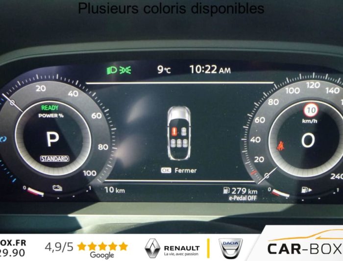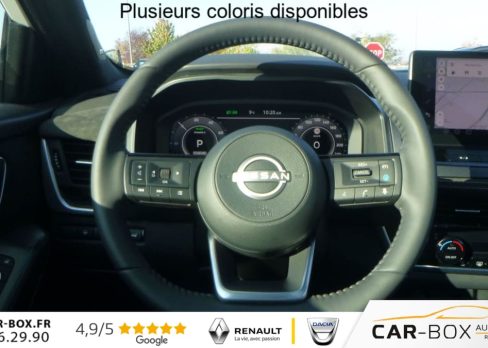 ABS (systeme antiblocage des freins), Accoudoir central AR avec porte-gobelets (2), Accoudoir central AV, Affichage tete haute , Airbag passager desactivable, Airbags frontaux, Airbags lateraux, Alarme perimetrique, Alerte et prevention de sortie de voie, Allumage intelligent des feux, Antenne aileron de requin, Appel d'urgence, Apple CarPlay et Android Auto, Assistance au demarrage en cote, Avertisseur de ceintures de securite, Badges e-POWER, Banquette AR rabattable 60/40, Buses de ventilation AR, Cache-bagages amovible, Camera 360, Ceintures de securite avec pretensionneurs, Chargeur a induction pour Smartphone 15W, Ciel de toit Noir, Climatisation automatique bi-zones , Cockpit virtuel, Combine d'instrumentation digital 12,3'', Commandes au volant, Condamnation centralisee des portes, Controle de traction electronique, Detecteur de pluie avec essuie-glaces a declenchement automatique, Differentiel AR a glissement limite, Direction assistee, Double port USB AV et AR (USB-C), EBD (repartiteur electronique de freinage), Eclairage d'ambiance personnalisable , ESP (Controle electronique de trajectoire), Feux AV LED, Feux de route adaptatifs, Feux diurnes LED, Frein a main electrique avec fonction Autohold, Freinage d'urgence anticollision AR, Freinage d'urgence intelligent avec detection pietons, cyclistes et intersections, Hayon electrique avec ouverture mains libres, Jantes alliage 20'' , Kit de reparation pneumatique, Leve-vitres electriques avec mode impulsionnel a l'AV et a l'AR, Limiteur de vitesse, Liseuses LED a l'AV et a l'AR, Mode de direction assistee , Mode EV, Pack Hiver (Pare-brise chauffant, Sieges AV chauffants, Volant chauffant), Pare-soleil cote conducteur et passager avec miroir de courtoisie eclaire, Plancher de coffre modulable, Poignees de maintien AV et AR, Points d'ancrage pour sieges enfants ISOFIX a l'AR (x2), Porte-gobelets (x2), Prise 12V a l'AV (x1) et dans le coffre (x1), ProPILOT Park : technologie de stationnement automatique, Radars de stationnement AR, Radars de stationnement AV, Radio numerique DAB, Rails de toit longitudinaux chromes, Reconnaissance des panneaux de signalisation, Regulateur de vitesse adaptatif , Retroviseur interieur electrochromatique, Retroviseurs exterieurs avec fonction memoire et fonction marche AR, Retroviseurs exterieurs reglables electriquement, rabattables et degivrants, Selection du mode de conduite (ECO, STANDARD et SPORT), Siege conducteur avec fonction memoire, Siege conducteur avec reglages electrique, Siege passager avec reglage electrique, Sieges AV avec fonction massage , Sieges avant avec reglage lombaires electrique , Systeme audio Bose , Systeme d'alerte anticollision AR intelligent, Systeme de controle de la pression des pneus, Systeme de detection de fatigue intelligent, Systeme de navigation , Systeme de surveillance des angles morts intelligent, Systeme d'ouverture et de demarrage sans cle , Systeme mains libres Bluetooth, Technologie e-Pedal Step, Toit panoramique en verre, Trappe de carburant sans bouchon, Vitres AR teintees, Volant gaine cuir, Volant reglable en hauteur et en profondeur, 4 crochets de fixation dans le coffre