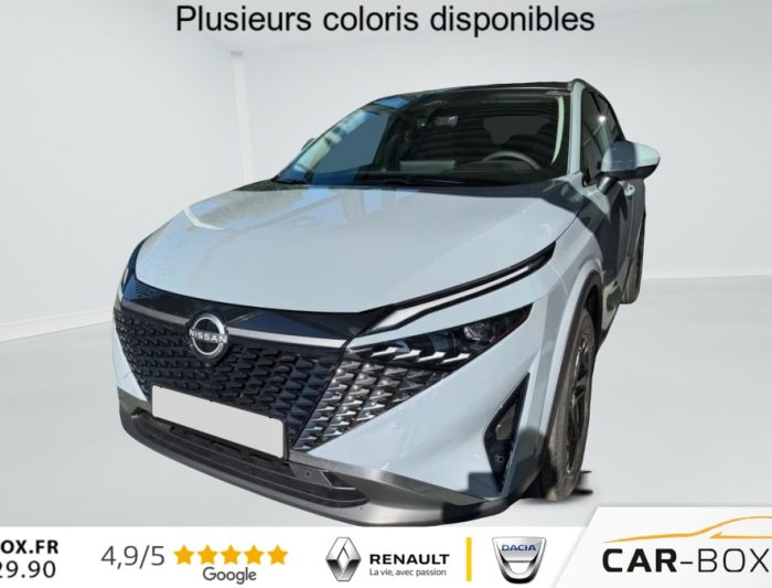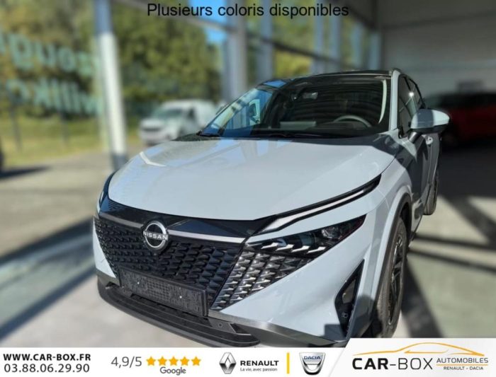 Hors frais de dossierMild Hybrid 158 ch Xtronic N-Connecta, hybride, blanc, 29/08/2025, Accoudoir arrière avec deux porte-gobelets, Antenne requin, Autohold – assistance au démarrage et à l’arrêt, Avertissement et assistance de changement de voie, Avertisseur d’angle mort et assistance, Avertisseur intelligent de collision frontale et prédiction, Avertisseur intelligent de trafic transversal arrière avec freinage d’urgence, Banquette arrière divisée 60:40, Barres de toit longitudinales argentées, Caméra de recul, Capteurs de stationnement arrière, Capteurs de stationnement avant, Chargeur sans fil pour smartphone, Clé intelligente avec système de déverrouillage des portes, Climatisation automatique bizone, Connectivité Apple CarPlay® /Android Auto, Contrôle automatique des feux de route, ECALL – système d’appel d’urgence, Essuie-glaces à détecteur de pluie, Feux antibrouillard arrière à LED, Feux avant, arrière, de jour et de freinage à LED, Feux de jour (activation automatique), Freinage d’urgence automatique avec fonction de reconnaissance des piétons et des cyclistes, Freinage d’urgence automatique en marche arrière, Mild hybrid : jantes en alliage de 46 cm (18 »), Mode de conduite – différents modes de conduite, Multimédia et navigation avec écran tactile couleur de 31 cm (12, 3 ») et service Google intégré, Ordinateur de bord avec écran couleur TFT de 31 cm (12, 3"), Port USB à l’avant (type A) et 2 prises 12V (à l’avant et dans le coffre), Port USB à l’avant (type C), ProPILOT Assist avec transmission automatique (avec systèmes : LKA maintien de la trajectoire, ICC régulateur de vitesse adaptatif et TJP démarrage et freinage automatiques dans les embouteillages), Radio avec 6 haut-parleurs et DAB, Rappel de bouclage des ceintures de sécurité avant et arrière, Régulateur de vitesse adaptatif, Rétroviseur avec fonction d’atténuation automatique, Rétroviseurs extérieurs rabattables électriquement et chauffants, Roue de secours (pour la version e-POWER : kit de réparation), Sellerie combinant tissu noir et cuir artificiel, Siège du conducteur réglable en hauteur, Siège passager réglable en hauteur, Sièges avant, volant et pare-brise chauffants, Sièges en tissu noir, Surveillance active du trafic transversal à l’arrière, Système d’alerte de trafic transversal aux intersections, Système de caméra AVM 360° pour le stationnement et la vue panoramique avec reconnaissance des objets en mouvement et des piétons autour du véhicule, Système de démarrage du moteur STOP/START, Système de détection de la fatigue du conducteur, Système de freinage antiblocage (ABS) + Répartition électronique de la force de freinage (EBD) + Assistance au freinage d’urgence avec signal d’arrêt d’urgence (NBAS), Système de reconnaissance automatique des panneaux de signalisation, Système multimédia avec écran tactile couleur de 31 cm (12, 3 »), Système VDC (Vehicle Dynamic Control) (en cas de freinage d’urgence), TPMS – Contrôleur de pression des pneus, Vitres avant et arrière à réglage électrique et impulsif, Vitres latérales arrière et verre du hayon teintés, Volant et levier de vitesse recouverts de cuir artificiel, Volant multifonction, 2 ancrages ISOFIX pour sièges enfants à l’arrière, 2 ports USB pour les sièges arrière (1 type A et 1 type C), 7 airbags et airbags rideaux, Pack Hiver – Sièges AV chauffants – Volant chauffant – Pare-brise chauffant Pare-brise chauffant Sièges AV chauffants Volant chauffant : option incluse (valeur : 500 Eur TTC)