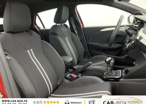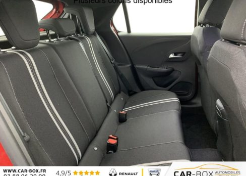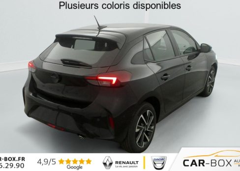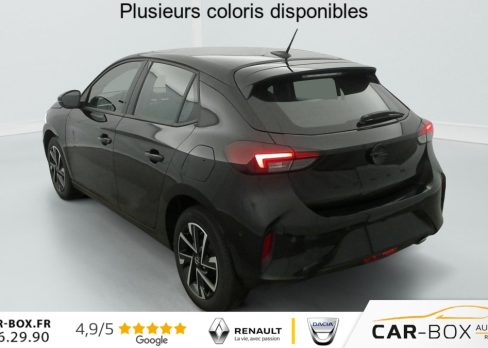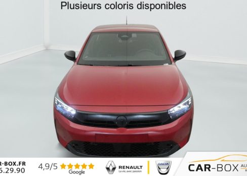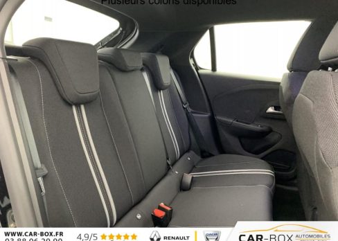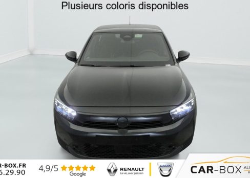 Jantes alliage 16", Prolongation garantie constructeur de 24 à 36 mois : option incluse (valeur : 550 Eur TTC), Spoiler AR, Ligne de vitrage noire, Fixations Isofix sièges enfants aux places AR latérales, Siège conducteur réglable dans 6 directions, Alerte de sous-gonflage des pneumatiques, Aide au stationnement AR, Poignées de portes intérieures chromées, Rétroviseurs extérieurs rabattables électriquement, Aide au stationnement AV, Alerte d'angle mort, Banquette AR rabattable 2/3-1/3, Direction assistée électrique, Console centrale avec porte-gobelets, accoudoir central et espace de rangement, Système de freinage avec antiblocage des roues (ABS), Calandre Opel Vizor, Pare-soleils avec miroir de courtoisie côté passager, Phares AR à LED, Module Opel Connect, Frein à main mécanique, Coquilles de rétroviseurs peintes en noir, Climatisation manuelle, Combiné d'instrumentation numérique 7", Allumage automatique des feux de croisement, Peintures métallisées : option incluse (valeur : 600 Eur TTC), Radio FM/AM/DAB+, Toit couleur carrosserie : option incluse (valeur : 0 Eur TTC), Airbags frontaux et latéraux conducteur et passager AV, rideaux, Ceintures de sécurité à préhension pyrotechnique, Détection de non-bouclage des ceintures de sécurité aux places AV, Pack Visibilité LED Allumage et commutation automatique des feux de route/croisement, Capteur de pluie, Rétroviseur intérieur électrochraomatique, Phares AV Eco Full LED, Feux diurnes Eco LED, Réglage manuel des feux : Rétroviseur intérieur électrochromatique Capteur de pluie Phares AV Eco Full LED Allumage et commutation automatique des feux de route/croisement Feux diurnes Eco-LED Réglage manuel des feux, Verrouillage centralisé avec télécommande et en roulant, 1 clé à télécommande et seconde clé rigide, Verrouillage automatique de la trappe à essence lors de la fermeture du véhicule, Fonction Bluetooth (appels et streaming audio), Signature lumineuse en forme d'aile à LED, Vitres AV et AR électriques - système anti-pincement, Grille inférieure en nid d'abeilles peinte - Noir, Sièges AV type sport, Sellerie Tissu Banda - Noir/Blanc, Pare-choc AR type sport, 1 prise USB type C à l'AV, Lettrage et logo - Noir, Apple CarPlay et Android Auto sans fil, Rétroviseurs extérieurs réglables électriquement, Ecran tactile 10" couleur compatible Apple CarPlay/Android Auto sans fil, Volant multifonction TEP Vegan, Décor intérieur Noir avec inserts blanc, Pack Confort Sièges AV chauffants, Volant chauffant avec méplat TEP Végan, Réglage du siège passager dans 6 directions, Seconde clé a télécommande : Sièges AV chauffants Seconde clé à télécommande Réglage du siège passager dans 6 directions Volant chauffant avec méplat TEP Vegan : option incluse (valeur : 300 Eur TTC), Pack Sécurité avancée Aide active au maintien au centre de la voie, Aide au démarrage en côte, Aide au freinage d'urgence, Alerte anti-somnolence, Limiteur de vitesse, Reconnaissance des panneaux de signalisation améliorée, Régulateur de vitesse, Système anti-collision à basse vitesse et détection des piétons : Aide au freinage d'urgence Aide au démarrage en côte Alerte anti-somnolence Reconnaissance des panneaux de signalisation améliorée Système anti-collision à basse vitesse et détection des piétons Régulateur de vitesse Limiteur de vitesse Aide active au maintien au centre de la voie, Caméra de recul analogique 130° panoramique, ABS, ESP, TCS, Boîte manuelle 6 rapports, Contrôle de pression des pneus, Volant réglable en hauteur et en profondeur, 4 HP, 5 appuis-tête réglables en hauteur, Ciel de pavillon noir