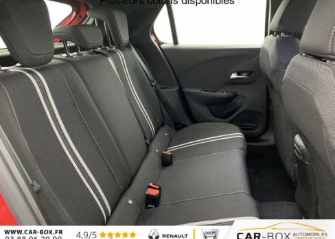 Jantes alliage 16", Prolongation garantie constructeur de 24 à 36 mois : option incluse (valeur : 550 Eur TTC), Spoiler AR, Ligne de vitrage noire, Fixations Isofix sièges enfants aux places AR latérales, Siège conducteur réglable dans 6 directions, Alerte de sous-gonflage des pneumatiques, Aide au stationnement AR, Poignées de portes intérieures chromées, Rétroviseurs extérieurs rabattables électriquement, Aide au stationnement AV, Alerte d'angle mort, Banquette AR rabattable 2/3-1/3, Direction assistée électrique, Console centrale avec porte-gobelets, accoudoir central et espace de rangement, Système de freinage avec antiblocage des roues (ABS), Calandre Opel Vizor, Pare-soleils avec miroir de courtoisie côté passager, Phares AR à LED, Module Opel Connect, Frein à main mécanique, Siège passager AV réglable dans 4 positions, Coquilles de rétroviseurs peintes en noir, Climatisation manuelle, Combiné d'instrumentation numérique 7", Allumage automatique des feux de croisement, Peintures métallisées : option incluse (valeur : 600 Eur TTC), Radio FM/AM/DAB+, Toit couleur carrosserie : option incluse (valeur : 0 Eur TTC), Airbags frontaux et latéraux conducteur et passager AV, rideaux, Ceintures de sécurité à préhension pyrotechnique, Détection de non-bouclage des ceintures de sécurité aux places AV, Pack Visibilité LED Allumage et commutation automatique des feux de route/croisement, Capteur de pluie, Rétroviseur intérieur électrochraomatique, Phares AV Eco Full LED, Feux diurnes Eco LED, Réglage manuel des feux : Rétroviseur intérieur électrochromatique Capteur de pluie Phares AV Eco Full LED Allumage et commutation automatique des feux de route/croisement Feux diurnes Eco-LED Réglage manuel des feux, Verrouillage centralisé avec télécommande et en roulant, 1 clé à télécommande et seconde clé rigide, Verrouillage automatique de la trappe à essence lors de la fermeture du véhicule, Fonction Bluetooth (appels et streaming audio), Signature lumineuse en forme d'aile à LED, Vitres AV et AR électriques - système anti-pincement, Grille inférieure en nid d'abeilles peinte - Noir, Sièges AV type sport, Sellerie Tissu Banda - Noir/Blanc, Pare-choc AR type sport, 1 prise USB type C à l'AV, Lettrage et logo - Noir, Apple CarPlay et Android Auto sans fil, Rétroviseurs extérieurs réglables électriquement, Ecran tactile 10" couleur compatible Apple CarPlay/Android Auto sans fil, Volant multifonction TEP Vegan, Décor intérieur Noir avec inserts blanc, Pack Sécurité avancée Aide active au maintien au centre de la voie, Aide au démarrage en côte, Aide au freinage d'urgence, Alerte anti-somnolence, Limiteur de vitesse, Reconnaissance des panneaux de signalisation améliorée, Régulateur de vitesse, Système anti-collision à basse vitesse et détection des piétons : Aide au freinage d'urgence Aide au démarrage en côte Alerte anti-somnolence Reconnaissance des panneaux de signalisation améliorée Système anti-collision à basse vitesse et détection des piétons Régulateur de vitesse Limiteur de vitesse Aide active au maintien au centre de la voie, Caméra de recul analogique 130° panoramique, ABS, ESP, TCS, Boîte manuelle 6 rapports, Contrôle de pression des pneus, Volant réglable en hauteur et en profondeur, 4 HP, 5 appuis-tête réglables en hauteur, Ciel de pavillon noir