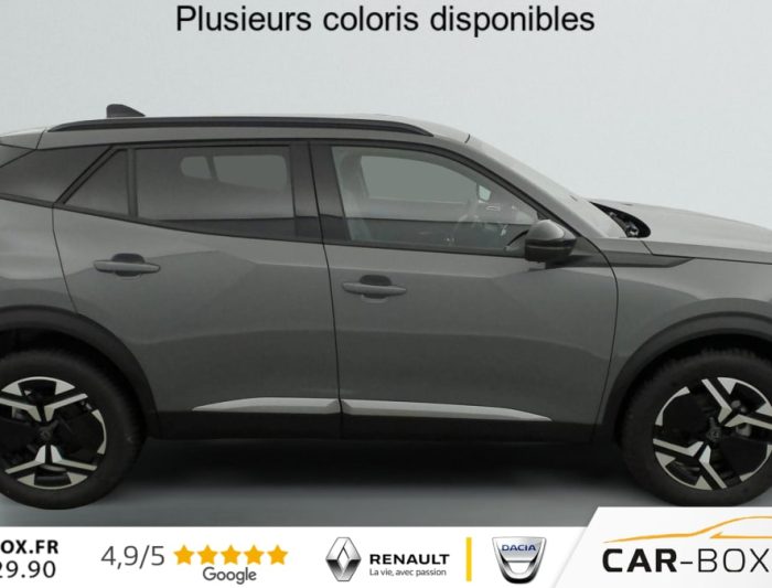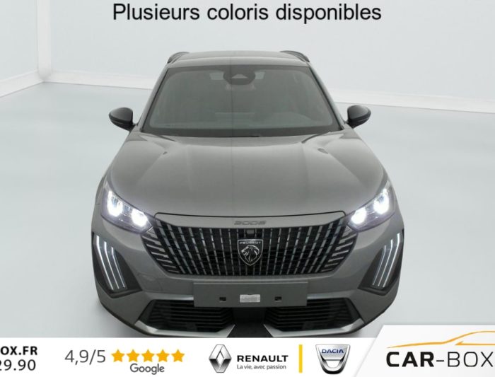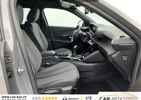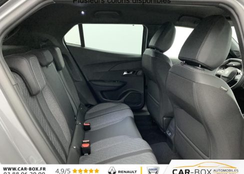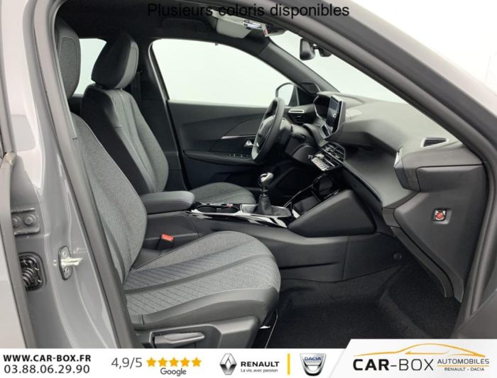Sièges AV chauffants : option incluse (valeur : 250 Eur TTC), ABS, Boîte manuelle, Habitacle et ciel de pavillon Noir, Télécommande 3 boutons + clé standard, Direction assistée, Canule d'échappement non chromée, Siège conducteur avec réglage manuel en hauteur, Siège passager AV avec réglage manuel en hauteur, Feux AR 3 griffes à LED, Banquette rabattable 1/3 - 2/3, 6 HPs (2 tweeters et 2 woofers à l'AV et 2 HPs à l'AR), Vitres latérales AR et lunette AR chauffante temporisée surteintées, Air conditionné automatique monozone, Rétroviseurs extérieurs dégivrants avec réglage et rabattement électriques, Appuis-tête réglables en hauteur AV (x2) et AR (x3), Teintes métallisées : option incluse (valeur : 700 Eur TTC), Peugeot Connect SOS , Sellerie tissu CASUAL LOMSA embossé, accompagnement TEP Isabella, trimatière LOMSA et surpiqûres Quartz, Jantes alliage 17" diamantées KARAKOY bi-tons Noir Onyx et vernis brillant, ESP Déconnectable avec aide au démarrage en pente et détection de sous gonflage indirecte, Volant compact en croûte de cuir avec commandes multimédia intégrées, Aide au stationnement AV/AR, graphique et sonore, Eléments de style éxterieur: Calandre haut de gamme Noir avec marquage vertical couleur caisse, larmes Dark Chrome, Décor de grille inférieure Gris Météor, Katana noir mat avec insert noir brillant, Eléments de style intérieure: Panneaux de portes AV avec décor Carbone et baguette Noir brillant avec tampographie Quartz, Accoudoirs de porte AV/AR tissu/TEP Isabella avec surpiqûre Quartz, Console haute avec accoudoir & frein de stationnement électrique 1 prise USB type C (Charge) et 1 prise USB type A (Charge) pour passagers AR, Sélecteur de mode de conduite Normal/Eco, Peugeot i-Cockpit avec combiné tête haute 10" numérique, Peugeot i-Connect: Radio DAB avec écran tactile couleur personnalisable 10" HD, Bluetooth - Mirror Screen sans fil (Apple CarPlay/Android Auto) - Wifi - 1 prise USB type C ( Data+charge), 1 prise USB type C (Charge) sur console AV, Projecteurs Peugeot LED Technology avec feux diurnes à LED 3 griffes, Fixations ISOFIX et Top Tether aux places latérales AR, 4 poignées de maintien rétractables (2 à l'AV et 2 à l'AR), Pack Visibilité : Allumage automatique des feux de croisement Eclairage extérieur d'accueil et d'accompagnement Essuie-vitre AV à déclenchement automatique, Pack Hiver - Advanced Grip Control : antipatinage optimisé à 3 modes d'adhérence (Neige, sable et boue) - Contrôle de vitesse à la descente (Hill Assist Descent Control) - Pneumatiques All Seasons 3PMSF : Pneumatiques All Seasons 3PMSF Contrôle de vitesse à la descente (Hill Assist Descent Control) Advanced Grip Control : Antipatinage optimisé à 3 modes d'adhérence (Neige, sable et boue) : option incluse (valeur : 300 Eur TTC), 6 Airbags (Frontaux auto-adaptatifs, latéraux AV et rideaux AV/AR), Pack Navigation & Access : Pack Navigation: - Peugeot i-Connect Advanced Navigation 3D connectée (cartographie Europe) avec écran tactile 10" HD - Reconnaissance vocale en langage naturel Pack Access: - Accès et démarrage mains libres Proximity - Plancher de coffre modulable 2 positions - Recharge smartphone sans fil (15 W) : option incluse (valeur : 800 Eur TTC), Pack Vision & Drive Assist : Pack Vision: - Visiopark 2, caméras AV et de recul HD avec restitution sur l'écran tactile d'une vue AV ou AR, et d'une vue de dessus de l'environnement du véhicule sur 360° - Aide au stationnement AV/AR, graphique et sonore - Rétroviseurs extérieurs avec éclairage d'accueil à LED et témoins de surveillance d'angles morts Pack Drive Assist: - Régulateur de vitesse adaptatif avec fonction 30 km/h : option incluse (valeur : 800 Eur TTC), Kit de dépannage de pneumatique : option incluse (valeur : 20 Eur TTC), Rétroviseur intérieur électrochrome, Contrôle de traction, Pack Safety Plus : - Régulateur / Limiteur de vitesse - Freinage automatique d'urgence avec alerte risque de collision, détection élargie (3 caméras haut de pare-brise) et protection des usagers de la route vulnérables (piétons, cyclistes, ...) - Alerte active de franchissement involontaire de ligne et bas-côté - Reconnaissance étendue des panneaux de signalisation et préconisation de vitesse - Alerte attention conducteur - Freinage d'urgence automatique de jour et de nuit (3 caméras & radar), Eclairage intérieur: Plafonnier AV A-DOME 3 LEDs (1 lampe, 2 liseuses), 2 liseuses AR A-DOME, Verrouillage centralisé, Lève-vitres AV/AR électriques et séquentiels avec antipincement, Pare-brise teinté acoustique