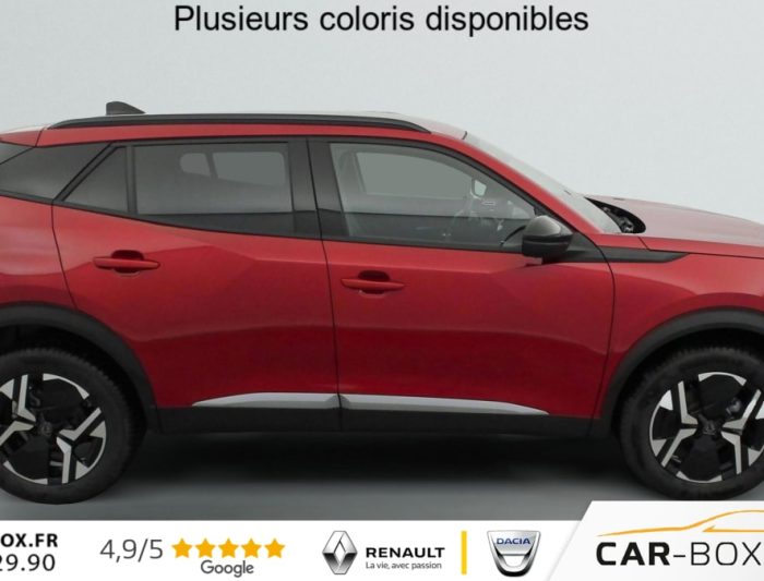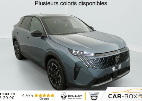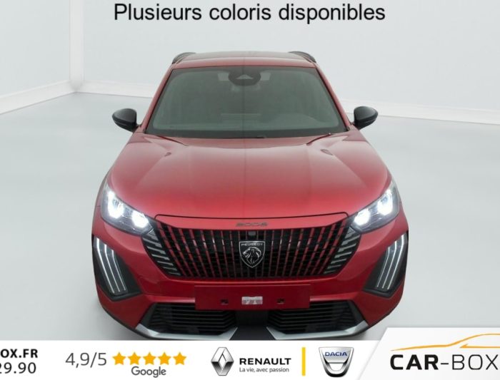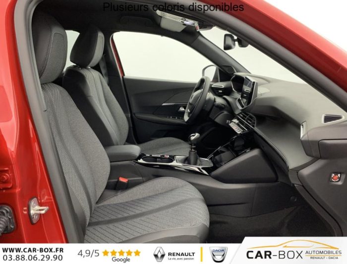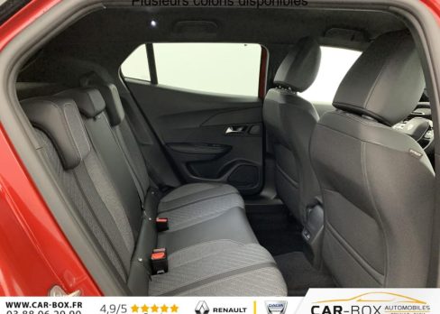Sièges AV chauffants : option incluse (valeur : 250 Eur TTC), ABS, Boîte manuelle, Habitacle et ciel de pavillon Noir, Télécommande 3 boutons + clé standard, Direction assistée, Canule d'échappement non chromée, Siège conducteur avec réglage manuel en hauteur, Siège passager AV avec réglage manuel en hauteur, Feux AR 3 griffes à LED, Banquette rabattable 1/3 - 2/3, 6 HPs (2 tweeters et 2 woofers à l'AV et 2 HPs à l'AR), Vitres latérales AR et lunette AR chauffante temporisée surteintées, Air conditionné automatique monozone, Rétroviseurs extérieurs dégivrants avec réglage et rabattement électriques, Appuis-tête réglables en hauteur AV (x2) et AR (x3), Teintes spéciales : option incluse (valeur : 900 Eur TTC), Peugeot Connect SOS , Sellerie tissu CASUAL LOMSA embossé, accompagnement TEP Isabella, trimatière LOMSA et surpiqûres Quartz, Jantes alliage 17" diamantées KARAKOY bi-tons Noir Onyx et vernis brillant, ESP Déconnectable avec aide au démarrage en pente et détection de sous gonflage indirecte, Volant compact en croûte de cuir avec commandes multimédia intégrées, Aide au stationnement AV/AR, graphique et sonore, Eléments de style éxterieur: Calandre haut de gamme Noir avec marquage vertical couleur caisse, larmes Dark Chrome, Décor de grille inférieure Gris Météor, Katana noir mat avec insert noir brillant, Eléments de style intérieure: Panneaux de portes AV avec décor Carbone et baguette Noir brillant avec tampographie Quartz, Accoudoirs de porte AV/AR tissu/TEP Isabella avec surpiqûre Quartz, Console haute avec accoudoir & frein de stationnement électrique 1 prise USB type C (Charge) et 1 prise USB type A (Charge) pour passagers AR, Sélecteur de mode de conduite Normal/Eco, Peugeot i-Cockpit avec combiné tête haute 10" numérique, Peugeot i-Connect: Radio DAB avec écran tactile couleur personnalisable 10" HD, Bluetooth - Mirror Screen sans fil (Apple CarPlay/Android Auto) - Wifi - 1 prise USB type C ( Data+charge), 1 prise USB type C (Charge) sur console AV, Projecteurs Peugeot LED Technology avec feux diurnes à LED 3 griffes, Fixations ISOFIX et Top Tether aux places latérales AR, 4 poignées de maintien rétractables (2 à l'AV et 2 à l'AR), Pack Visibilité : Allumage automatique des feux de croisement Eclairage extérieur d'accueil et d'accompagnement Essuie-vitre AV à déclenchement automatique, Pack Hiver - Advanced Grip Control : Pneumatiques All Seasons 3PMSF Contrôle de vitesse à la descente (Hill Assist Descent Control) Advanced Grip Control : Antipatinage optimisé à 3 modes d'adhérence (Neige, sable et boue) : option incluse (valeur : 300 Eur TTC), 6 Airbags (Frontaux auto-adaptatifs, latéraux AV et rideaux AV/AR), Pack Navigation & Access : Pack Navigation: - Peugeot i-Connect Advanced Navigation 3D connectée (cartographie Europe) avec écran tactile 10" HD - Reconnaissance vocale en langage naturel Pack Access: - Accès et démarrage mains libres Proximity - Plancher de coffre modulable 2 positions - Recharge smartphone sans fil (15 W) : option incluse (valeur : 800 Eur TTC), Pack Vision & Drive Assist : Pack Vision: - Visiopark 2, caméras AV et de recul HD avec restitution sur l'écran tactile d'une vue AV ou AR, et d'une vue de dessus de l'environnement du véhicule sur 360° - Aide au stationnement AV/AR, graphique et sonore - Rétroviseurs extérieurs avec éclairage d'accueil à LED et témoins de surveillance d'angles morts Pack Drive Assist: - Régulateur de vitesse adaptatif avec fonction 30 km/h : option incluse (valeur : 800 Eur TTC), Kit de dépannage de pneumatique : option incluse (valeur : 20 Eur TTC), Rétroviseur intérieur électrochrome, Contrôle de traction, Pack Safety Plus : - Régulateur / Limiteur de vitesse - Freinage automatique d'urgence avec alerte risque de collision, détection élargie (3 caméras haut de pare-brise) et protection des usagers de la route vulnérables (piétons, cyclistes, ...) - Alerte active de franchissement involontaire de ligne et bas-côté - Reconnaissance étendue des panneaux de signalisation et préconisation de vitesse - Alerte attention conducteur - Freinage d'urgence automatique de jour et de nuit (3 caméras & radar), Eclairage intérieur: Plafonnier AV A-DOME 3 LEDs (1 lampe, 2 liseuses), 2 liseuses AR A-DOME, Verrouillage centralisé, Lève-vitres AV/AR électriques et séquentiels avec antipincement, Pare-brise teinté acoustique