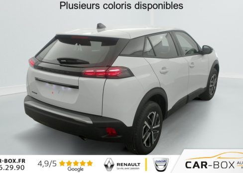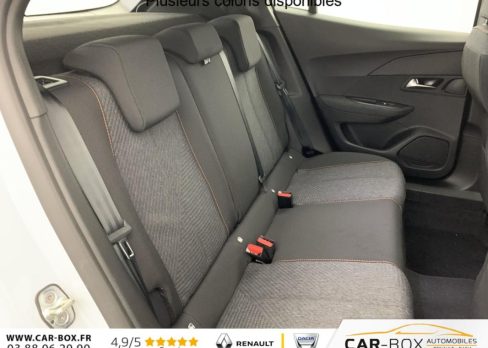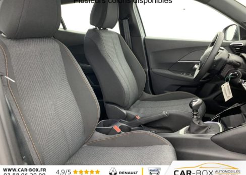 Habitacle et ciel de pavillon Noir, Teintes métallisées : option incluse (valeur : 0 Eur TTC), Canule d'échappement non chromée, Rétroviseur intérieur à réglage jour/nuit manuel, Siège conducteur avec réglage manuel en hauteur, Banquette rabattable 1/3 - 2/3, Air conditionné automatique monozone, Rétroviseurs extérieurs dégivrants avec réglage et rabattement électriques, Peugeot Connect SOS , Jantes tôle 16" avec enjoliveurs, ESP Déconnectable avec aide au démarrage en pente et détection de sous gonflage indirecte, Aide au stationnement AR, graphique et sonore, Volant compact en croûte de cuir avec commandes multimédia intégrées, Console basse avec frein de stationnement mécanique, Eclairage intérieur: Plafonnier AV A-DOME 3 ampoules (1 lampe, 2 liseuses), Eclairage de coffre à lampe, Touch screen 10" & Bluetooth Radio & Telephone: Radio DAB avec écran tactile couleur 10" SD, Bluetooth, Mirror Screen sans fil (Apple CarPlay / Android Auto), Ecran avec Toggles Switches , Peugeot i-Cockpit avec combiné tête haute analogique 3,5" TFT, Projecteurs Peugeot LED Technology avec feux diurnes à LED 3 griffes, Fixations ISOFIX et Top Tether aux places latérales AR, Pack Visibilité : Allumage automatique des feux de croisement Eclairage extérieur d'accueil et d'accompagnement Essuie-vitre AV à déclenchement automatique, 6 Airbags (Frontaux auto-adaptatifs, latéraux AV et rideaux AV/AR), Plancher de coffre standard, Kit de dépannage de pneumatique: compresseur 12V avec cartouche de produit de colmatage : option incluse (valeur : 20 Eur TTC), Sellerie tissu RENZO, accompagnement Rimini, surpiqûres Orange Sunrise, Pack Navigation & Visiopark 1: Visiopark 1: Caméra de recul HD, aide au stationnement AR graphique et sonore Pack Navigation - Peugeot i-Connect Advanced: Navigation 3D connectée (cartographie Europe) avec écran tactile 10" HD : option incluse (valeur : 800 Eur TTC), Contrôle de traction, Pack Safety : Alerte attention conducteur Régulateur / Limiteur de vitesse Reconnaissance étendue des panneaux de signalisation et préconisation de vitesse Alerte active de franchissement involontaire de ligne et bas côté Freinage automatique d'urgence avec alerte risque collision, détection élargie (3 caméras haut de pare-brise) et protection des usagers de la route vulnérables (piétons, cyclistes,...), Verrouillage centralisé, Lève-vitres AV/AR électriques