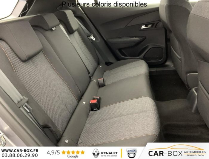 Véhicule livré sans Kit anti crevaison ni roue de secours, ABS, Boîte manuelle, Direction assistée, Canule d'échappement non chromée, Rétroviseur intérieur à réglage jour/nuit manuel, Siège conducteur avec réglage manuel en hauteur, Feux AR 3 griffes à LED, Air conditionné automatique monozone, Rétroviseurs extérieurs dégivrants avec réglage et rabattement électriques, Teintes métallisées : option incluse (valeur : 700 Eur TTC), Peugeot Connect SOS , Jantes tôle 16" avec enjoliveurs, ESP Déconnectable avec aide au démarrage en pente et détection de sous gonflage indirecte, Aide au stationnement AR, graphique et sonore, Volant compact en croûte de cuir avec commandes multimédia intégrées, Console basse avec frein de stationnement mécanique, Eclairage intérieur: Plafonnier AV A-DOME 3 ampoules (1 lampe, 2 liseuses), Eclairage de coffre à lampe, Touch screen 10" & Bluetooth Radio & Telephone: Radio DAB avec écran tactile couleur 10" SD, Bluetooth, Mirror Screen sans fil (Apple CarPlay / Android Auto) , Prédisposition pour roue de secours galette : option incluse (valeur : 20 Eur TTC), Peugeot i-Cockpit avec combiné tête haute analogique 3,5" TFT, Projecteurs Peugeot LED Technology avec feux diurnes à LED 3 griffes, Fixations ISOFIX et Top Tether aux places latérales AR, Pack Visibilité : Eclairage extérieur d'accueil et d'accompagnement Essuie-vitre AV à déclenchement automatique, 6 Airbags (Frontaux auto-adaptatifs, latéraux AV et rideaux AV/AR), Sellerie tissu RENZO, accompagnement Rimini, surpiqûres Orange Sunrise, Contrôle de traction, Pack Safety : Alerte attention conducteur Régulateur / Limiteur de vitesse Reconnaissance étendue des panneaux de signalisation et préconisation de vitesse Alerte active de franchissement involontaire de ligne et bas côté Freinage automatique d'urgence avec alerte risque collision, détection élargie (3 caméras haut de pare-brise) et protection des usagers de la route vulnérables (piétons, cyclistes,...), Verrouillage centralisé, Lève-vitres AV/AR électriques