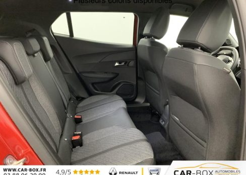 Sièges AV chauffants : option incluse (valeur : 250 Eur TTC), ABS, Habitacle et ciel de pavillon Noir, Télécommande 3 boutons + clé standard, Direction assistée, Siège conducteur avec réglage manuel en hauteur, Siège passager AV avec réglage manuel en hauteur, Feux AR 3 griffes à LED, Banquette rabattable 1/3 - 2/3, 6 HPs (2 tweeters et 2 woofers à l'AV et 2 HPs à l'AR), Vitres latérales AR et lunette AR chauffante temporisée surteintées, Air conditionné automatique monozone, Rétroviseurs extérieurs dégivrants avec réglage et rabattement électriques, Appuis-tête réglables en hauteur AV (x2) et AR (x3), Teintes spéciales : option incluse (valeur : 900 Eur TTC), Peugeot Connect SOS , Sellerie tissu CASUAL LOMSA embossé, accompagnement TEP Isabella, trimatière LOMSA et surpiqûres Quartz, Jantes alliage 17" diamantées KARAKOY bi-tons Noir Onyx et vernis brillant, ESP Déconnectable avec aide au démarrage en pente et détection de sous gonflage indirecte, Volant compact en croûte de cuir avec commandes multimédia intégrées, Console haute avec accoudoir & frein de stationnement électrique 1 prise USB type C (Charge) et 1 prise USB type A (Charge) pour passagers AR, Sélecteur de mode de conduite Normal/Eco/Sport, Aide au stationnement AV/AR, graphique et sonore, Eléments de style éxterieur: Calandre haut de gamme Noir avec marquage vertical couleur caisse, larmes Dark Chrome, Décor de grille inférieure Gris Météor, Katana noir mat avec insert noir brillant, Eléments de style intérieure: Panneaux de portes AV avec décor Carbone et baguette Noir brillant avec tampographie Quartz, Accoudoirs de porte AV/AR tissu/TEP Isabella avec surpiqûre Quartz, Peugeot i-Cockpit avec combiné tête haute 10" numérique, Peugeot i-Connect: Radio DAB avec écran tactile couleur personnalisable 10" HD, Bluetooth - Mirror Screen sans fil (Apple CarPlay/Android Auto) - Wifi - 1 prise USB type C ( Data+charge), 1 prise USB type C (Charge) sur console AV, Projecteurs Peugeot LED Technology avec feux diurnes à LED 3 griffes, Fixations ISOFIX et Top Tether aux places latérales AR, 4 poignées de maintien rétractables (2 à l'AV et 2 à l'AR), Pack Visibilité - Allumage automatique des feux de croisement - Essuie vitre AV à déclenchement automatique - Eclairage extérieur d'accueil et d'accompagnement , Pack Hiver : Pneumatiques All Seasons 3PMSF Contrôle de vitesse à la descente (Hill Assist Descent Control) Advanced Grip Control : Antipatinage optimisé à 3 modes d'adhérence (Neige, sable et boue) : option incluse (valeur : 300 Eur TTC), 6 Airbags (Frontaux auto-adaptatifs, latéraux AV et rideaux AV/AR), Pack Navigation & Access : Pack Navigation: - Peugeot i-Connect Advanced Navigation 3D connectée (cartographie Europe) avec écran tactile 10" HD - Reconnaissance vocale en langage naturel Pack Access: - Accès et démarrage mains libres Proximity - Plancher de coffre modulable 2 positions - Recharge smartphone sans fil (15 W) : option incluse (valeur : 800 Eur TTC), Pack Vision & Drive Assist Plus Pack Vision: - Visiopark 2, caméras AV et de recul HD avec restitution sur l'écran tactile d'une vue AV ou AR, et d'une vue de dessus de l'environnement du véhicule sur 360° - Aide au stationnement AV/AR, graphique et sonore - Rétroviseurs extérieurs avec éclairage d'accueil à LED et témoins de surveillance d'angles morts Pack Drive Assist Plus: - Conduite semi-autonome (niveau 2) - Régulateur de vitesse adaptatif avec fonction Stop & Go - Aide au maintien de la position dans la voie : option incluse (valeur : 800 Eur TTC), Kit de dépannage de pneumatique : option incluse (valeur : 20 Eur TTC), Rétroviseur intérieur électrochrome, Contrôle de traction, Boîte de vitesse automatique, séquentielle (6 rapports), Pack Safety Plus : - Régulateur / Limiteur de vitesse - Freinage automatique d'urgence avec alerte risque de collision, détection élargie (3 caméras haut de pare-brise) et protection des usagers de la route vulnérables (piétons, cyclistes, ...) - Alerte active de franchissement involontaire de ligne et bas-côté - Reconnaissance étendue des panneaux de signalisation et préconisation de vitesse - Alerte attention conducteur - Freinage d'urgence automatique de jour et de nuit (3 caméras & radar), Eclairage intérieur: Plafonnier AV A-DOME 3 LEDs (1 lampe, 2 liseuses), 2 liseuses AR A-DOME, Verrouillage centralisé, Lève-vitres AV/AR électriques et séquentiels avec antipincement, Canule d'echappement double chromée, Pare-brise teinté acoustique