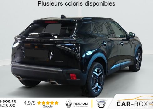 Accès et démarrage mains libres Proximity, Air conditionné automatique monozone, Appuis-tête réglables en hauteur AV (X2) et AR (X3), Banquette rabattable 1/3 - 2/3, Barres de toit longitudinales Noir Brillant, Canule d'echappement double chromée, Commutation automatique des feux de route / feux de croisement, Console haute avec accoudoir & frein de stationnement électrique, Eclairage intérieur, Eclairage intérieur, Eclairage polyambient 8 couleurs, Eléments de style éxterieur, Eléments de style intérieure, ESP Déconnectable avec aide au démarrage en pente et détection de sous gonflage indirecte, Feux AR 3 griffes à LED, Fixations ISOFIX aux 2 places latérales AR (Top Tether), Habitacle et ciel de pavillon Noir, Jantes alliage 17'' diamantées KARAKOY bi-tons Noir Onyx et vernis brillant, Lève-vitres électriques AV et AR et séquentiels avec anti-pincement, Malus CO2 : 100€, Pack Safety Plus, Pack Visibilité, Pack Vision & Navigation & Drive Assist Plus : option incluse (valeur : 1 000 Eur TTC), Pare-brise teinté acoustique sérigraphié bi-couches, Pédalier Sport aluminium, PEUGEOT Connect SOS & Assistance et Teleservices, Peugeot i-Cockpit 3D avec combiné tête haute numérique 10'', Peugeot i-Connect, Plancher de coffre modulable 2 positions, Projecteurs Peugeot upper Full LED Technology avec feux diurnes à LED 3 griffes, Rétroviseur intérieur électrochrome, Rétroviseurs extérieurs dégivrants avec réglage et rabattement électriques, Sellerie tissu BELOMKA, accompagnement TEP Isabella, trimatière Uni Capy et surpiqûres Vert Adamite, Siège conducteur avec réglage manuel en hauteur, Siège passager AV avec réglage manuel en hauteur, Teintes métallisées : option incluse (valeur : 700 Eur TTC), Télécommande 3 boutons + clé standard, Toit Black Diamond, Visiopark 1: caméra de recul HD & aide au stationnement AV et AR, graphique et sonore, Vitres latérales AR et lunette AR chauffante temporisée surteintées, Volant compact cuir fleur avec commandes multimédia intégrées, 4 poignées de maintien (2 à l'AV et 2 à l'AR), 6 airbags (Frontaux adaptatifs, latéraux AV, rideaux AV et AR), 6 HPs (2 tweeters et 2 woofers à l'AV et 2 HPs à l'AR)