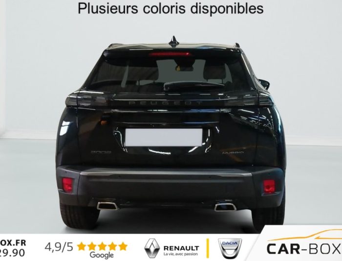 Accès et démarrage mains libres Proximity, Air conditionné automatique monozone, Appuis-tête réglables en hauteur AV (X2) et AR (X3), Banquette rabattable 1/3 - 2/3, Barres de toit longitudinales Noir Brillant, Canule d'echappement double chromée, Commutation automatique des feux de route / feux de croisement, Console haute avec accoudoir & frein de stationnement électrique, Eclairage intérieur, Eclairage intérieur, Eclairage polyambient 8 couleurs, Eléments de style éxterieur, Eléments de style intérieure, ESP Déconnectable avec aide au démarrage en pente et détection de sous gonflage indirecte, Feux AR 3 griffes à LED, Fixations ISOFIX aux 2 places latérales AR (Top Tether), Habitacle et ciel de pavillon Noir, Jantes alliage 17'' diamantées KARAKOY bi-tons Noir Onyx et vernis brillant, Lève-vitres électriques AV et AR et séquentiels avec anti-pincement, Malus CO2 : 100€, Pack Safety Plus, Pack Visibilité, Pack Vision & Navigation & Drive Assist Plus : option incluse (valeur : 1 000 Eur TTC), Pare-brise teinté acoustique sérigraphié bi-couches, Pédalier Sport aluminium, PEUGEOT Connect SOS & Assistance et Teleservices, Peugeot i-Cockpit 3D avec combiné tête haute numérique 10'', Peugeot i-Connect, Plancher de coffre modulable 2 positions, Projecteurs Peugeot upper Full LED Technology avec feux diurnes à LED 3 griffes, Rétroviseur intérieur électrochrome, Rétroviseurs extérieurs dégivrants avec réglage et rabattement électriques, Sellerie tissu BELOMKA, accompagnement TEP Isabella, trimatière Uni Capy et surpiqûres Vert Adamite, Siège conducteur avec réglage manuel en hauteur, Siège passager AV avec réglage manuel en hauteur, Teintes métallisées : option incluse (valeur : 700 Eur TTC), Télécommande 3 boutons + clé standard, Toit Black Diamond, Visiopark 1: caméra de recul HD & aide au stationnement AV et AR, graphique et sonore, Vitres latérales AR et lunette AR chauffante temporisée surteintées, Volant compact cuir fleur avec commandes multimédia intégrées, 4 poignées de maintien (2 à l'AV et 2 à l'AR), 6 airbags (Frontaux adaptatifs, latéraux AV, rideaux AV et AR), 6 HPs (2 tweeters et 2 woofers à l'AV et 2 HPs à l'AR)