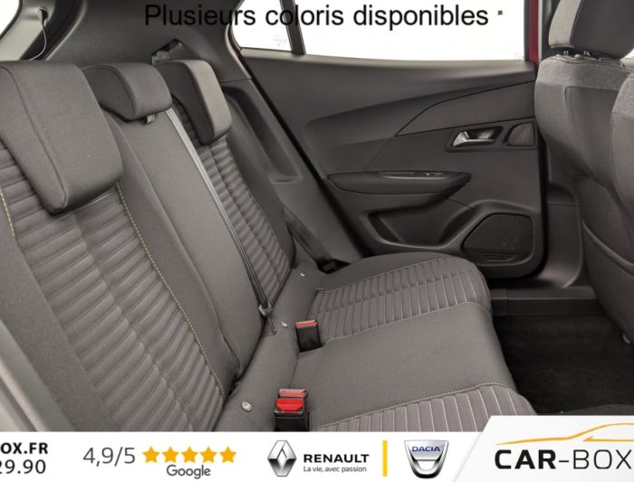 Véhicule livré sans Kit anti crevaison ni roue de secours, Canule d'échappement non chromée, Rétroviseur intérieur à réglage jour/nuit manuel, Siège conducteur avec réglage manuel en hauteur, Feux AR 3 griffes à LED, Air conditionné automatique monozone, Rétroviseurs extérieurs dégivrants avec réglage et rabattement électriques, Lève-vitres électriques AV/ AR , Fixations ISOFIX aux 2 places latérales AR (Top Tether), 6 airbags (Frontaux adaptatifs, latéraux AV, rideaux AV/AR), Teintes spéciales : option incluse (valeur : 900 Eur TTC), Peugeot Connect SOS, Sellerie tissu PNEUMA embossé 3D, tri matières Leorki chiné et surpiqûres Vert Calcite, Jantes tôle 16" avec enjoliveurs , ESP Déconnectable avec aide au démarrage en pente et détection de sous gonflage indirecte, Aide au stationnement AR, graphique et sonore, Volant compact en croûte de cuir avec commandes multimédia intégrées, Console basse avec frein de stationnement mécanique, Eclairage intérieur: Plafonnier AV A-DOME 3 ampoules (1 lampe, 2 liseuses), Eclairage de coffre à lampe, Touch screen 10" & Bluetooth Radio & Telephone: Radio DAB avec écran tactile couleur 10" SD, Bluetooth, Mirror Screen sans fil (Apple CarPlay / Android Auto), Prédisposition pour roue de secours galette : option incluse (valeur : 20 Eur TTC), Peugeot i-Cockpit avec combiné tête haute analogique 3,5" TFT, Projecteurs Peugeot LED Technology avec feux diurnes à LED 3 griffes, Pack Visibilité : Allumage automatique des feux de croisement Eclairage extérieur d'accueil et d'accompagnement Essuie-vitre AV à déclenchement automatique, Pack Safety: Alerte attention conducteur Régulateur / Limiteur de vitesse Reconnaissance étendue des panneaux de signalisation et préconisation de vitesse Alerte active de franchissement involontaire de ligne et bas côté Freinage d'urgence automatique avec alerte risque de collision