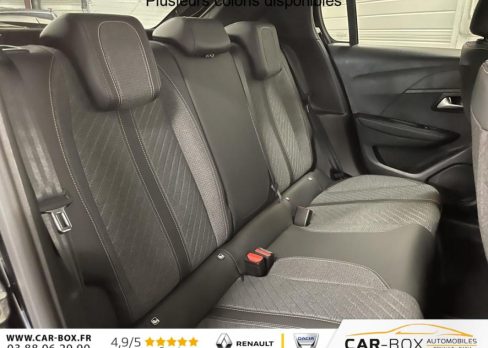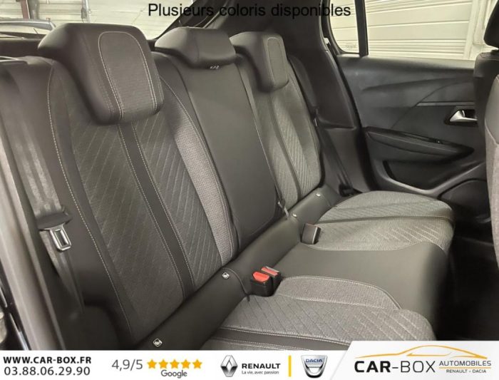 Hybrid 100 e-DCS6 Allure, essence, noir, 30/04/2025, Accoudoirs sur portes AV et AR en TEP avec surpiqure Quartz, Aide graphique et sonore au stationnement AV et AR, Air conditionne automatique mono-zone, Airbags frontaux et lateraux conducteur et passager AV, rideaux, Allumage automatique des feux de croisement, Antenne requin, Appuis-tete reglables en hauteur AV (x2) et AR (x3), Bandeau entre feux AR noir brillant, Banquette AR rabattable 1/3-2/3, Becquet rapporte Noir Brillant, Calandre haute de gamme noir grainee avec marquage couleur caisse, Ceinture de securite AR centrale 3 points, avec detection de non bouclage, Ceintures de securite AR laterales avec enrouleurs pyrotechniques, limiteurs d’effort et, Ceintures de securite AV conducteur et passager a enrouleurs pyrotechniques avec limiteurs d’effort, Commande d’ouverture des portes couleur caisse, Console haute avec accoudoir & frein de stationnement electrique, Coques de retroviseurs exterieurs Noir Brillant, Detection de sous-gonflage indirecte, Direction assistee electrique, Eclairage coffre a lampe, Eclairage interieur, Eclairage interieur a ampoules : plafonnier AV a 3 spots (1 lampe et 2 liseuses), Enjoliveur bas de calandre Noir Brillant, Enjoliveur DRL Noir Brillant, Enjoliveur entre feux AR noir brillant, Enjoliveur superieur de calandre Noir Brillant, ESP Deconnectable avec aide au demarrage en pente, Essuie-vitre AV a declenchement automatique, Essuyage automatique, Feux AR signature 3 griffes, stop a LEDs, recul et indicateur de direction a lampe, Fixations ISOFIX et Top Tether aux places laterales AR, Fonction Bluetooth, Fonction DAB (Radio Numerique Terrestre), Fonction "Mirror Screen" (Apple CarPlay / Android Auto ), Habitacle et ciel de pavillon clair, Jantes alliage 16" diamantees NOMA bi–ton vernis brillant et Noir Orbital, Jupes AR inferieure noir graine, Jupes AR superieure Noir brillant, Lecheurs de vitres Noir Mat, Leve-vitres AR electriques et sequentiels avec antipincement, Leve-vitres AV electriques et sequentiels avec antipincement, Pack Safety, Pack Visibilite, Panneaux de porte AV, Pare-brise teinte, PEUGEOT Connect SOS & Assistance et Teleservices, Peugeot i-Cockpit avec combine tete haute 10 » numerique, Peugeot i-Connect, Planche de bord Slush avec Decor Carbone TPE et baguette Noir brillante avec jonc Chrome, Planche de bord slush et panneaux de portes AV avec decors aspect carbone, Predisposition roue de secours galette : option incluse (valeur : 20 Eur TTC), Prise 12V et rangement pour smartphone en facade centrale, Programme de Stabilite Electronique (ESC) avec ASR, ABS, REF, AFU, CDS et TSM, Projecteurs "Peugeot LED Technology" avec feux diurnes a LED 3 griffes, Regulateur / Limiteur de vitesse, Retroviseur interieur electrochrome, Retroviseurs exterieurs degivrants avec reglage et rabattement electriques, Sellerie tissu CASUAL LOMSA embosse, accompagnement TEP Isabella, tri matiere LOMSA, Siege conducteur avec reglage manuel en hauteur, Systeme Start & Stop, Teinte metallisee Noir Perla Nera : option incluse (valeur : 550 Eur TTC), Verrouillage automatique de tous les ouvrants en roulant, Vitres laterales AR et lunette AR chauffante temporisee surteintees, Volant compact croute de cuir, Lion chrome et commandes multimedia sur volant, Volant reglable en hauteur et en profondeur, 3 poignees de maintien retractables (1passager a l’AV et 2 a l’AR), 6 Airbags – Frontaux auto-adaptatifs, lateraux AV et rideaux AV et AR, 6 HP (2 tweeters et 2 woofers a l’AV et 2 larges bandes a l’AR)