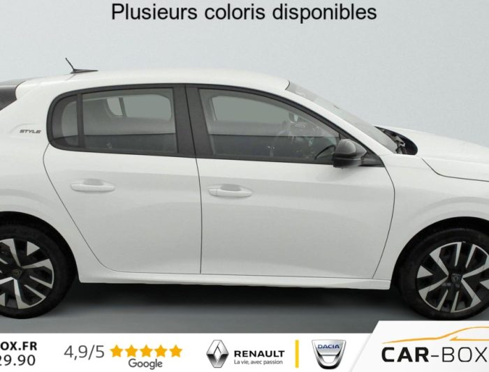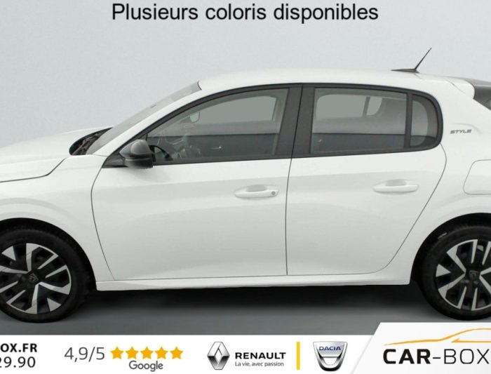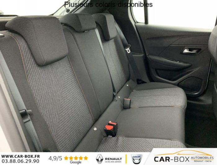 Véhicule livré sans Kit anti crevaison ni roue de secours, Détection de sous-gonflage indirecte, Banquette AR rabattable 1/3-2/3, Verrouillage automatique de tous les ouvrants en roulant, Lève-vitres AR électriques et séquentiels avec antipincement, Ceintures de sécurité AV conducteur et passager à enrouleurs pyrotechniques avec limiteurs d'effort et détection de non bouclage, Ceinture de sécurité AR centrale 3 points, avec détection de non bouclage, Ceintures de sécurité AR latérales avec enrouleurs pyrotechniques, limiteurs d'effort et détection de non bouclage, Programme de Stabilité Electronique (ESC) avec ASR, ABS, REF, AFU, CDS et TSM, Coques de rétroviseurs extérieurs Noir Brillant, Peugeot i-Cockpit avec combiné tête haute analogique et matrice couleur 3,5", Rétroviseur intérieur à réglage jour/nuit manuel, Siège conducteur avec réglage manuel en hauteur, 6 HP (2 tweeters et 2 woofers à l'AV et 2 larges bandes à l'AR), Eclairage coffre à lampe, Télécommande 3 boutons + clé standard, Vitres latérales AR et lunette AR chauffante temporisée teintées, Pare-brise teinté, Rétroviseurs extérieurs dégivrants à réglage électrique et rabattement manuel, Teintes opaques : option incluse (valeur : 300 Eur TTC), Peugeot Connect SOS & Assistance et Teleservices SOS & Assistance : Appel d'urgence automatique ou manuel par push SOS, et mise en relation directe avec la plateforme d'assistance PEUGEOT (24h/24 7j/7) , Teleservices : Détection du besoin d'une intervention technique ou d'une opération d'entretien périodique et transmission au réseau PEUGEOT pour prise de rendez vous, Aide au stationnement AR, graphique et sonore, Volant compact croute de cuir avec commandes multimédia intégrées, Console basse avec frein de stationnement mécanique, Touch screen 10" & Bluetooth Radio & Telephone: Radio DAB avec écran tactile couleur 10" SD, Bluetooth, Mirror Screen sans fil (Apple CarPlay / Android Auto), Ecran avec Toggles Switches, 1 prise USB type C ( Data+charge ) sur console AV, Projecteurs Peugeot LED Technology avec feux diurnes à LED 3 griffes, Prédisposition roue de secours galette : option incluse (valeur : 20 Eur TTC), Jantes tôle 16" avec enjoliveurs MONTI Gris Eclat avec vernis brillant & noir grainé, Appuis-tête réglables en hauteur AV (x2) et AR (x3), Fixations ISOFIX et Top Tether aux places latérales AR, Habitacle et ciel de pavillon clair, Jupes AR inférieure noir grainé, Jupes AR supérieure noir grainé, ESP Déconnectable avec aide au démarrage en pente, 3 poignées de maintien rétractables (1passager à l'AV et 2 à l'AR), Feux AR signature 3 griffes, stop à LEDs, recul et indicateur de direction à lampe, Prise 12V et rangement pour smartphone en façade centrale, Calandre Noir grainée avec marquage noir brillant polymirroir, Enjoliveur DRL Noir grainé, Enjoliveur bas de calandre noir grainé, Enjoliveur supérieur de calandre Noir grainé, Commande d'ouverture des portes couleur caisse, Lécheurs de vitres Noir Mat, Enjoliveur entre feux AR noir brillant, Becquet rapporté Noir Brillant, Planche de bord Injecté avec Décor Carbone injecté et baguette Noir brillante avec jonc chromé, 6 Airbags (Frontaux auto-adaptatifs, latéraux AV et rideaux AV/AR), Pack Safety Régulateur / Limiteur de vitesse, Freinage d'urgence automatique avec alerte risque de collision, Alerte active de franchissement involontaire de ligne et bas côté, Reconnaissance étendue des panneaux de signalisation et préconisation de vitesse, Alerte attention conducteur : Alerte attention conducteur Régulateur / Limiteur de vitesse Reconnaissance étendue des panneaux de signalisation et préconisation de vitesse Alerte active de franchissement involontaire de ligne et bas côté Freinage d'urgence automatique avec alerte risque de collision, Pack Visibilité Allumage automatique des feux de croisement : Allumage automatique des feux de croisement, Eclairage intérieur Plafonnier AV A-DOME 3 ampoules (1 lampe, 2 liseuses AV), Air conditionné monozone, Sellerie tissu RENZO, accompagnement Rimini, surpiqûres Orange Sunrise, Badge STYLE sur custode, Panneaux de porte AV avec médaillon décor Carbone injecté et baguette noire brillante et tampographie noir mat, Panneaux de portes AR injectés grain Karsten sans baguette, Accoudoirs de porte AV et AR textile Baladin gris chiné et surpiqûres Orange Sunrise, Volant réglable en hauteur et en profondeur, Direction assistée électrique, Lève-vitres AV électriques et séquentiels avec antipincement