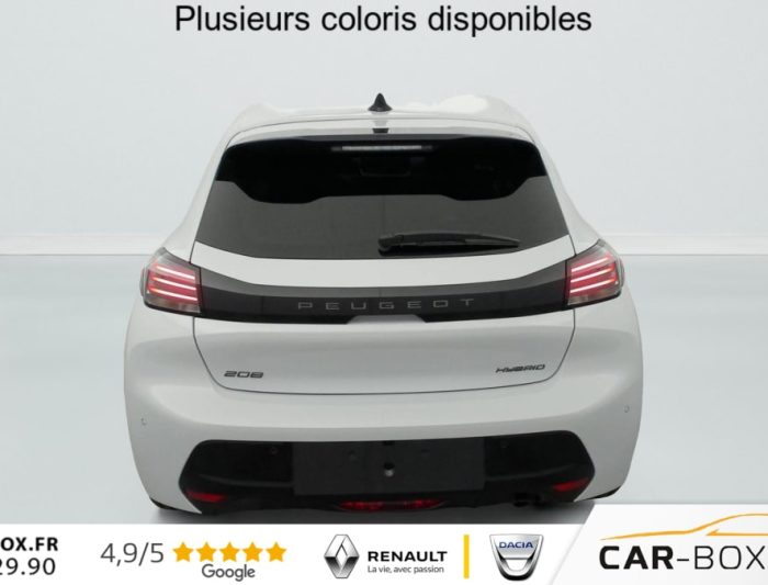 Hors frais de dossierHybrid 110 e-DCS6 Allure, hybride, noir, 23/10/2025, Sièges AV chauffants : option incluse (valeur : 250 Eur TTC), Aide graphique et sonore au stationnement AV et AR, Détection de sous-gonflage indirecte, Banquette AR rabattable 1/3-2/3, Verrouillage automatique de tous les ouvrants en roulant, Essuie-vitre AV à déclenchement automatique, Lève-vitres AR électriques et séquentiels avec antipincement, Teintes métallisées : option incluse (valeur : 700 Eur TTC), Ceintures de sécurité AV conducteur et passager à enrouleurs pyrotechniques avec limiteurs d’effort et détection de non bouclage, Ceinture de sécurité AR centrale 3 points, avec détection de non bouclage, Ceintures de sécurité AR latérales avec enrouleurs pyrotechniques, limiteurs d’effort et détection de non bouclage, Programme de Stabilité Electronique (ESC) avec ASR, ABS, REF, AFU, CDS et TSM, Coques de rétroviseurs extérieurs Noir Brillant, Eclairage coffre à lampe, Télécommande 3 boutons + clé standard, 6 HPs (2 tweeters et 2 woofers à l’AV et 2 HPs à l’AR), Vitres latérales AR et lunette AR chauffante temporisée surteintées, Air conditionné automatique mono-zone, Pare-brise teinté, Rétroviseurs extérieurs dégivrants avec réglage et rabattement électriques, Peugeot Connect SOS, Sellerie tissu CASUAL LOMSA embossé, accompagnement TEP Isabella, trimatière LOMSA et surpiqûres Quartz, Volant compact en croûte de cuir avec commandes multimédia intégrées, Console haute avec accoudoir & frein de stationnement électrique 1 prise USB type C (Charge) et 1 prise USB type A (Charge) pour passagers AR, Sélecteur de mode de conduite Normal/Eco/Sport, Peugeot i-Cockpit avec combiné tête haute 10" numérique, Projecteurs Peugeot LED Technology avec feux diurnes à LED 3 griffes, Jantes alliage 16" diamantées NOMA bi–ton vernis brillant et Noir Orbital, Appuis-tête réglables en hauteur AV (x2) et AR (x3), Fixations ISOFIX et Top Tether aux places latérales AR, Habitacle et ciel de pavillon clair, ESP Déconnectable avec aide au démarrage en pente, 3 poignées de maintien rétractables (1passager à l’AV et 2 à l’AR), Feux AR signature 3 griffes, stop à LEDs, recul et indicateur de direction à lampe, Antenne requin, Accoudoirs sur portes AV et AR en TEP avec surpiqûre Quartz, Calandre haute de gamme noir grainée avec marquage couleur caisse, Commande d’ouverture des portes couleur caisse, Becquet rapporté Noir Brillant, 6 Airbags (Frontaux auto-adaptatifs, latéraux AV et rideaux AV/AR), Pack Visibilité : Allumage automatique des feux de croisement, Eclairage intérieur Plafonnier AV A-DOME 3 ampoules (1 lampe, 2 liseuses AV), Pack Vision & Navigation : Peugeot i Connect Advanced Navigation 3D connectée (cartographie Europe) avec écran tactile 10" HD Reconnaissance vocale en langage naturel Services de navigation connectée TomTom (TomTom Traffic, prix carburant, parkings, météo, recherche Locale) Peugeot Connect SOS Visiopark 2: Caméras AV et de recul HD avec restitution sur l’écran tactile d’une vue AV ou AR, et d’une vue de dessus de l’environnement AR du véhicule sur 360° Rétroviseurs extérieurs avec éclairage d’accueil à LED et témoins de surveillance d’angles morts : option incluse (valeur : 800 Eur TTC), Rétroviseur intérieur électrochrome, Boîte de vitesse automatique, séquentielle (6 rapports), Pack Safety : Alerte attention conducteur Régulateur / Limiteur de vitesse Reconnaissance étendue des panneaux de signalisation et préconisation de vitesse Alerte active de franchissement involontaire de ligne et bas côté Freinage d’urgence automatique avec alerte risque de collision Freinage automatique d’urgence avec détection élargie (3 caméras haut de pare-brise) et protection des usagers de la route vulnérables (piétons, cyclistes, …), Peugeot i-Connect: Radio DAB avec écran tactile couleur personnalisable 10" HD, Bluetooth – Mirror Screen sans fil (Apple CarPlay/Android Auto) – Wifi – 1 prise USB type C ( Data+charge), 1 prise USB type C (Charge) sur console AV – 1 prise USB type C (Charge) et 1 prise USB type A (Charge) pour passagers AR, Vitres AV électriques, Volant réglable en hauteur et en profondeur, Direction assistée électrique, Lève-vitres AV électriques et séquentiels avec antipincement