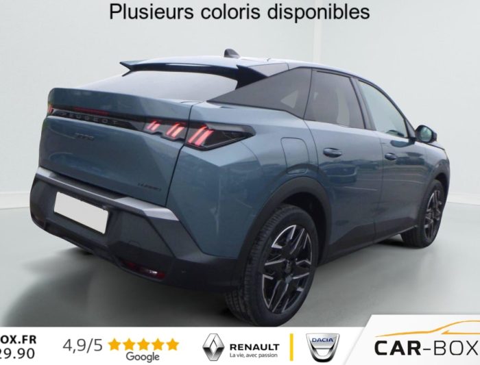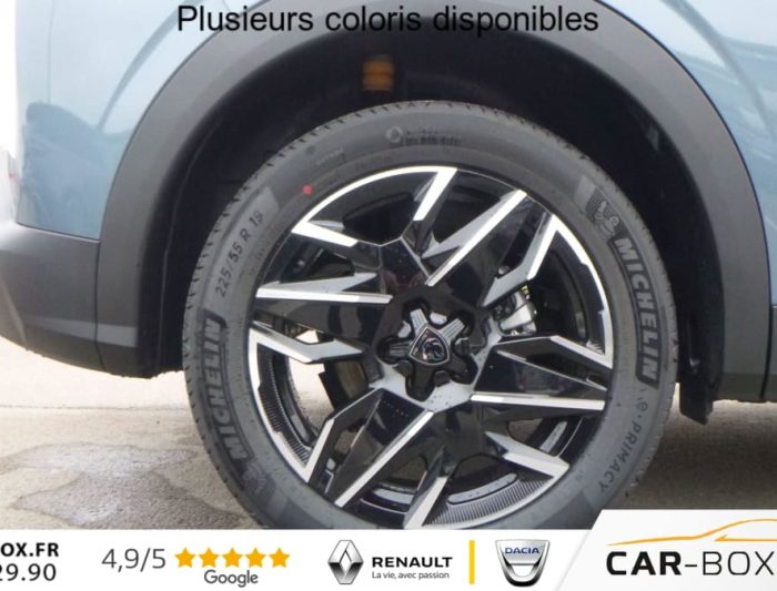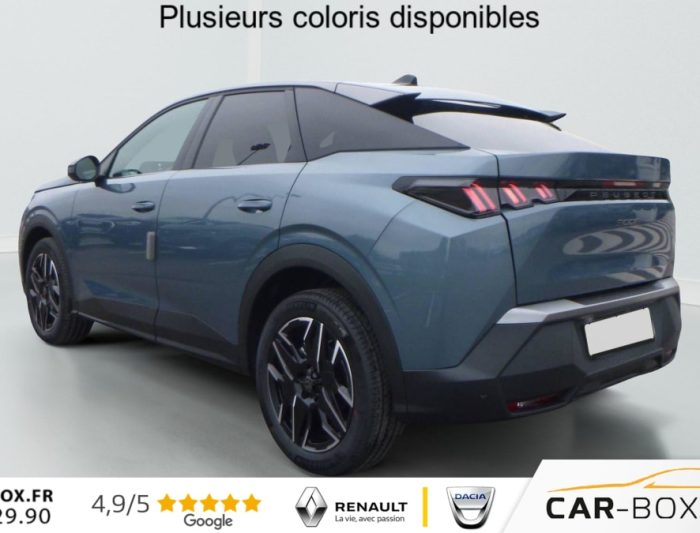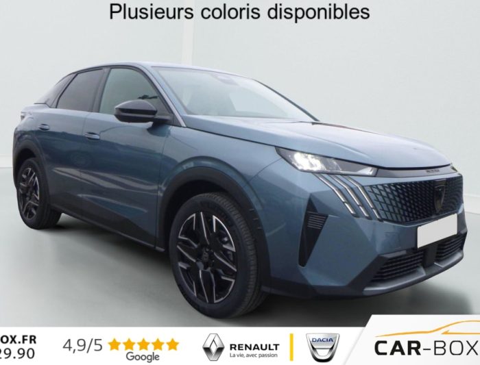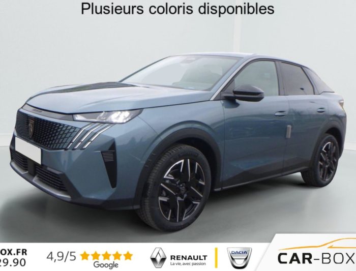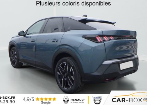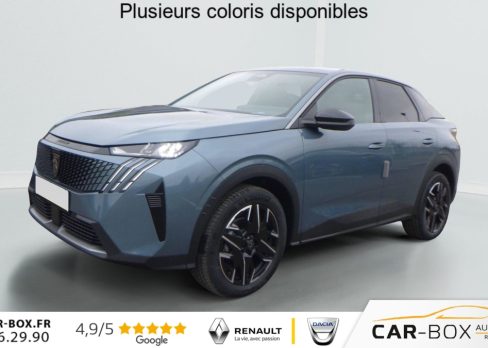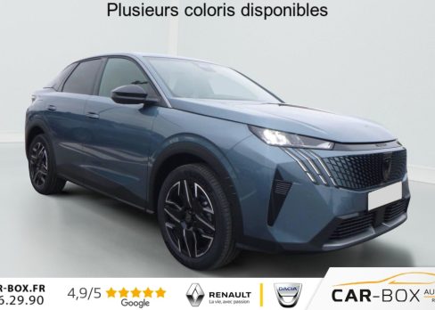 Hors frais de dossierHybrid 145 e-DCS6 Allure, essence, bleu, 30/04/2025, ABS, Acces et demarrage mains libres Proximity, Aide au stationnement arriere, Air conditionne automatique bi-zones, Allumage automatique des phares, Appel d’urgence et d’assistance, Assise du siege conducteur reglable electriquement, Banquette AR avec dossier rabattable 40/20/40, Boite de vitesse automatique, sequentielle (6 rapports), Camera de recul, Compartiment range-lunettes, Controle de traction, Detection de sous-gonflage indirecte, Direction assistee, Drive mode, Eclairage interieur a LED, ESP avec aide au demarrage en pente, Essuie-vitre AV a declenchement automatique, Feux AR 3 griffes a LED, Feux diurnes 3 griffes a LED, Fixations ISOFIX et Top Tether aux places laterales AR, Frein de stationnement electrique, Jantes alliage 19 » diamantees BREDA Noir Orbital, vernis brillant, Leve-vitres AV et AR electriques sequentiels avec antipincement, Mirror screen, Monogrammes AR: 3008 et Hybrid, Monogrammes AV: blason PEUGEOT et 3008, Pack Panoramic Navigation (PEUGEOT i-Cockpit panoramique avec ecran incurve et flottant 21 » HD, PEUGEOT i-Connect Advanced Navigation 3D connectee, 3 prises USB: 1 prise USB C (Data & charge) a l’AV, 2 prises USB C (Charge) a l’AR, PEUGEOT i-Connect Advanced – Connect Plus: Reconnaissance vocale connectee en langage naturel, Fonctions de Navigation (Trafic en temps reel, previsions meteorologiques, parking, recherche TomTom, limitations de vitesse, prix du carburant, mise a jour cartographie, PEUGEOT i-Toggles virtuels avec 10 raccourcis personnalisables, Recharge smartphone sans fil (puissance 15W)) : option incluse (valeur : 800 Eur TTC), Pack Safety Plus (Alerte active de franchissement involontaire de ligne et bas cote, Alerte attention conducteur, Freinage d’urgence automatique avec alerte risque de collision pilotee par camera et radar, Reconnaissance etendue des panneaux de signalisation et preconisation de vitesse, Regulateur / Limiteur de vitesse), Palettes au volant, Pares-soleil avec miroirs de courtoisie, PEUGEOT i-Connect, Plancher de coffre modulable 2 positions, Prises 12V avant et coffre, Projecteurs »Peugeot Led Technology », Retroviseur interieur electrochrome, Retroviseurs exterieurs degivrants avec reglage et rabattement electriques, eclairage de seuil, Securite enfants electrique des vitres AR, Siege conducteur avec reglages lombaires electrique, Sieges AV a reglage en hauteur manuel, Sieges AV chauffants, siege conducteur certifie AGR : option incluse (valeur : 400 Eur TTC), Systeme start and stop, Vitres AR, custodes et lunette AR teintees, Volant compact croute de cuir avec commandes integrees, 4 poignees de maintien retractables (2 a l’AV et 2 a l’AR), 6 airbags: frontaux conducteur et passager auto-adaptatifs (passager neutralisable par cle), airbags rideaux, airbags lateraux, 6 HP (2 tweeters et 2 woofers a l’AV et 2 larges bandes a l’AR)
