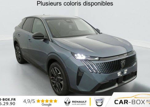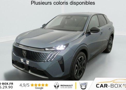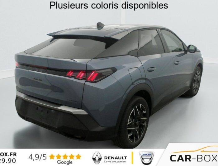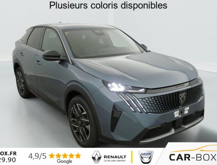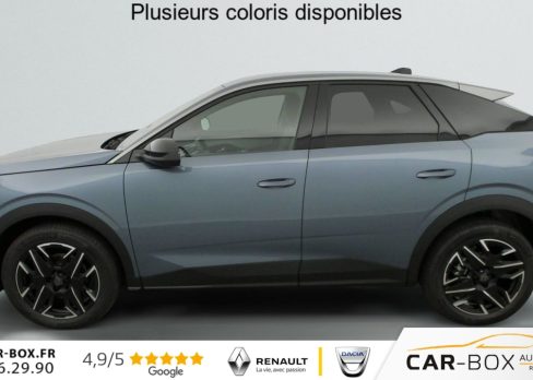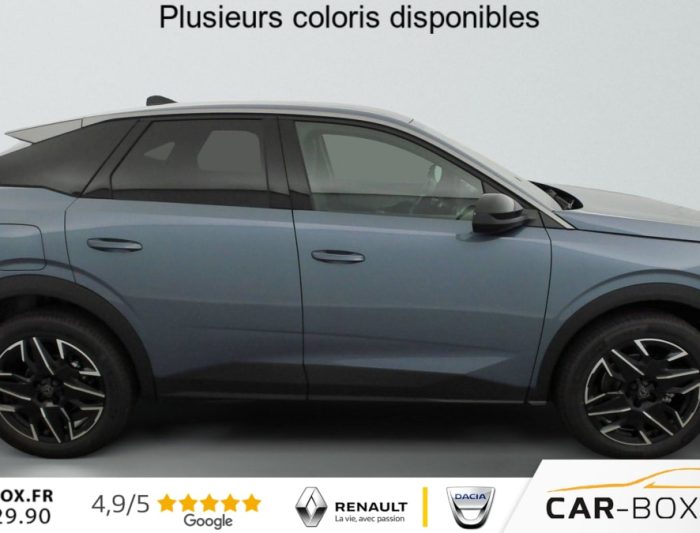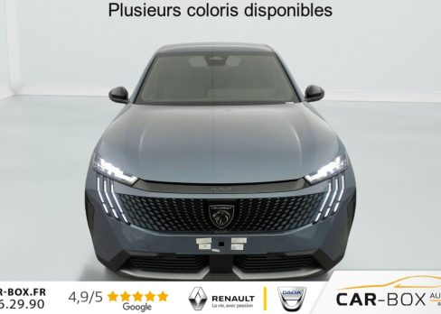 Hors frais de dossierHybrid 145 e-DCS6 Allure, hybride, gris, 14/08/2025, Sièges AV chauffants : option incluse (valeur : 250 Eur TTC), Frein de stationnement électrique, ESP avec aide au démarrage en pente, ABS, Détection de sous-gonflage indirecte, Direction assistée, Teintes métallisées : option incluse (valeur : 1 200 Eur TTC), 6 HP (2 tweeters et 2 woofers à l’AV et 2 larges bandes à l’AR), Rétroviseurs extérieurs dégivrants avec réglage et rabattement électriques, éclairage de seuil, Allumage automatique des phares, Pack Safety Plus : Alerte attention conducteur Régulateur / Limiteur de vitesse Reconnaissance étendue des panneaux de signalisation et préconisation de vitesse Alerte active de franchissement involontaire de ligne et bas côté Freinage d’urgence automatique avec alerte risque de collision pilotée par caméra et radar, Fixations ISOFIX et Top Tether aux places latérales AR, Feux AR 3 griffes à LED, Jantes alliage 19" diamantées BREDA Noir Orbital, vernis brillant, 6 airbags: frontaux conducteur et passager auto-adaptatifs (passager neutralisable par clé), latéraux conducteur et passager AV (thorax et bassin), rideaux aux places AV et AR (tête et thorax), Feux diurnes 3 griffes à LED, Visiopark 1 Caméra de recul & aide au stationnement AR, graphique et sonore, Accès et démarrage mains libres Proximity 2 Télécommandes 3 boutons (verrouillage, coffre, déverrouillage), Eclairage intérieur Plafonnier AV et liseuses AR à LED, Boite à gants et rangement de console éclairés à LED, Eclairage des caves à pieds AV à LED, PEUGEOT i-Cockpit panoramique avec Double écran HD flottant (2 x 10 »), Banquette AR avec dossier rabattable 40/20/40, PEUGEOT i-Connect Radio DAB, Bluetooth (connexion 2 téléphones), Mirror Screen sans fil (Apple CarPlay / Android Auto), Peugeot Connect SOS & Assistance, 1 prise USB C (Data & charge), Projecteurs "Peugeot Led Technology", Sellerie tissu CRISPY embossé, accompagnement TEP Isabella, écharpe tissu RIMINI chiné, surpiqûres Quartz, Rétroviseur intérieur électrochrome, Contrôle de traction, Boîte de vitesse automatique, séquentielle (6 rapports), Air conditionné automatique bi-zone, Lève-vitres AV et AR électriques séquentiels avec antipincement