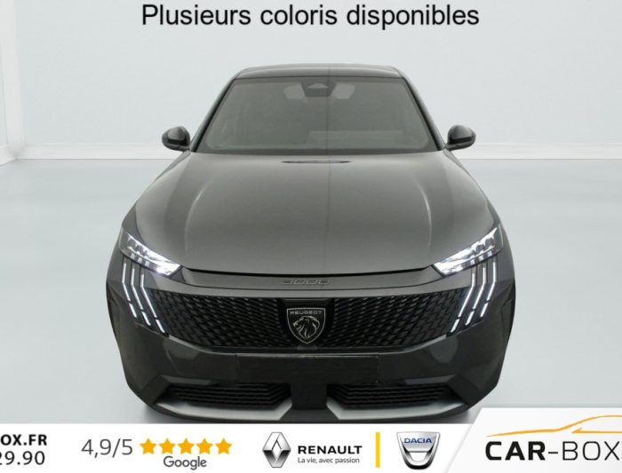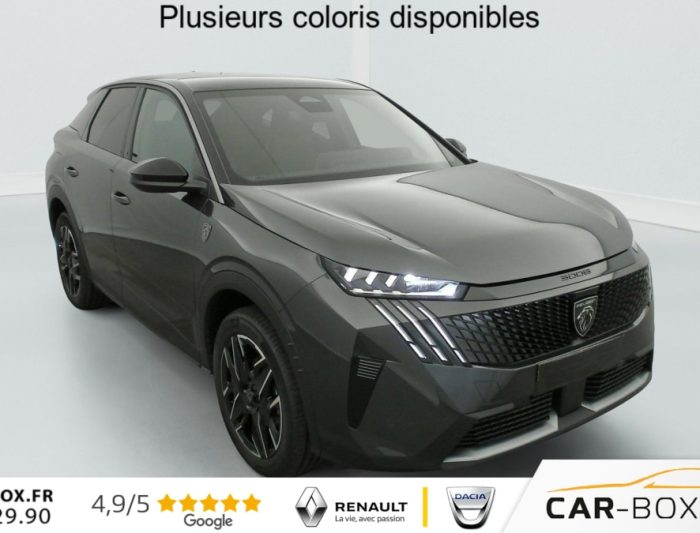 Hybrid 145 e-DCS6 GT, hybride, gris, 02/09/2025, Frein de stationnement électrique, ESP avec aide au démarrage en pente, ABS, Détection de sous-gonflage indirecte, Commutation automatique des feux de route, Essuie-vitre AV à déclenchement automatique, Habitacle et ciel de pavillon Noir, Direction assistée, Accoudoir central, Teintes métallisées : option incluse (valeur : 1 200 Eur TTC), 6 HP (2 tweeters et 2 woofers à l’AV et 2 larges bandes à l’AR), Rétroviseurs extérieurs dégivrants avec réglage et rabattement électriques, éclairage de seuil, Allumage automatique des phares, Hayon motorisé avec accès mains libres, Pédalier et repose pied aluminium, Pack Safety Plus : Alerte attention conducteur Régulateur / Limiteur de vitesse Reconnaissance étendue des panneaux de signalisation et préconisation de vitesse Alerte active de franchissement involontaire de ligne et bas côté Freinage d’urgence automatique avec alerte risque de collision pilotée par caméra et radar, Plancher de coffre modulable 2 positions, Fixations ISOFIX et Top Tether aux places latérales AR, 4 poignées de maintien rétractables (2 à l’AV et 2 à l’AR), Volant chauffant, Sièges AV chauffants, Drive Assist – Régulateur de vitesse adaptatif avec fonction Stop & Go, PEUGEOT i-Toggles virtuels avec 10 raccourcis personnalisables, PEUGEOT i-Connect Advanced Navigation 3D connectée, 4 prises USB: 1 prise USB C (Data & charge) et 1 prise USB C (Charge) à l’AV, 2 prises USB C (Charge) à l’AR, Jantes alliage 19" diamantées BREDA Noir Orbital, vernis brillant, 6 airbags: frontaux conducteur et passager auto-adaptatifs (passager neutralisable par clé), latéraux conducteur et passager AV (thorax et bassin), rideaux aux places AV et AR (tête et thorax), Feux diurnes 3 griffes à LED, Visiopark 1 Caméra de recul & aide au stationnement AV et AR, graphique et sonore, Monogrammes AV: blason PEUGEOT et 3008, Monogrammes AR 3008 et Hybrid, Accès et démarrage mains libres Proximity 2 Télécommandes 3 boutons (verrouillage, coffre, déverrouillage), Banquette AR avec dossier rabattable 40/20/40, Feux AR 3 griffes à LED 3D, Projecteurs PEUGEOT PIXEL LED Eclairage adaptatif, commutation automatique des feux de route, feux de route avec fonctions anti éblouissement et boost, Monogrammes ailes AV: ‘blason PEUGEOT’, Toit et becquet AR Black Diamond, Eclairage d’ambiance indirect, jour & nuit sur la planche de bord, les panneaux de portes AV et sous l’écran panoramique 21 », associé aux modes de conduite, personnalisable en 8 couleurs, Seuil de portes AV inox avec lettrage PEUGEOT, Volant compact, cuir fleur lisse et perforé avec commandes intégrées Noir Laqué, décors Cast Iron, surpiqûres Iced Clay, insert Noir laqué avec badge ‘GT’, Commutation adaptative des projecteurs, Eléments de style éxterieur Bandeau entre les projecteurs Noir laqué avec logo 3008. Calandre couleur caisse, écopes latérales Noir laqué, décor inférieur Gris Meteor, jupe inférieure Noir grainé. Vitres AR, vitres de custode et lunette AR surteintées. Lécheurs de vitres masqués. Enjoliveurs de passages de roues et protections inférieures de portes Noir grainé. Bandeau entre les feux AR Noir laqué avec lettrage PEUGEOT. Pare chocs AR avec décor Gris Meteor et jupe inférieure Noir grainé, Monogrammes AV et AR, PEUGEOT i-Cockpit panoramique avec écran incurvé et flottant 21 » HD, Sièges AV à réglage en hauteur manuel, Sellerie tissu NEW UZIRIS embossé, accompagnement TEP Isabella, écharpe tissu RIMINI chiné, surpiqûres Iced Clay, 2 prises 12 V (Console centrale, coffre), Contrôle de traction, Boîte de vitesse automatique, séquentielle (6 rapports), Eclairage intérieur Miroirs de courtoisie conducteur et passager occultables éclairés à LED, Vitres AV électriques, Air conditionné automatique bi-zone, Pare-brise feuilleté acoustique, Lève-vitres AV et AR électriques séquentiels avec antipincement, Siège conducteur à réglage lombaire manuel